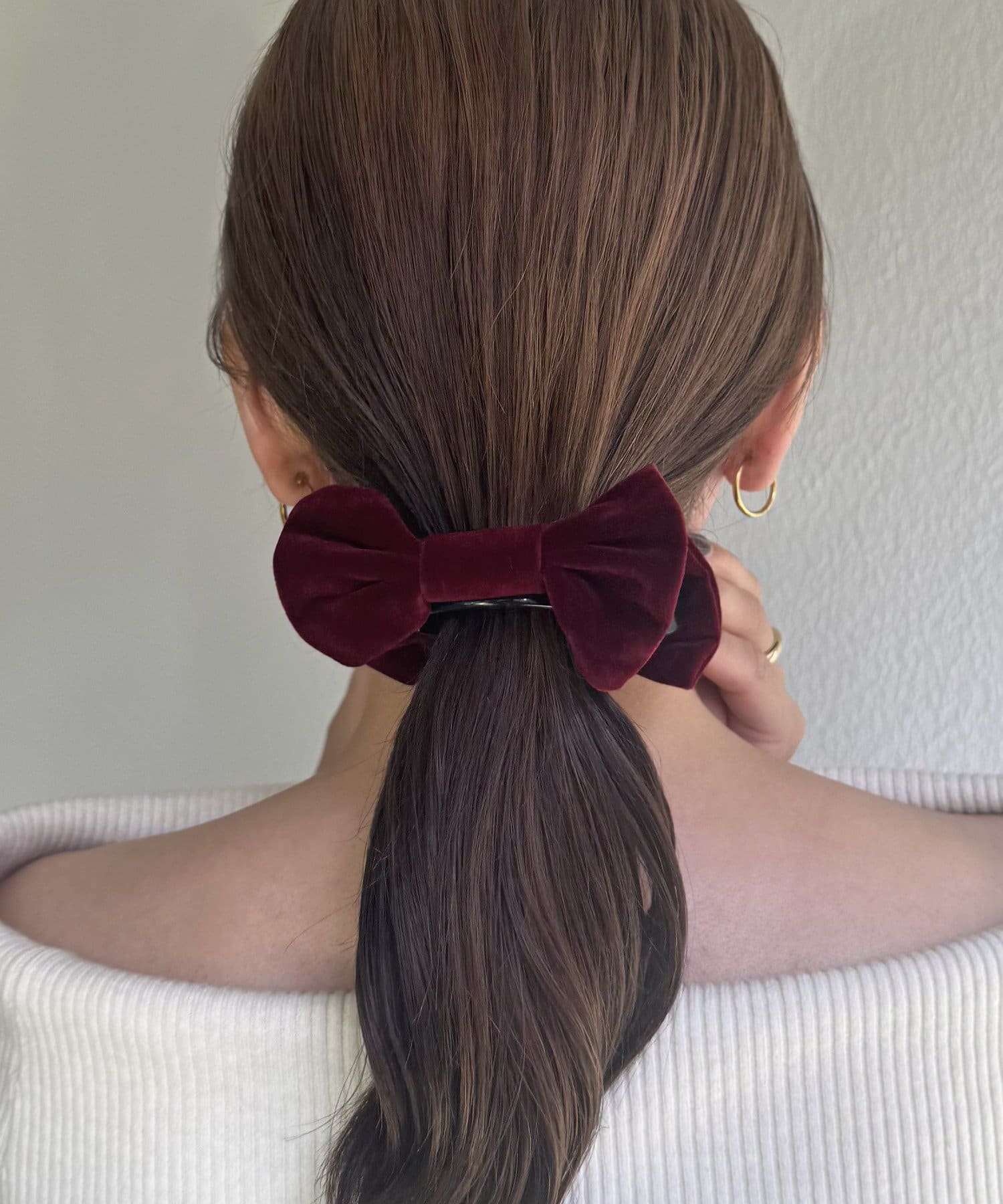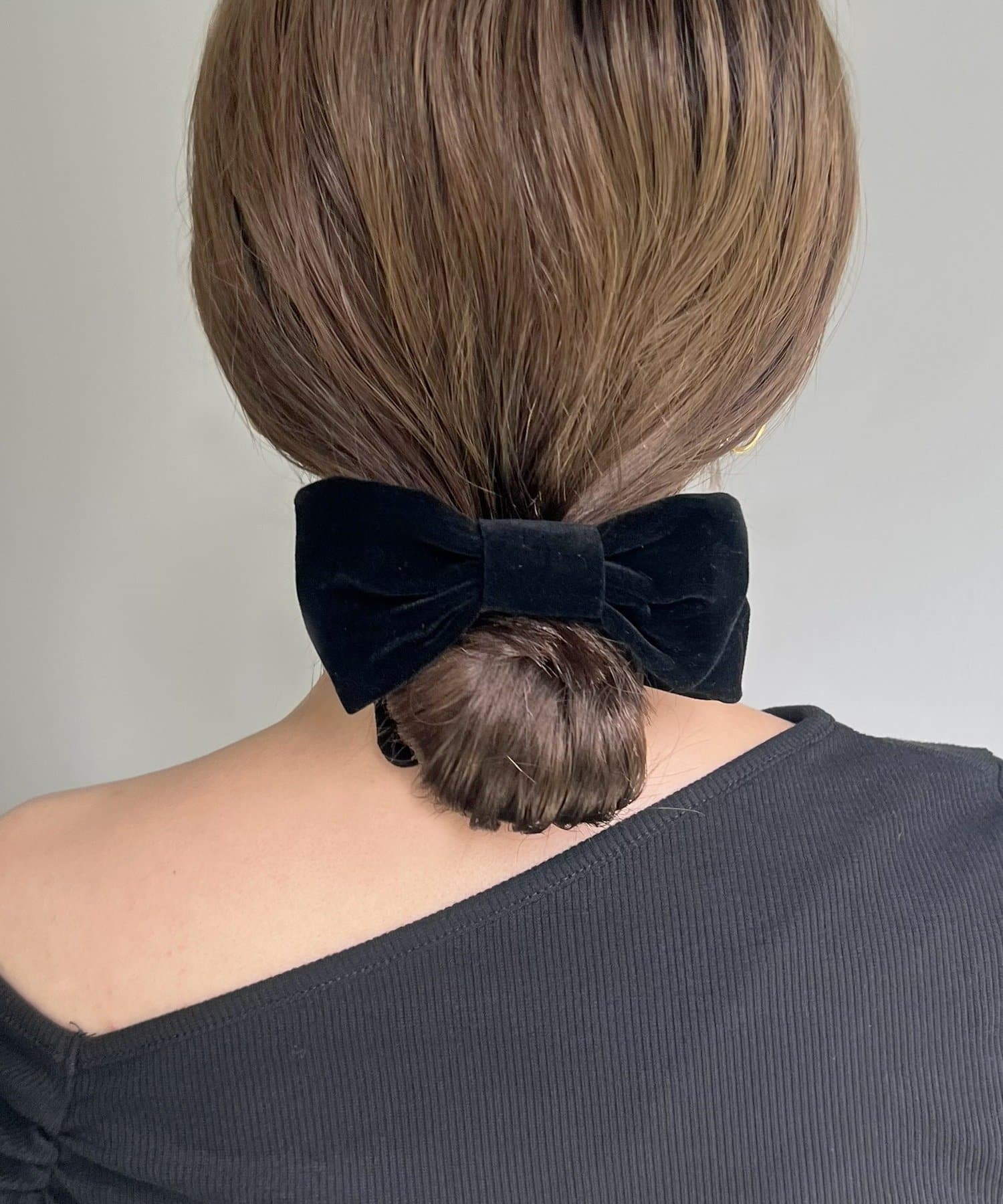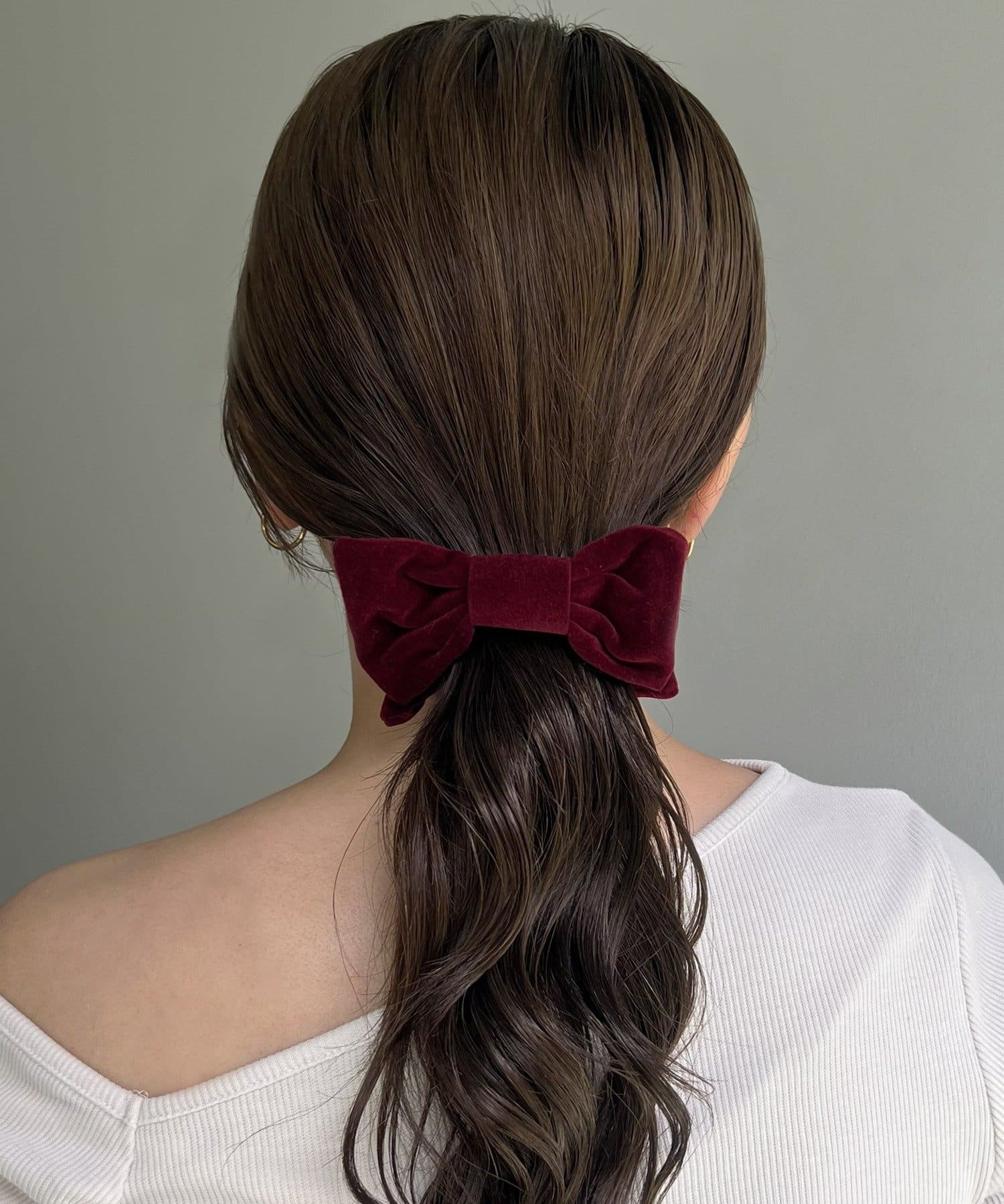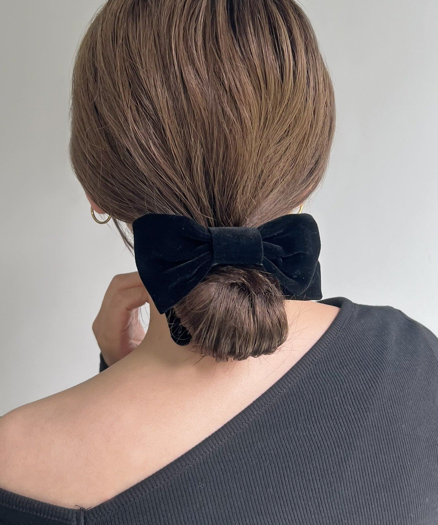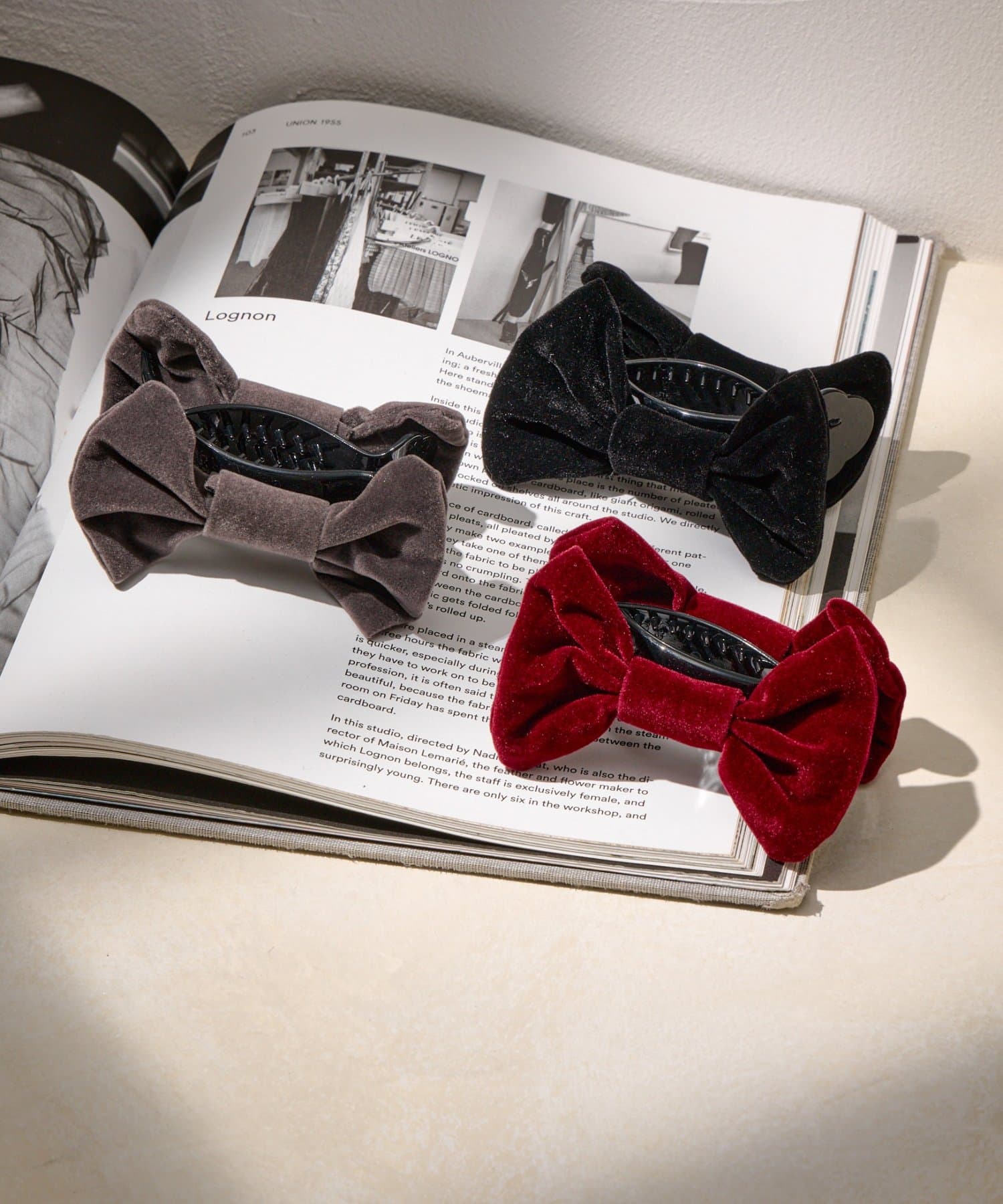 落ち着いた色合いのベロア素材が、高級感と大人可愛い雰囲気を演出するテールクリップ
