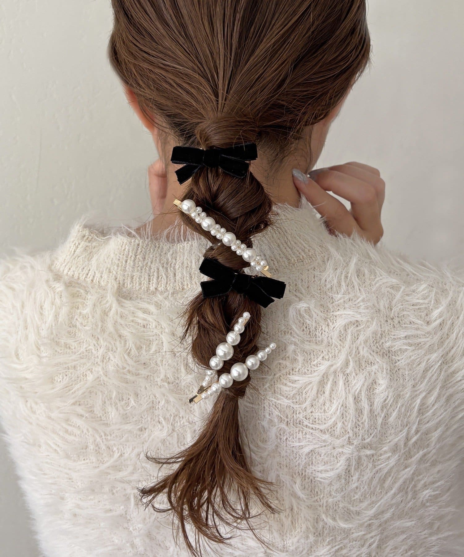 • Lattice(ラティス) ベロアリボンクリップ/パールヘアピンセット(5P)