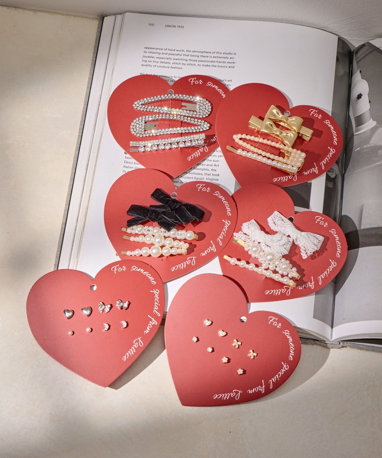 ベロアリボンクリップ/パールヘアピンセット(5P)