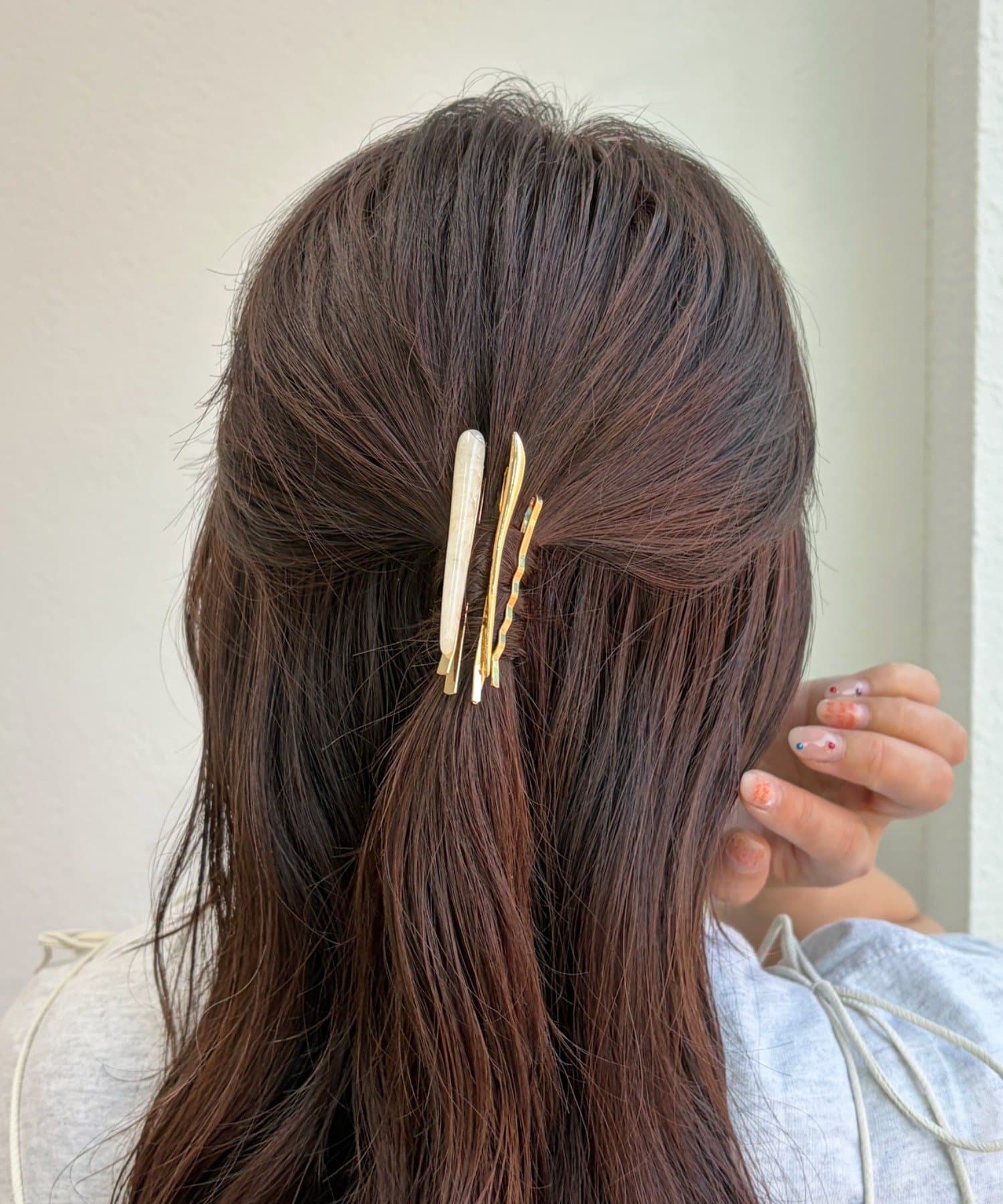 画像のように重ねてつければ、ハーフアップやまとめ髪が一瞬でこなれ感たっぷりのスタイルに。