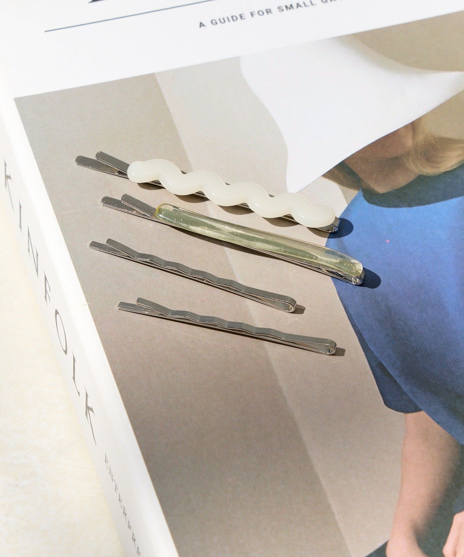 トレンド感のあるうねうねデザインと、シンプルなクリアピン、メタルピンの異素材ミックスが魅力的な4本セットです。