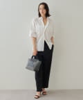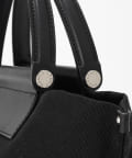 光沢感のないカジュアルな素材ながら、上質なスムースレザーが合わさったデザインでラフすぎず都会的な印象に。使うシーンやスタイリングを選ばない毎日使える相棒バッグです。