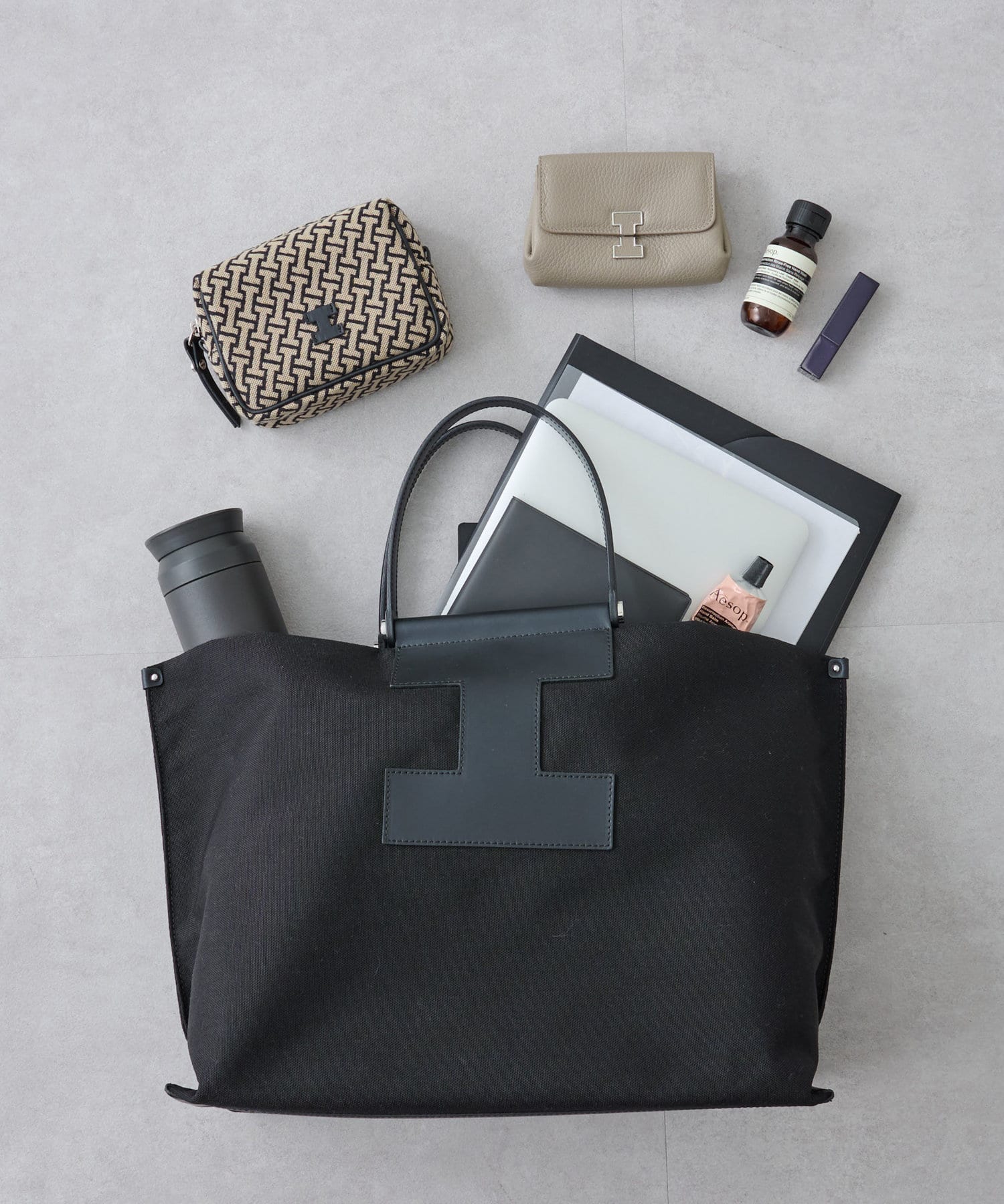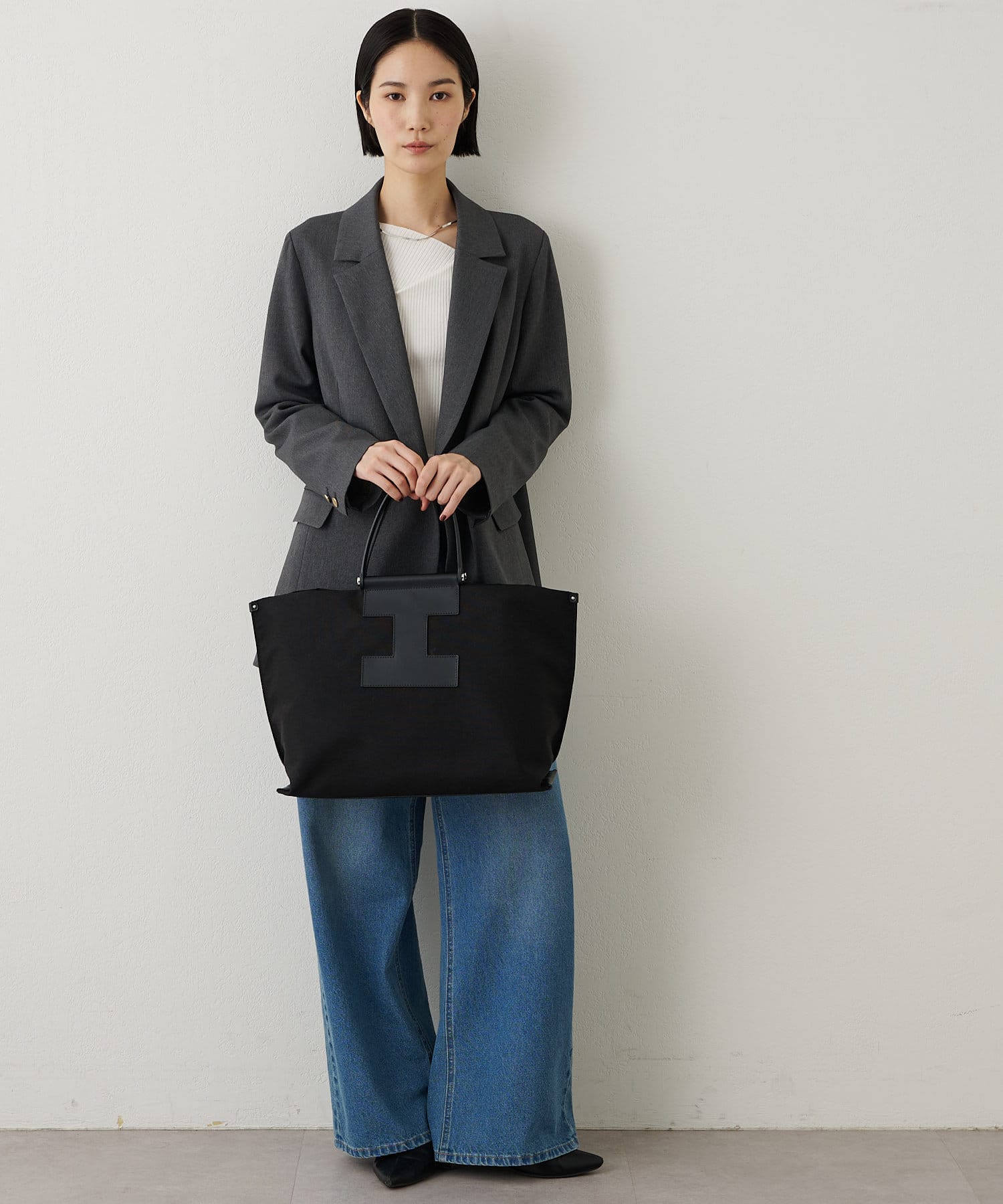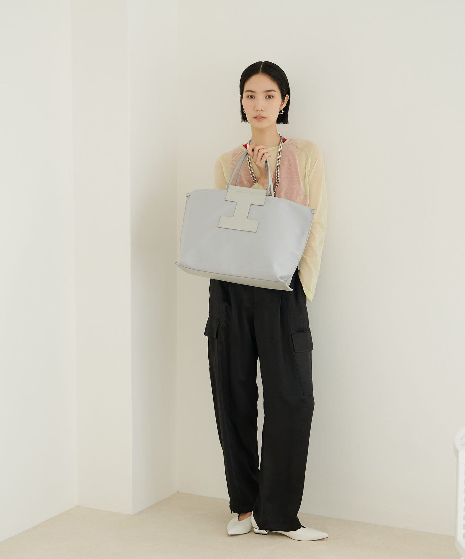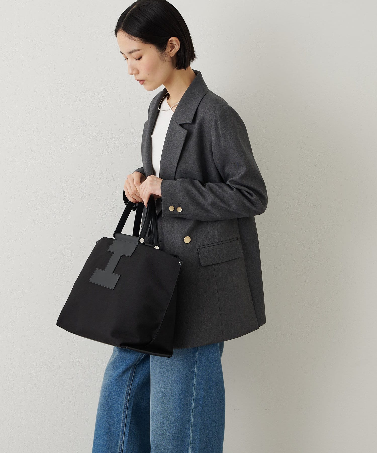 A4サイズもすっぽり収納できるビッグなLサイズは、デイリーユースはもちろん、ビジネスシーンやトラベルシーンでも活躍します。あえてお荷物を少なめにすることでくたっとした見た目となり、こなれた雰囲気で大人の余裕がプラスされたワンランク上のスタイリングに。