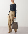 縦型のスマートなデザインながらA4書類がぴったり収納でき、デイリーユースはもちろんビジネスシーンにもオススメ。オンオフ問わず使える嬉しいサイズ感に仕上がっています。内側にはオープンポケット×2、ファスナーポケット×1とお荷物の小分けも可能。機能面でも申し分なしのアイテムです。