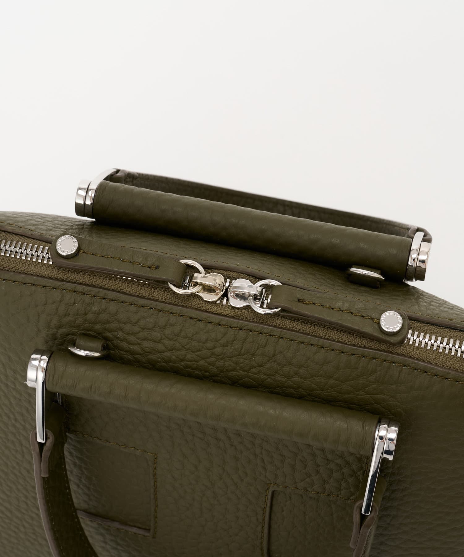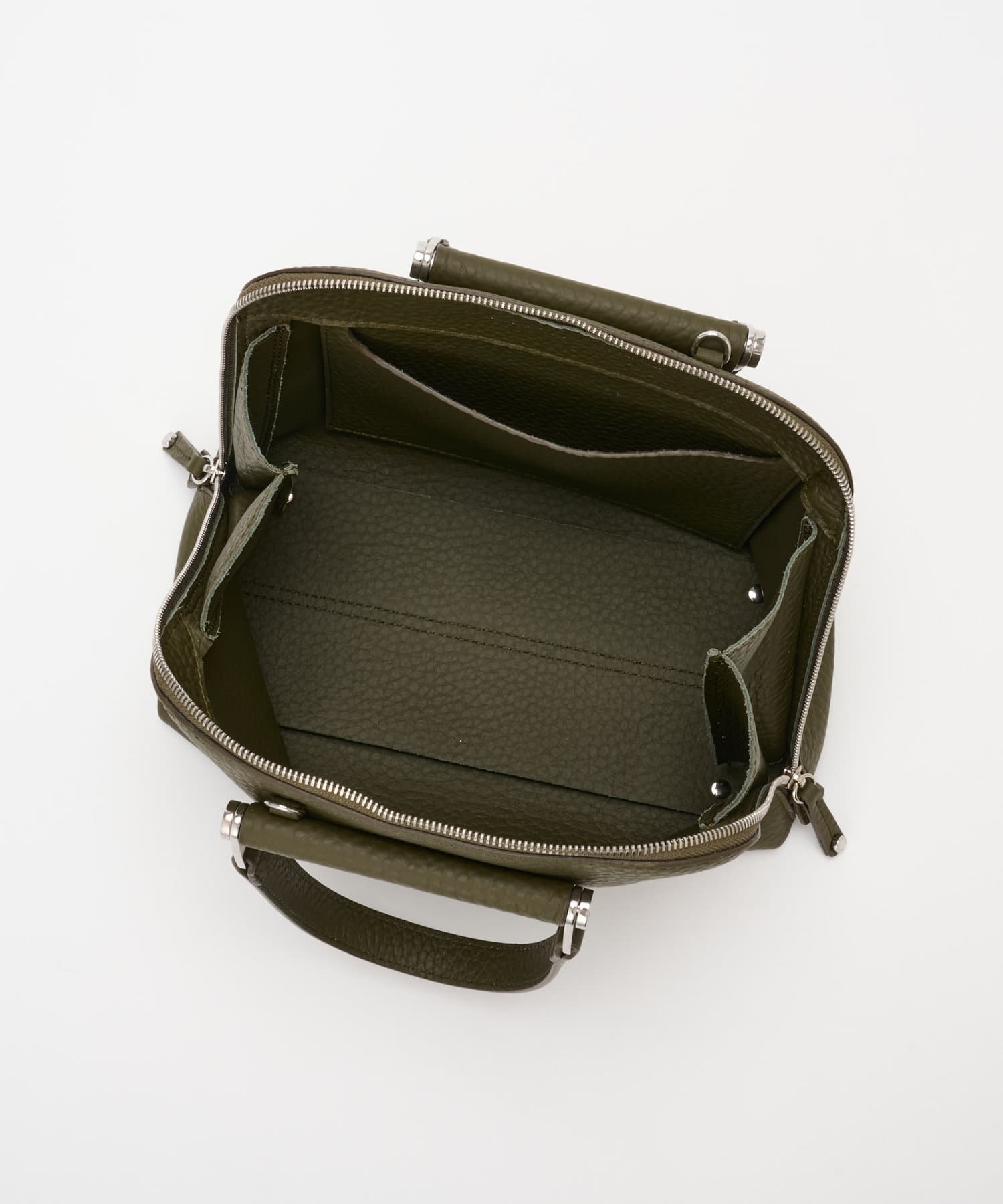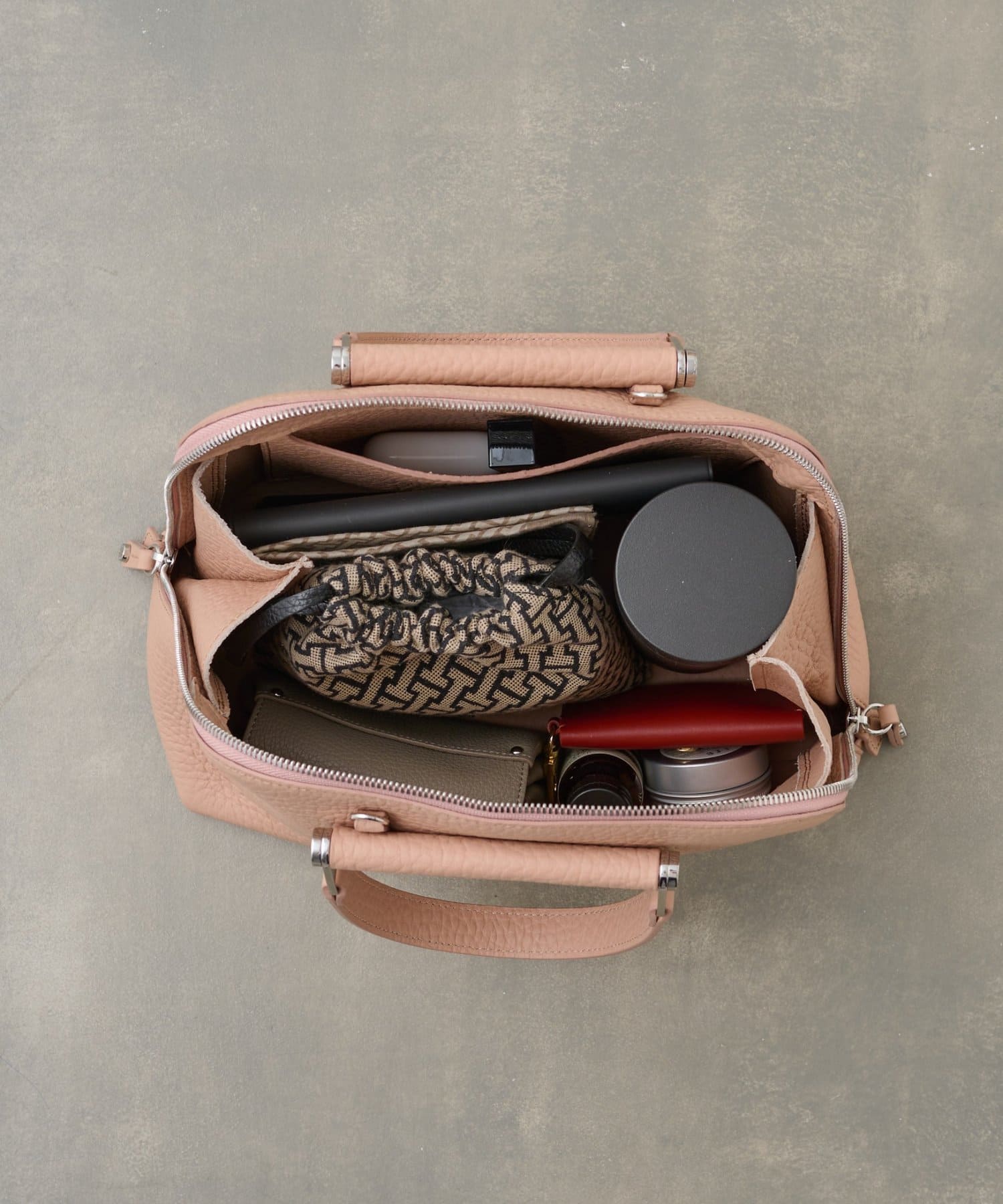 天ファスナーがサイドまでしっかりと開くので、バッグの中が見やすく出し入れもスムーズ。折りたたみマチもついているので、中身がこぼれにくく大切なお荷物も落ちにくくなっています。底は厚みを持たせることで荷物を入れても型崩れし辛く、底鋲付きと長くご愛用いただけるような細かな配慮も嬉しいポイント!