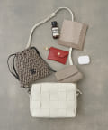 長財布がぴったり入るSサイズは、貴重品+αのお荷物がしっかり収納できる見た目以上の収納力。内側にファスナーポケット付きと機能面も申し分なし!普段使いにちょうどよく、旅行シーンにも人気のサイズです。