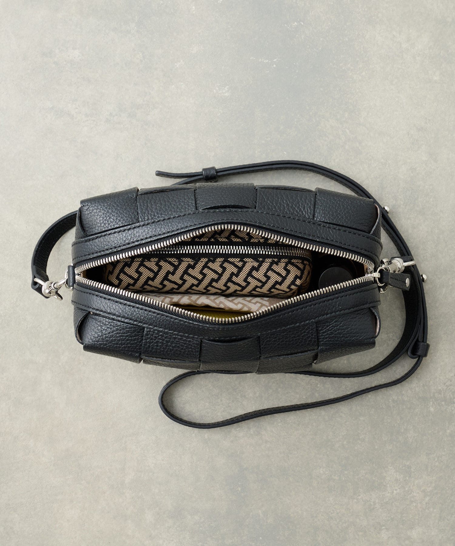 レザーを編み込んだ存在感のあるメッシュデザインは、大人のカジュアルスタイルにぴったり。一つ一つにコバ加工を施したレザーを編み込んだ丁寧な作りからは細やかな職人技が感じられ、素材の良さを楽しんでいただけるアイテムに仕上がっています。
