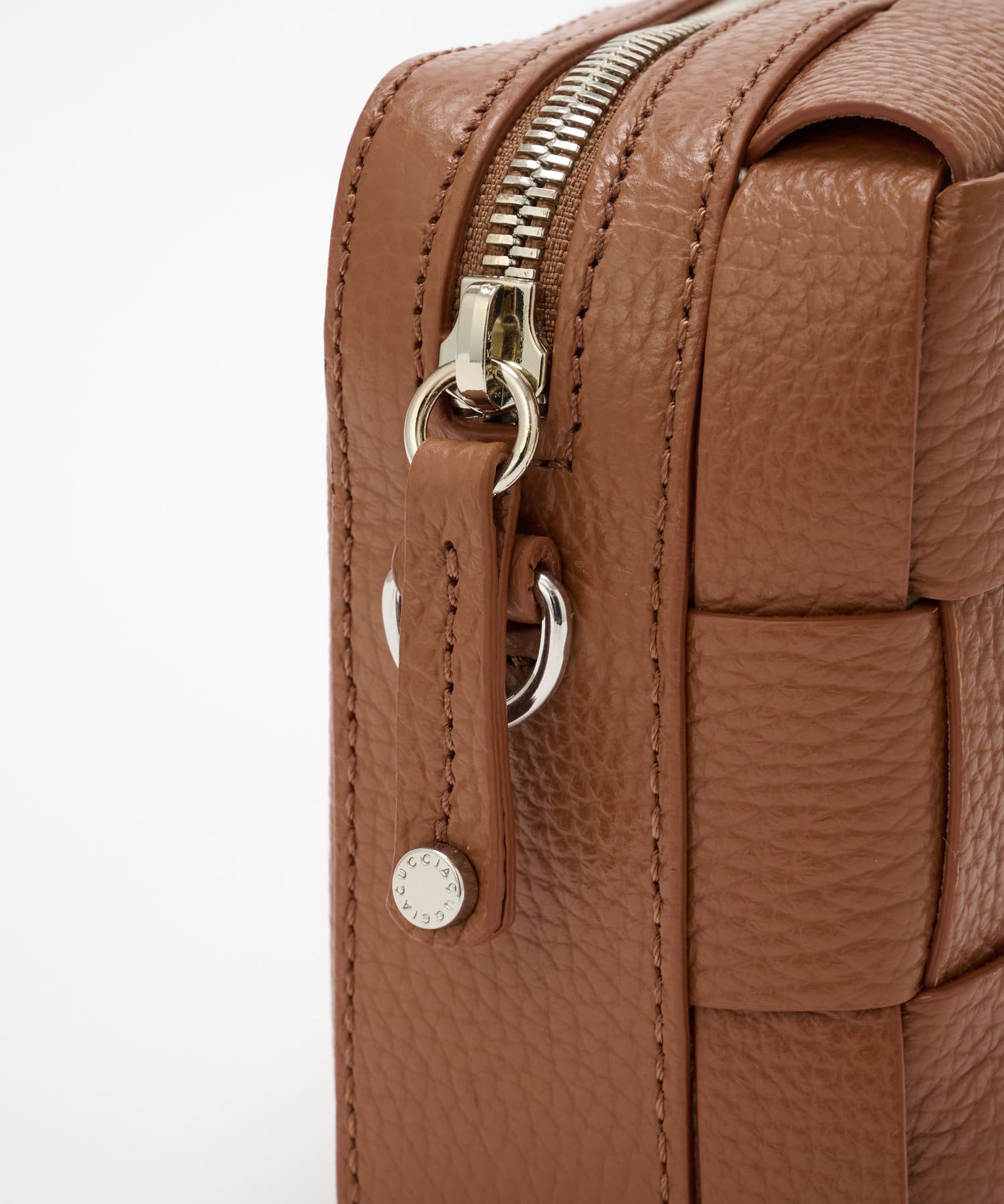 レザーを編み込んだ存在感のあるメッシュデザインは、大人のカジュアルスタイルにぴったり。一つ一つにコバ加工を施したレザーを編み込んだ丁寧な作りからは細やかな職人技が感じられ、素材の良さを楽しんでいただけるアイテムに仕上がっています。
