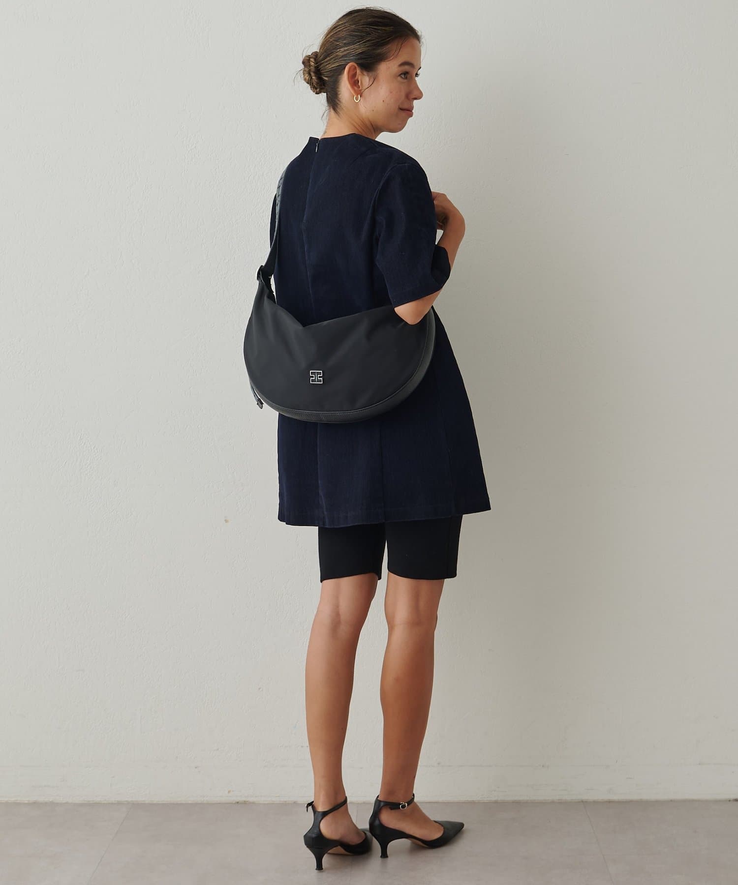 また、ベルトを短く調整することで丸いフォルムのハンドバッグに早変わり。ボディバッグ・ワンショルダーバッグ・手提げのハンドバッグとして様々な持ち方ができるので、その日の気分やスタイリングに合わせて、表情を変えて楽しんでいただけます。