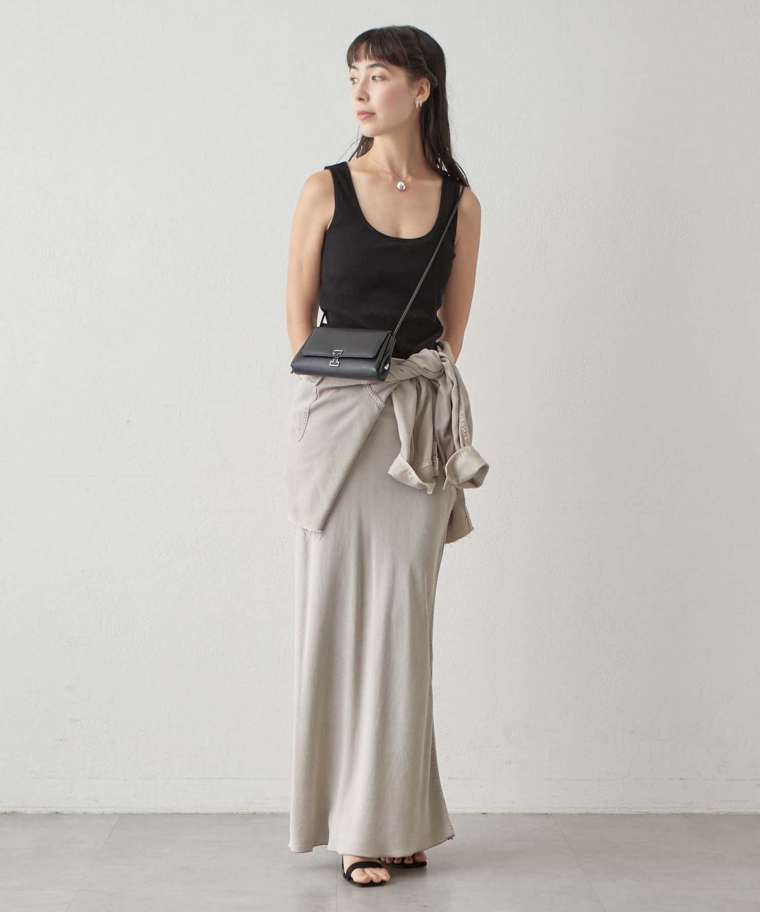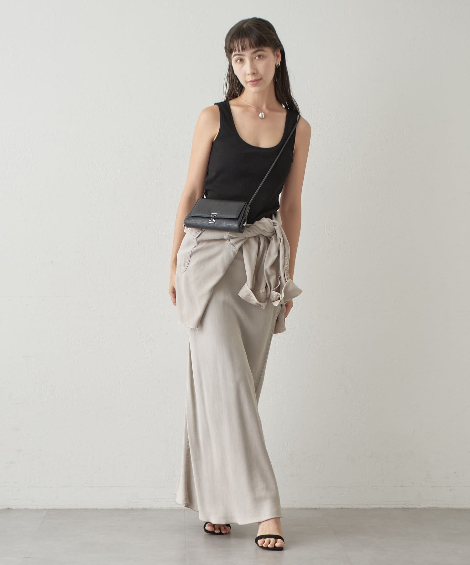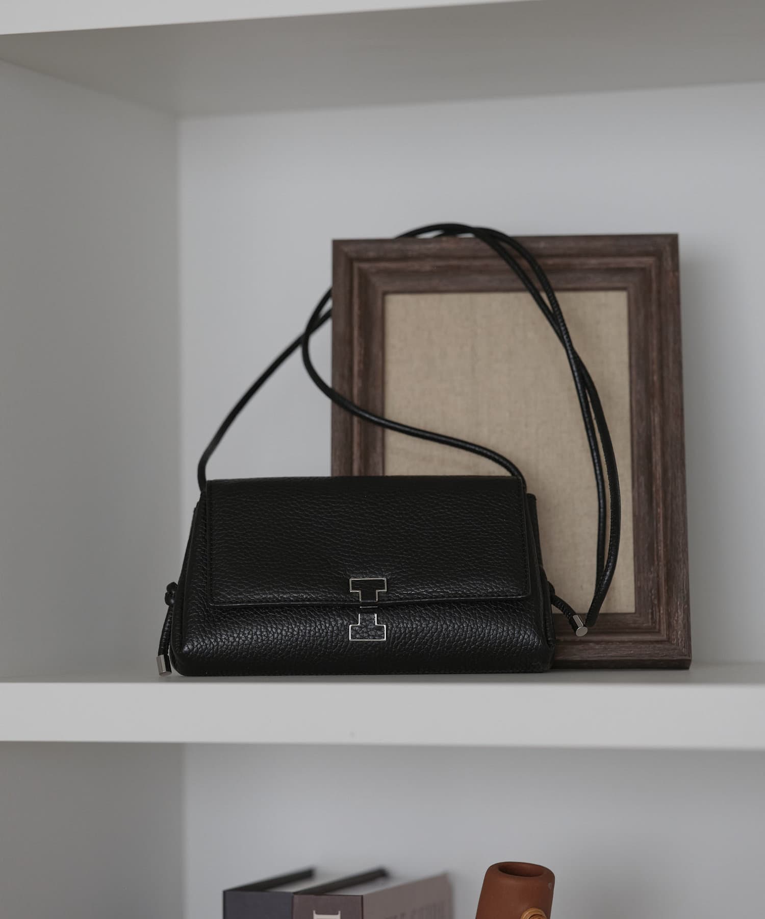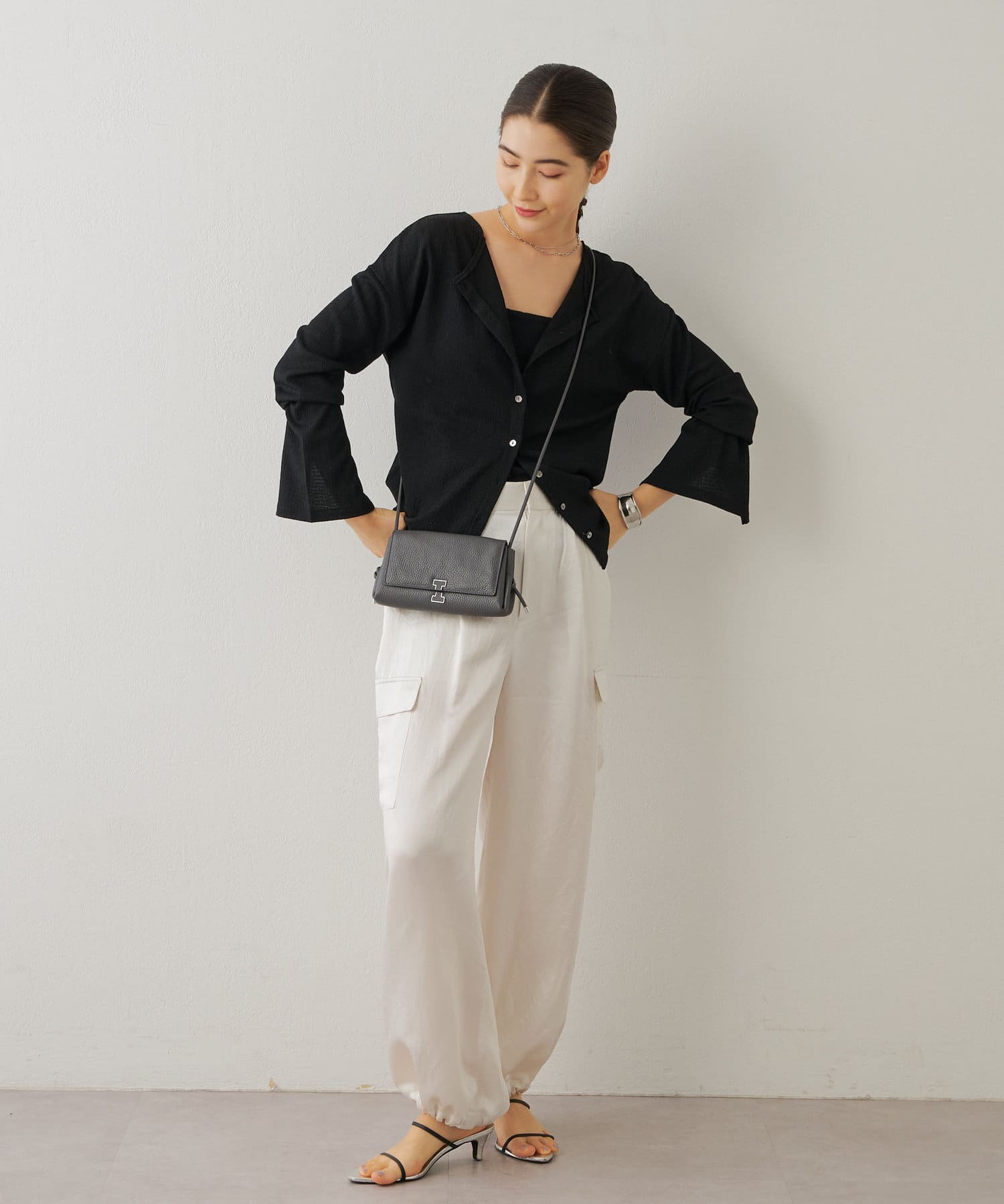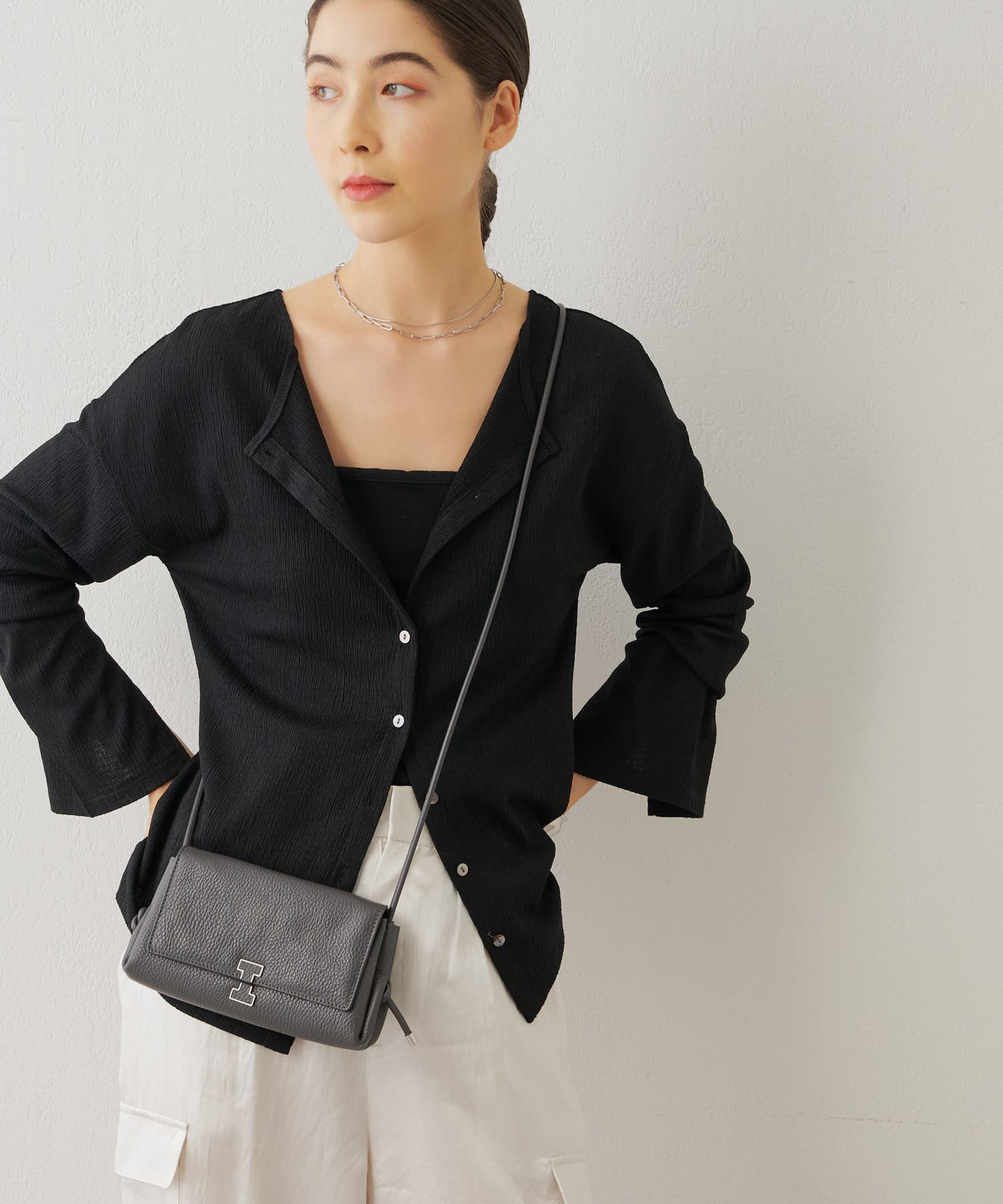 中は三層に分かれており、マチのある中央部分にはスマートフォンも収納可能。パスポート・航空券などもスマートに入るサイズ感で、デイリーユースにはもちろん、トラベルシーンにも活躍!小銭や細かいアクセサリーも収納できるファスナーポケットと、サイドポケット×1、カードポケット×2と、機能性も抜群です。ストラップ部分は結んで長さ調節ができるので、厚着の季節もベストバランスで使えるのも嬉しいポイント。