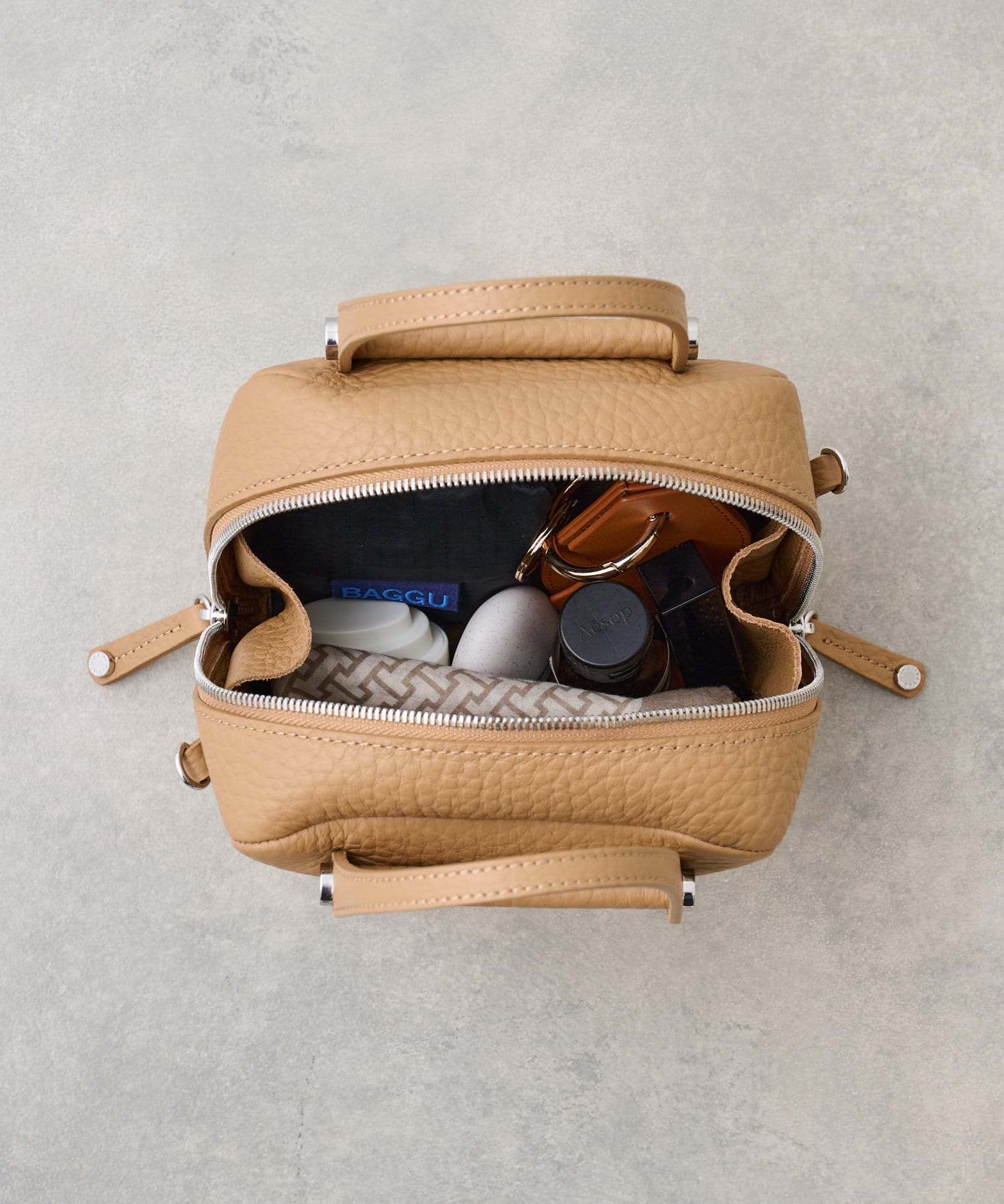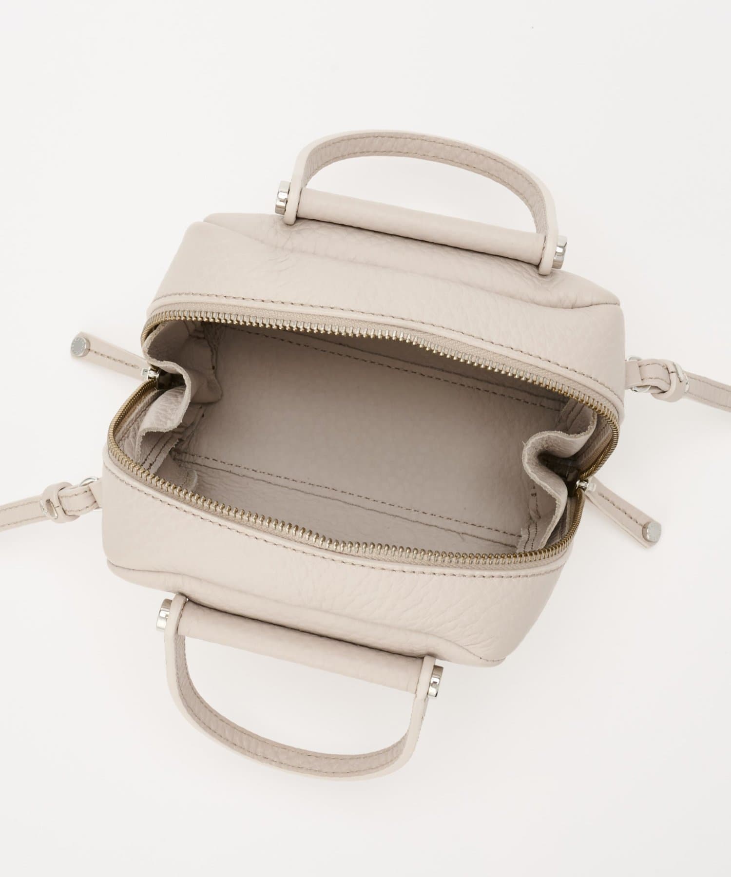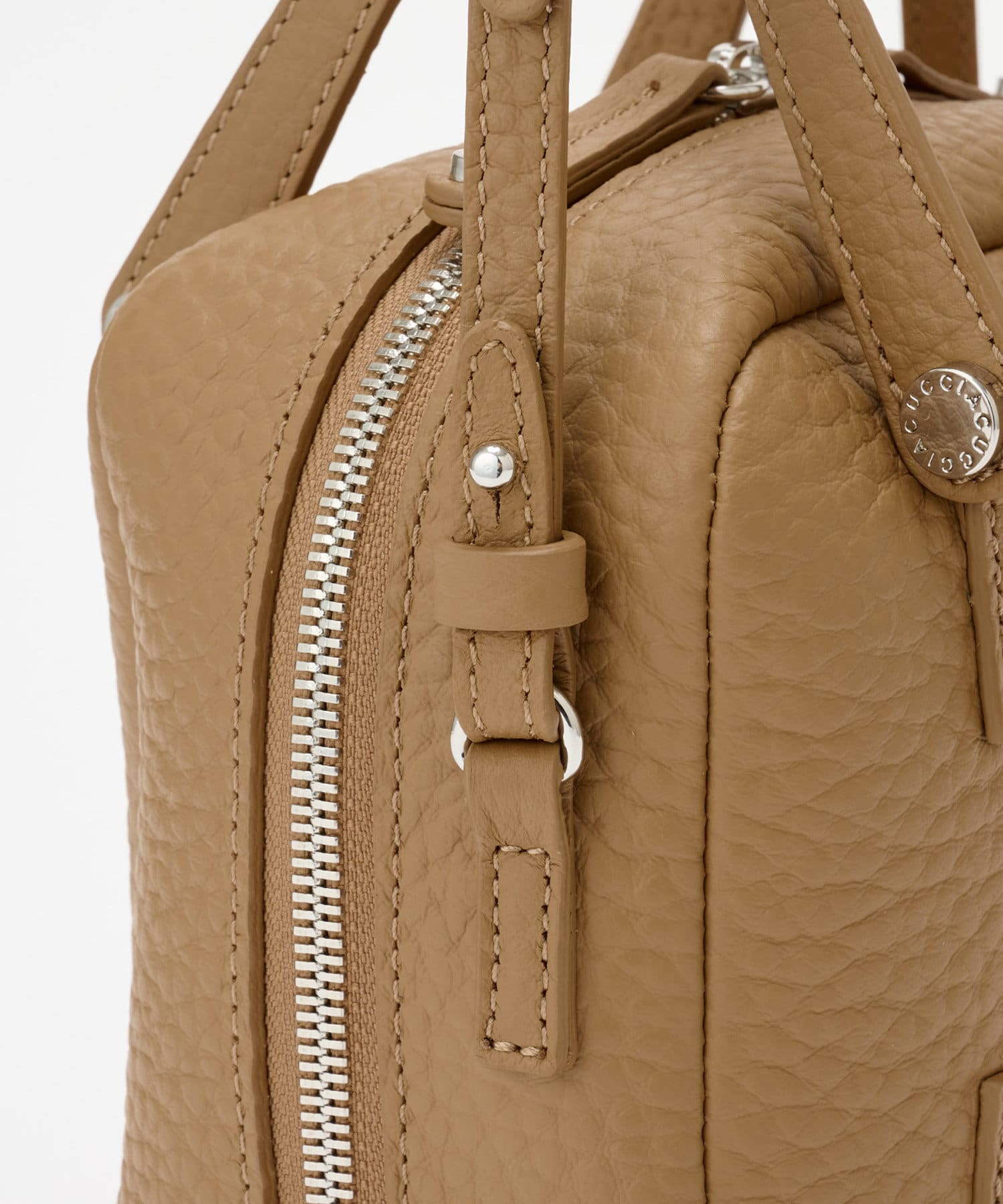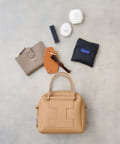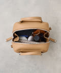 収納力の秘密は、広めのマチ幅とレザーの柔らかさ。天ファスナーがサイドまで開き、お荷物の取り出しもスムーズです。折りたたみのマチもついていて、中身がこぼれにくいデザインに。