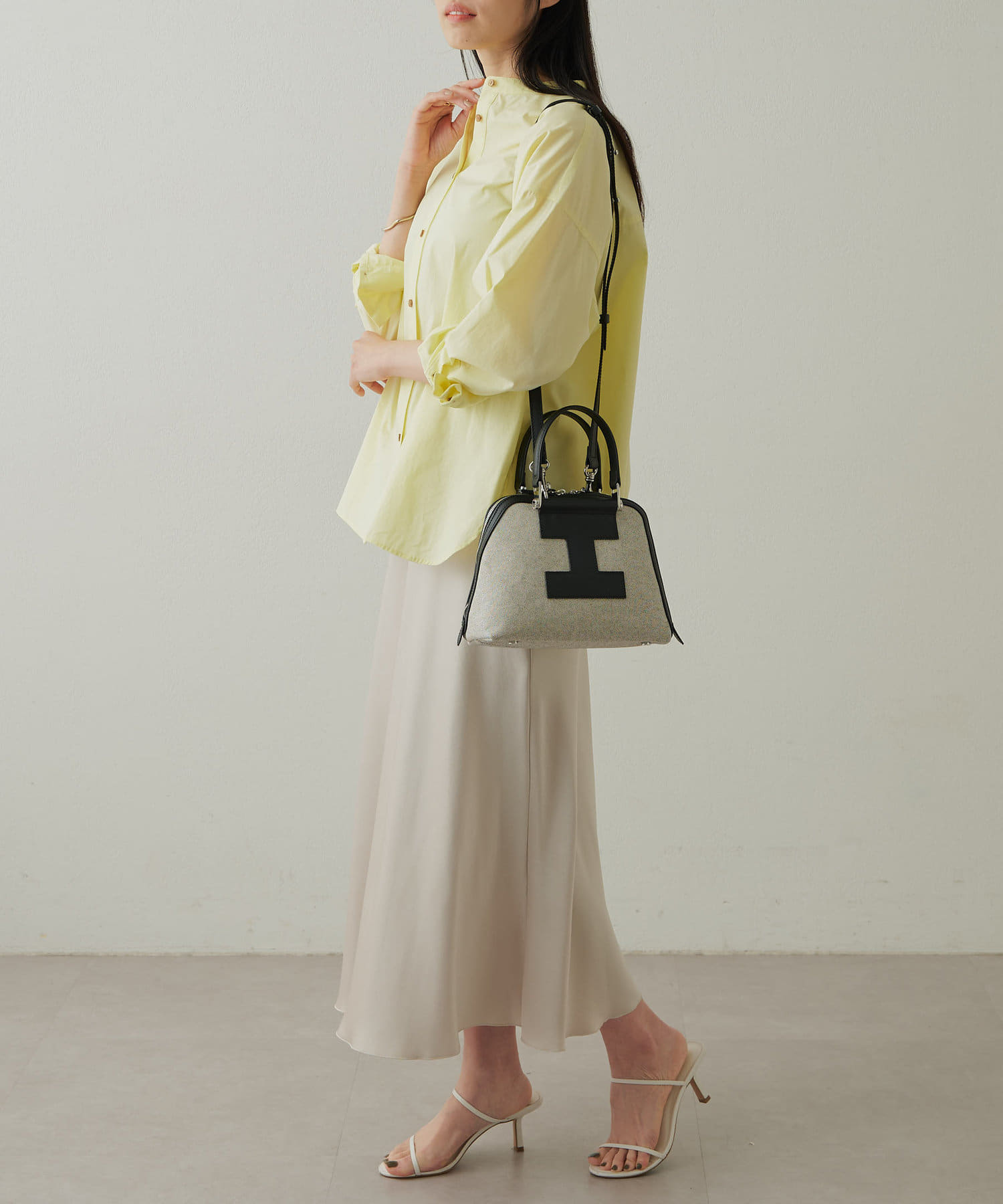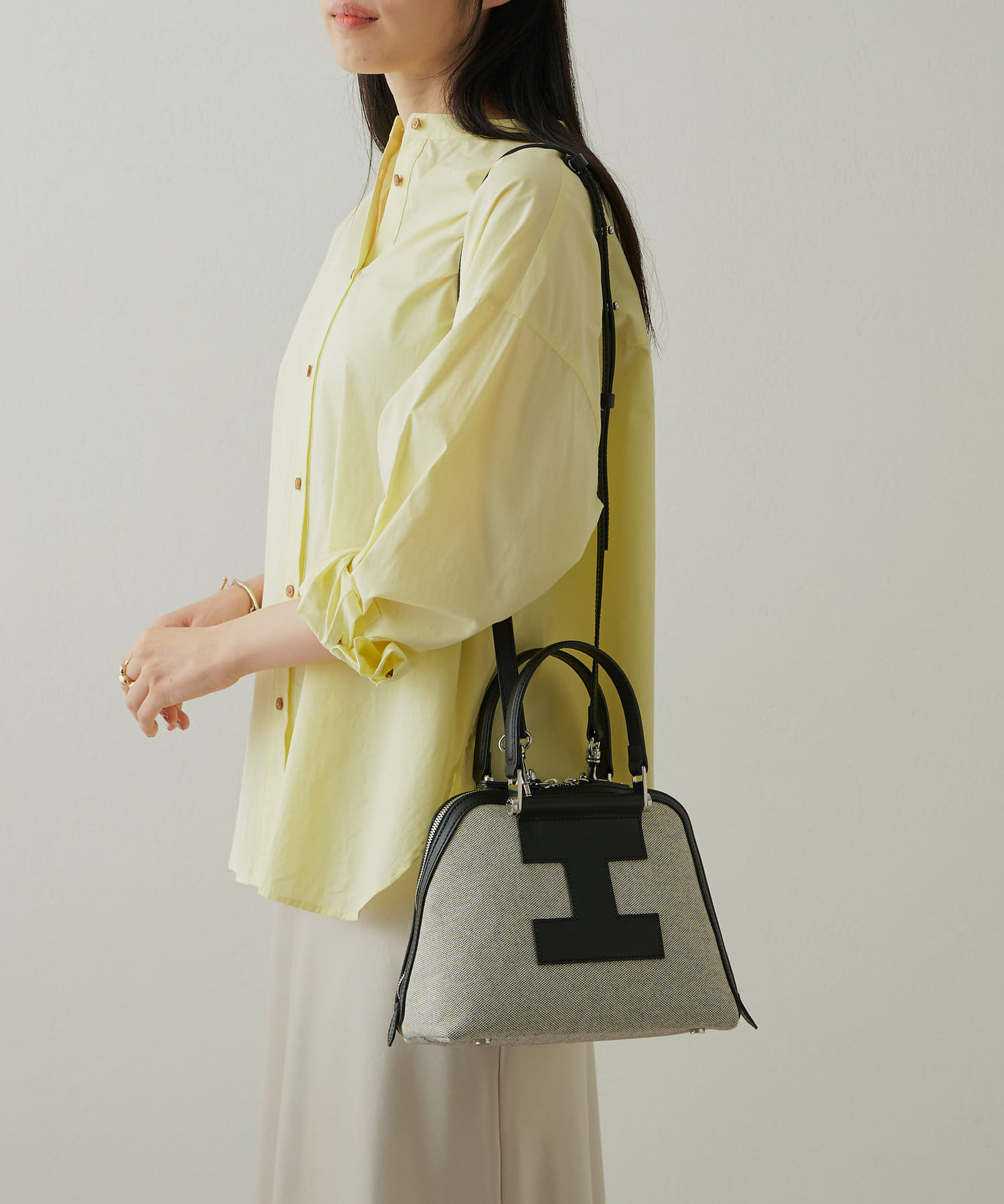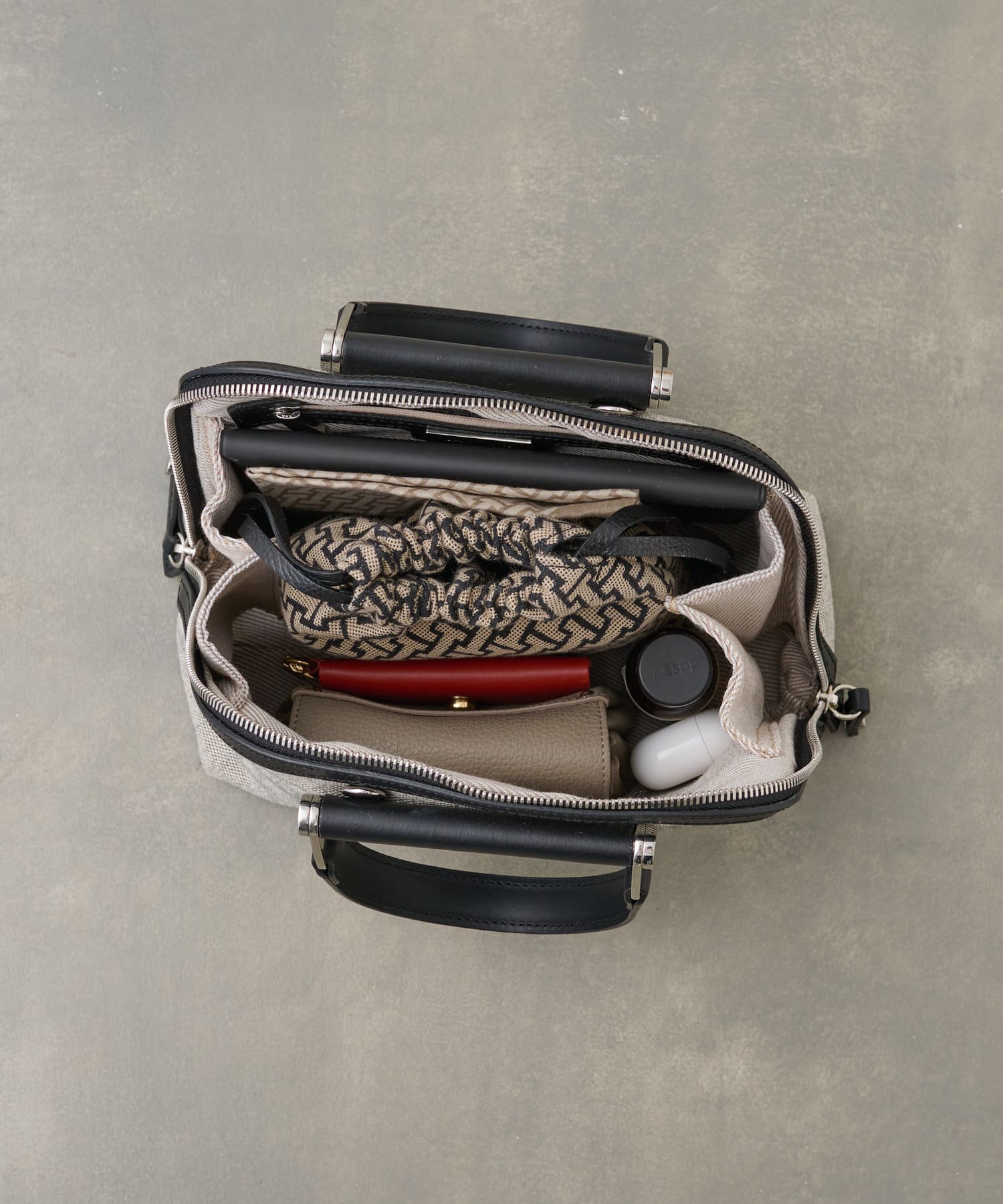 ミニサイズですっきり見えるシルエットながらも、広めのマチ幅で見た目以上の収納力が叶います。天ファスナーがサイドまでしっかりと開くので、バッグの中が見やすく出し入れもスムーズ。折りたたみのマチつきで、中身がこぼれにくい仕様に。底は厚みを持たせることで荷物を入れても型崩れし辛く、底鋲付きと長くご愛用いただけるような細かな配慮も嬉しいポイント!