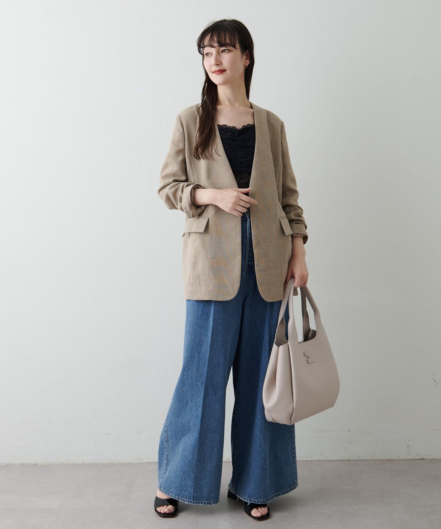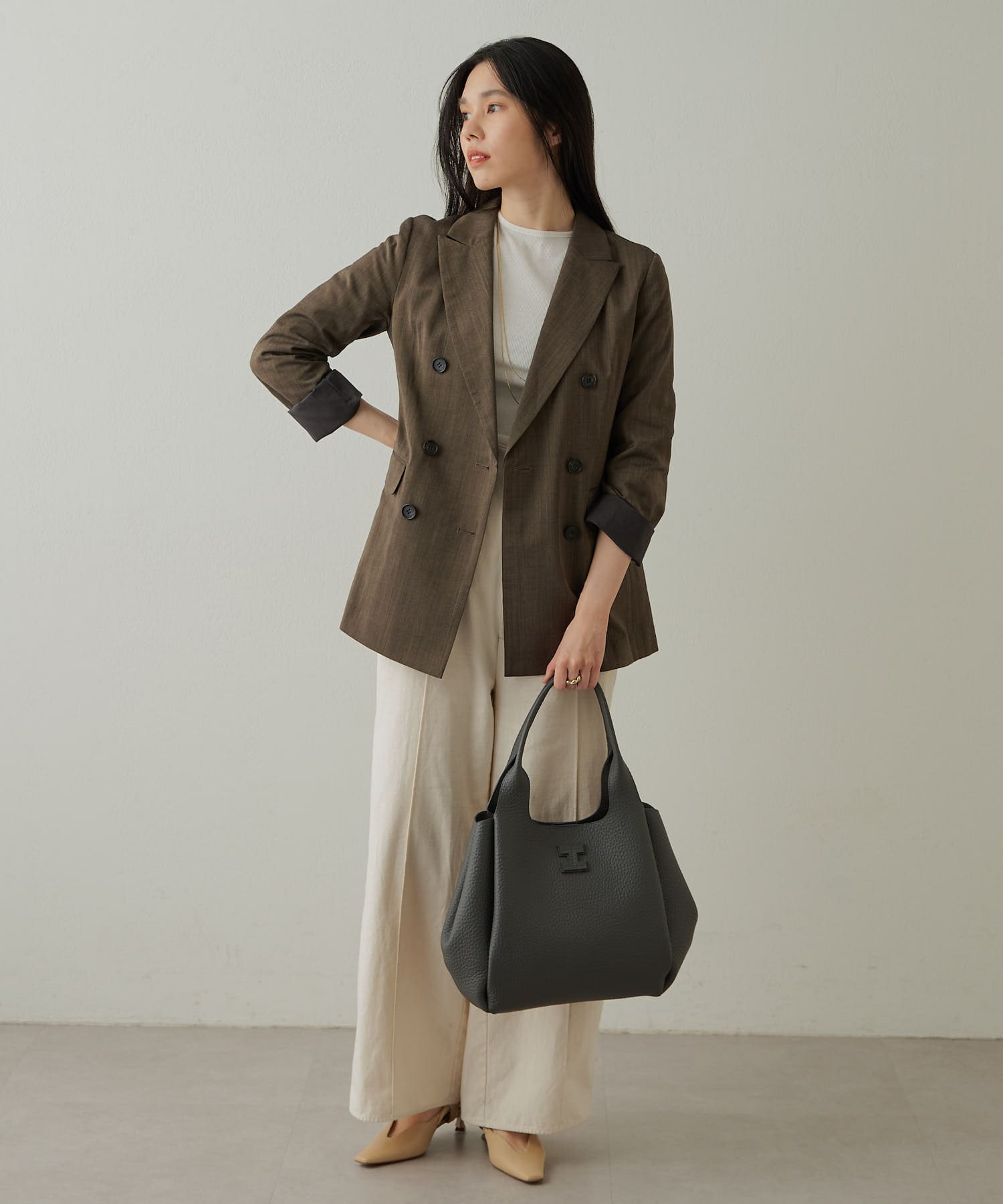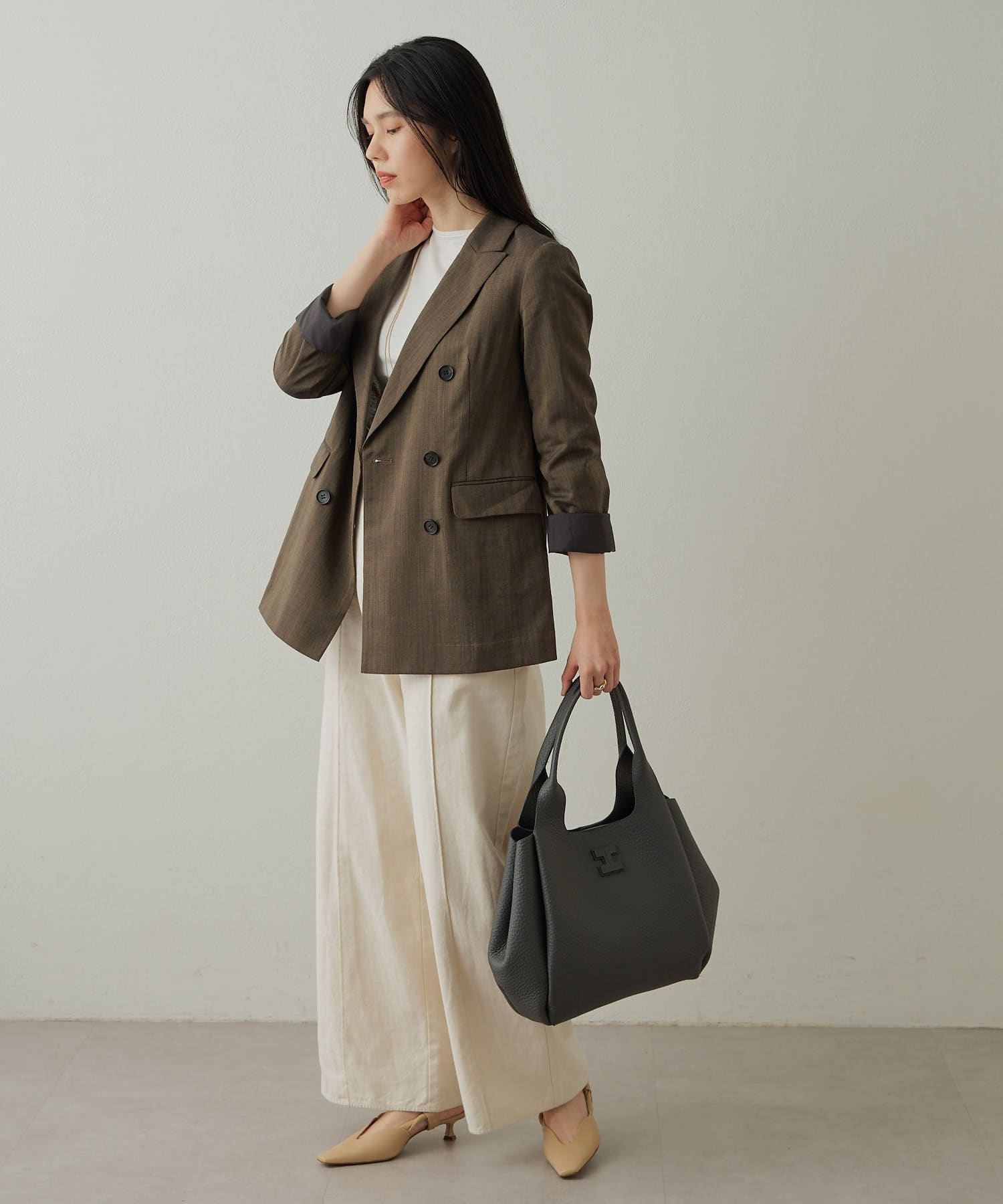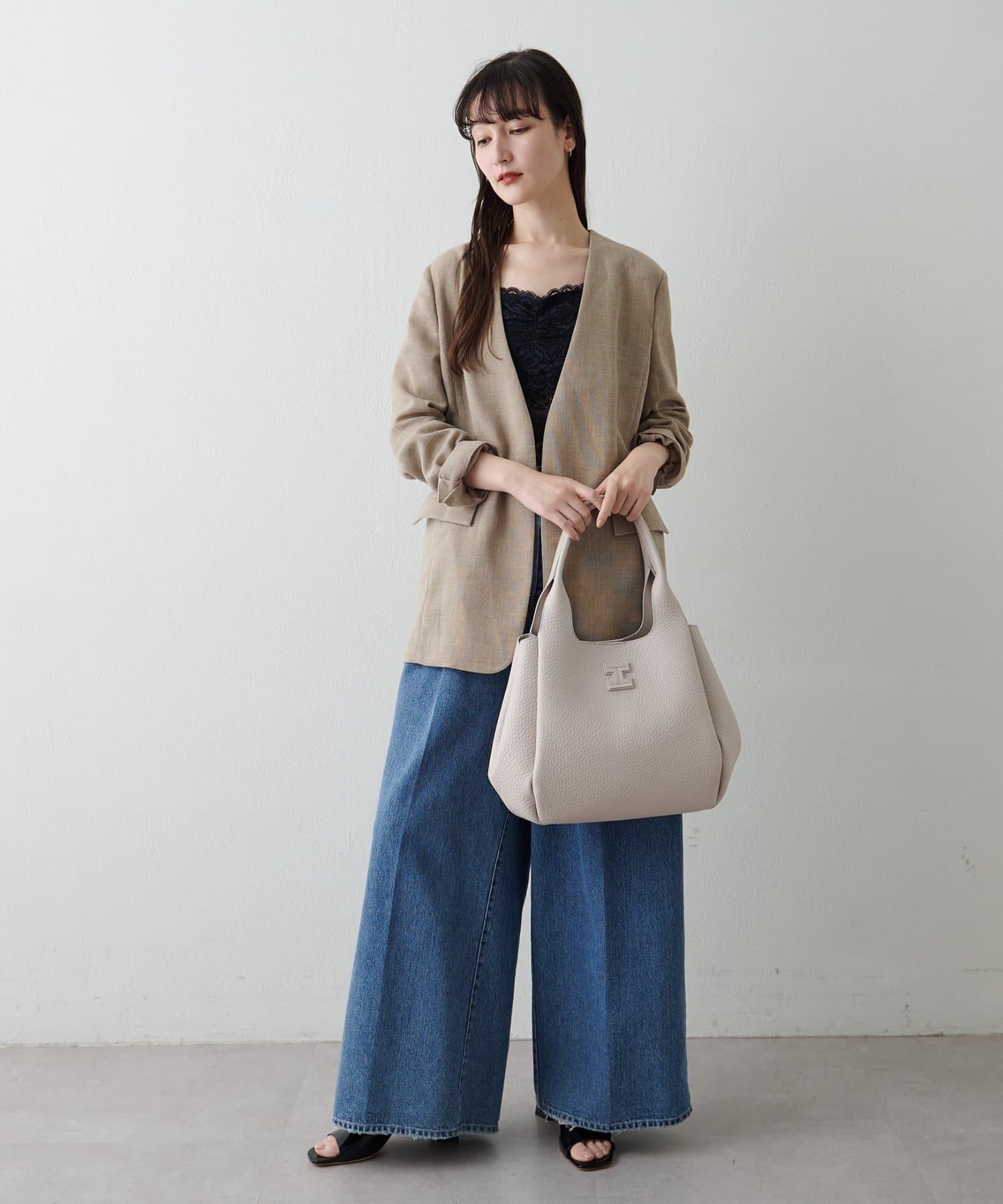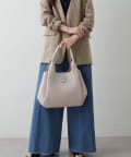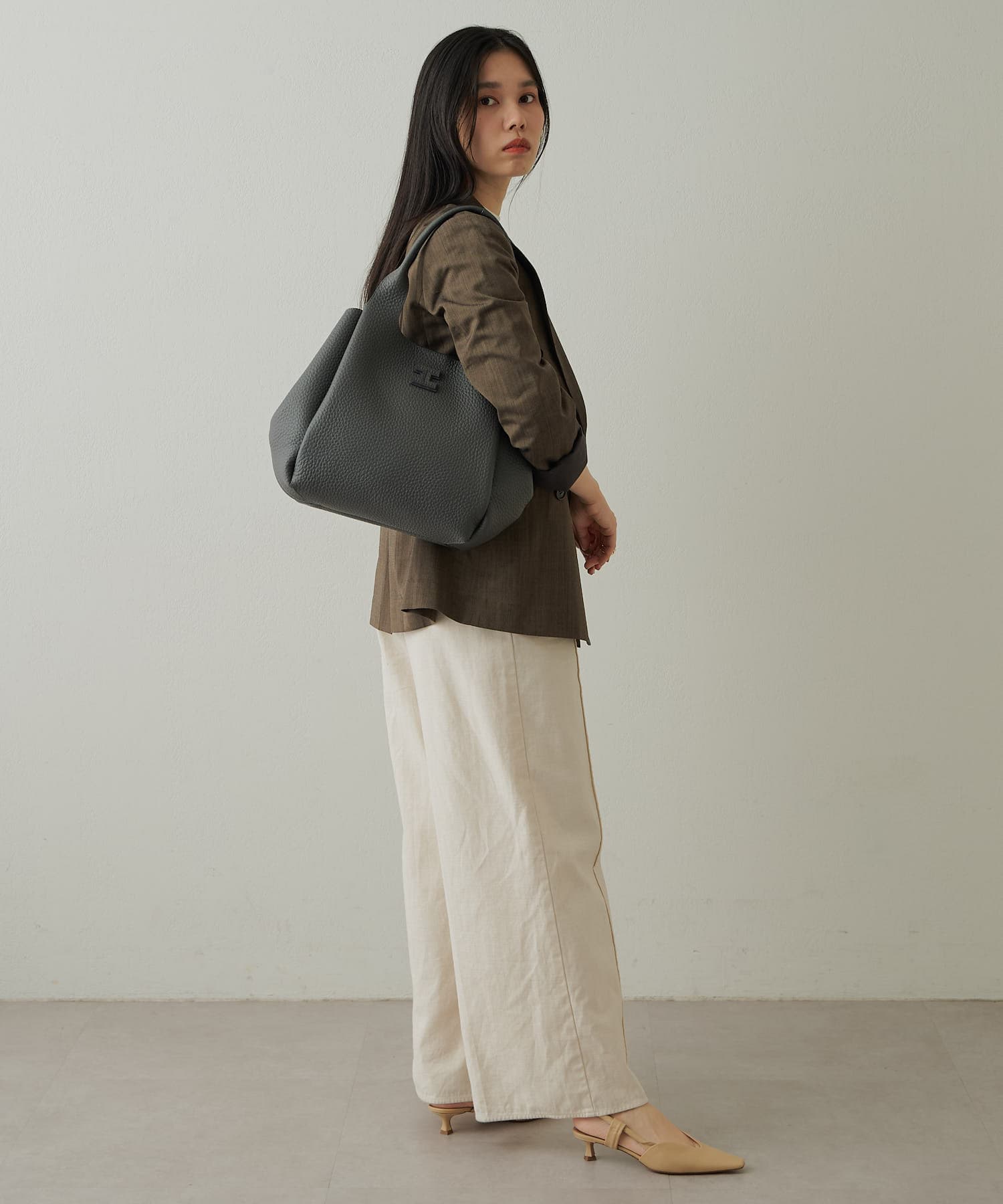 内ポケット付きで、ワイドシルエットに広げればさらに容量アップも可能な機能性の良さも魅力的。開け口は大きく開くので荷物が取り出しやすく、肩掛けもしやすいショルダーの長さで、プライベートはもちろんお仕事まで幅広いシーンで使いやすく活躍してくれます。
