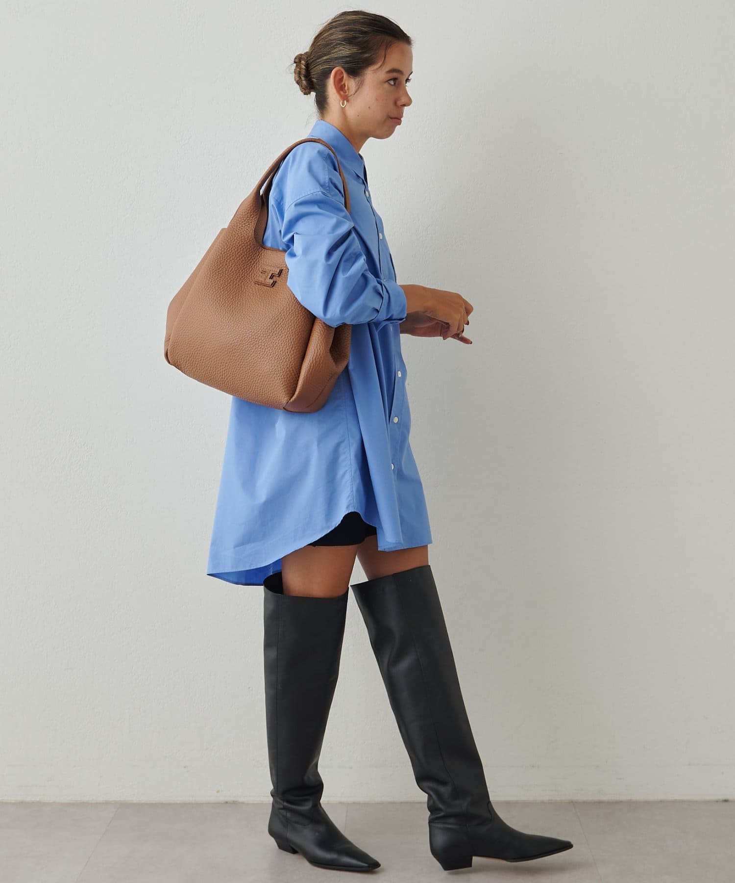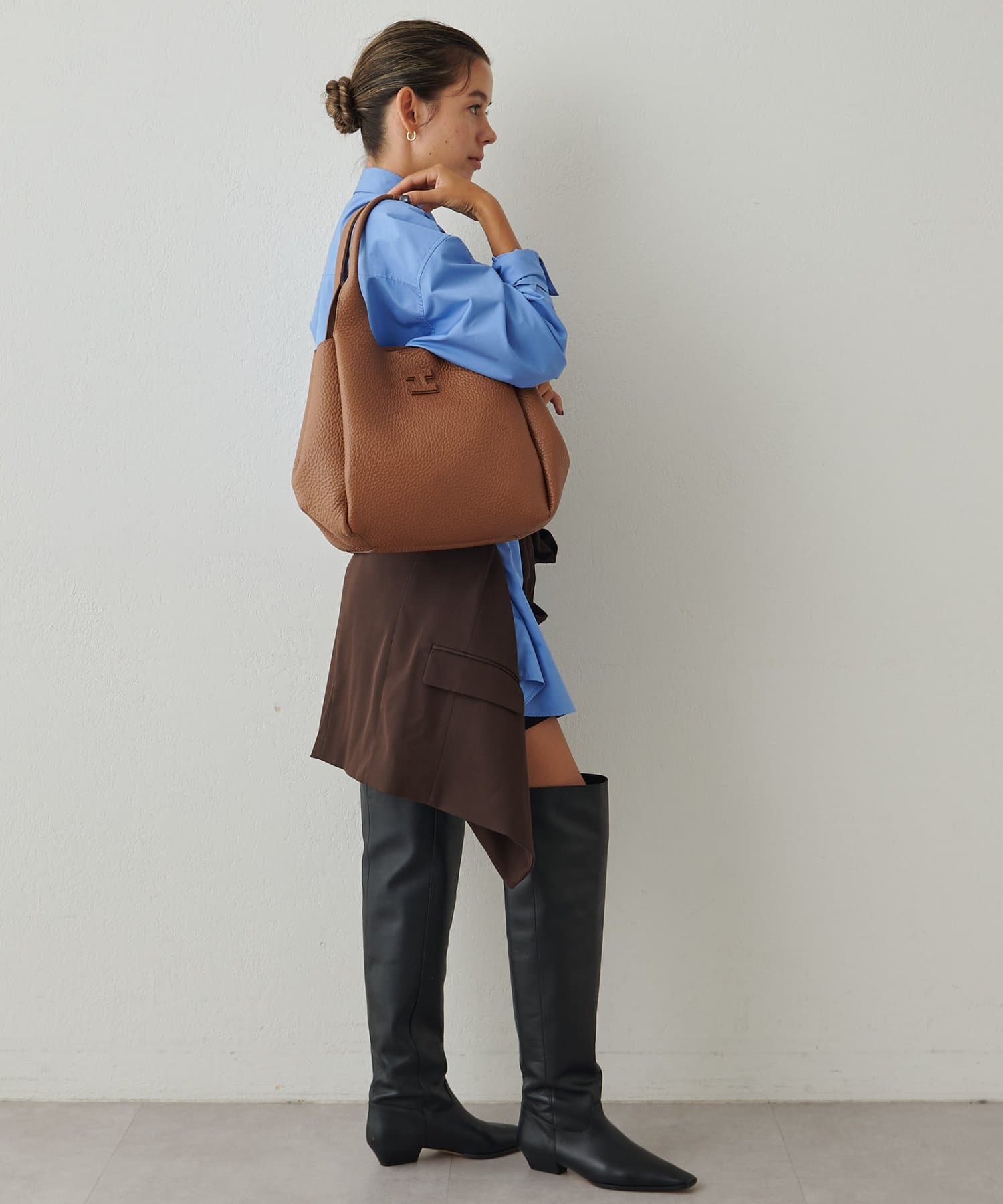 内ポケット付きで、ワイドシルエットに広げればさらに容量アップも可能な機能性の良さも魅力的。開け口は大きく開くので荷物が取り出しやすく、肩掛けもしやすいショルダーの長さで、プライベートはもちろんお仕事まで幅広いシーンで使いやすく活躍してくれます。