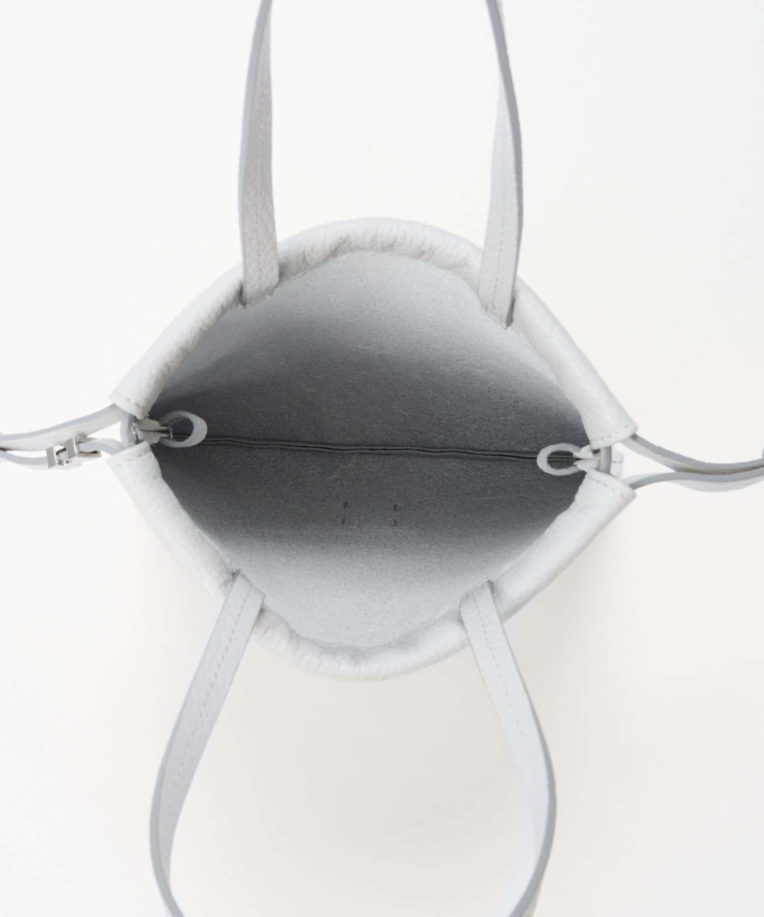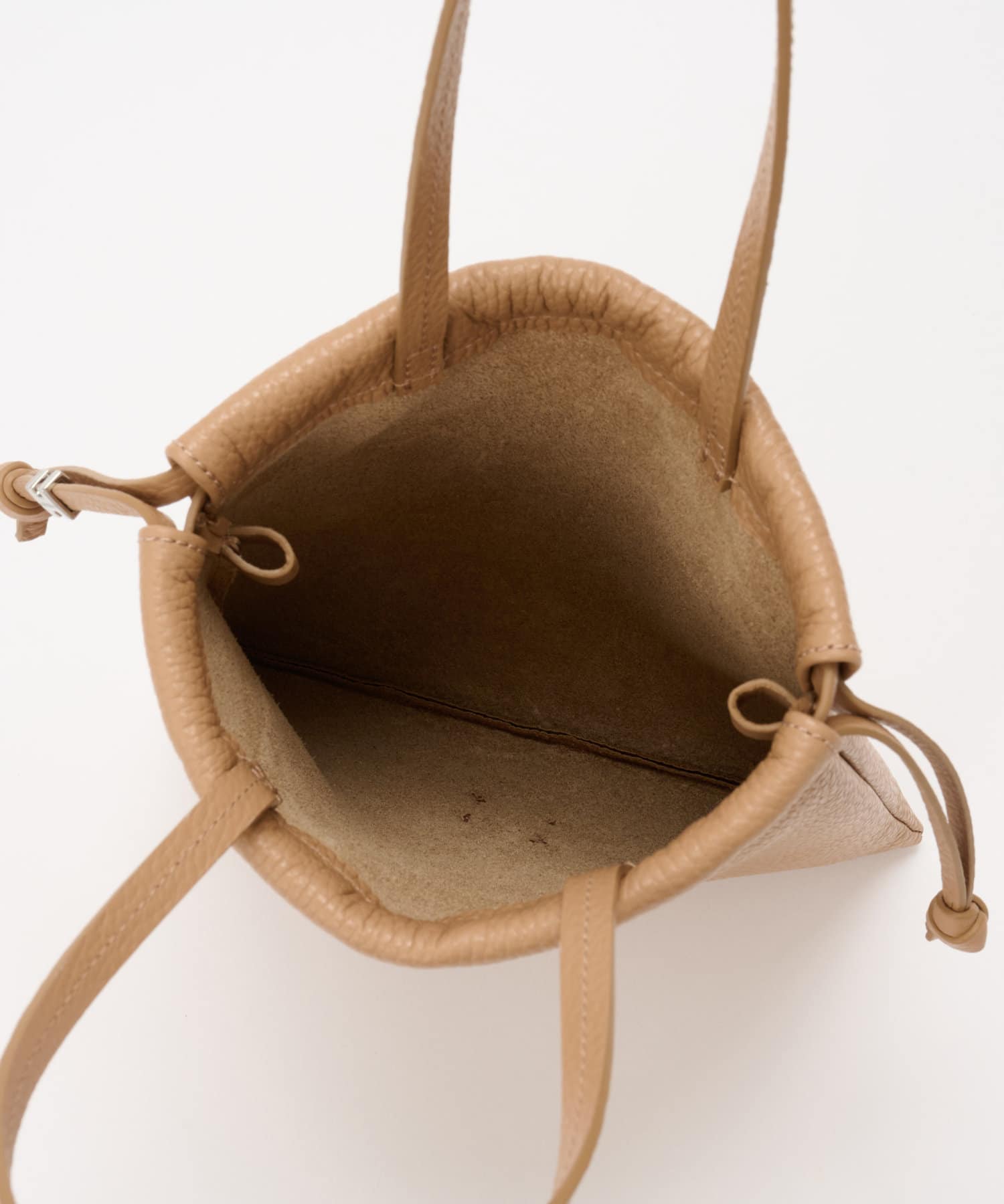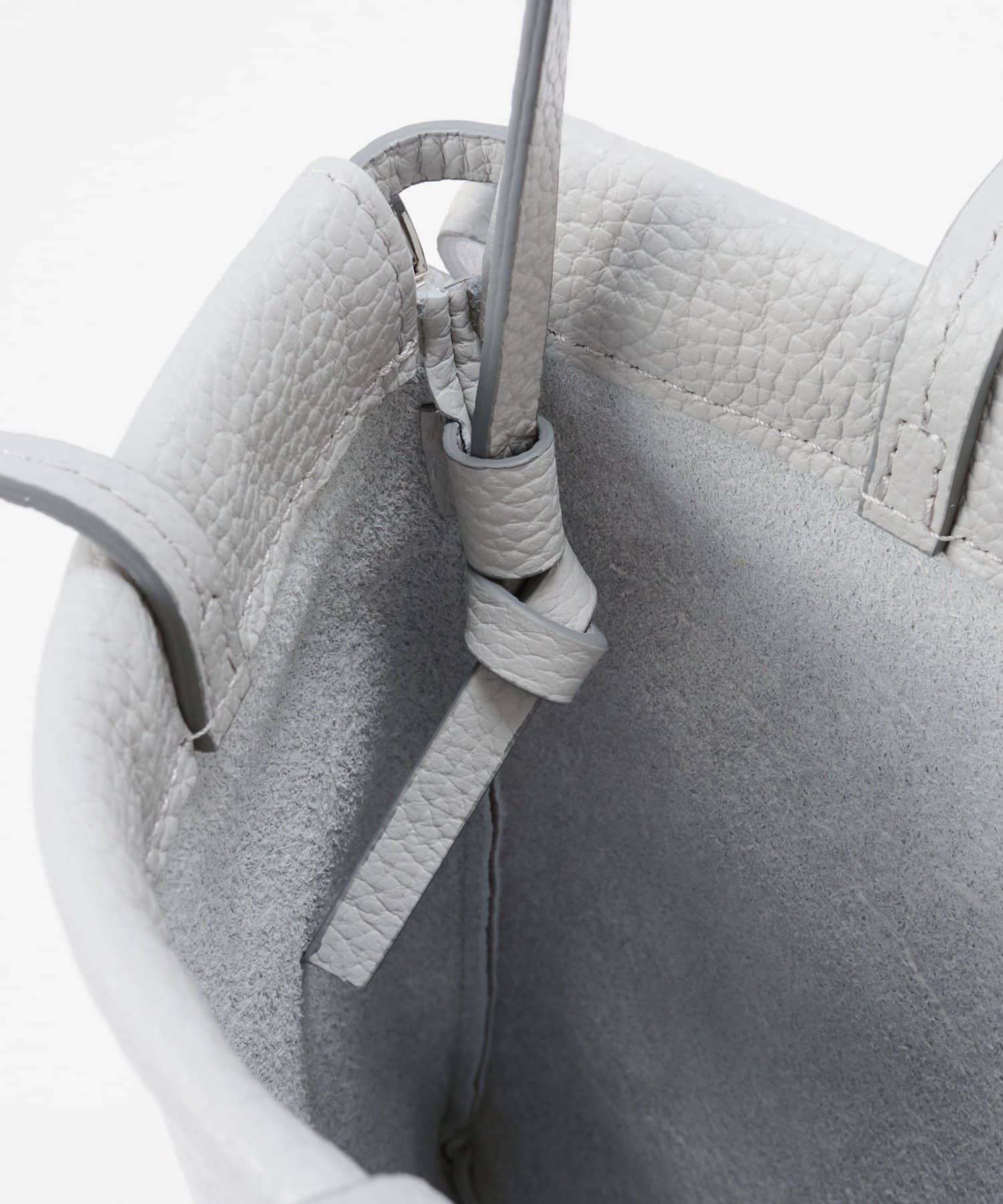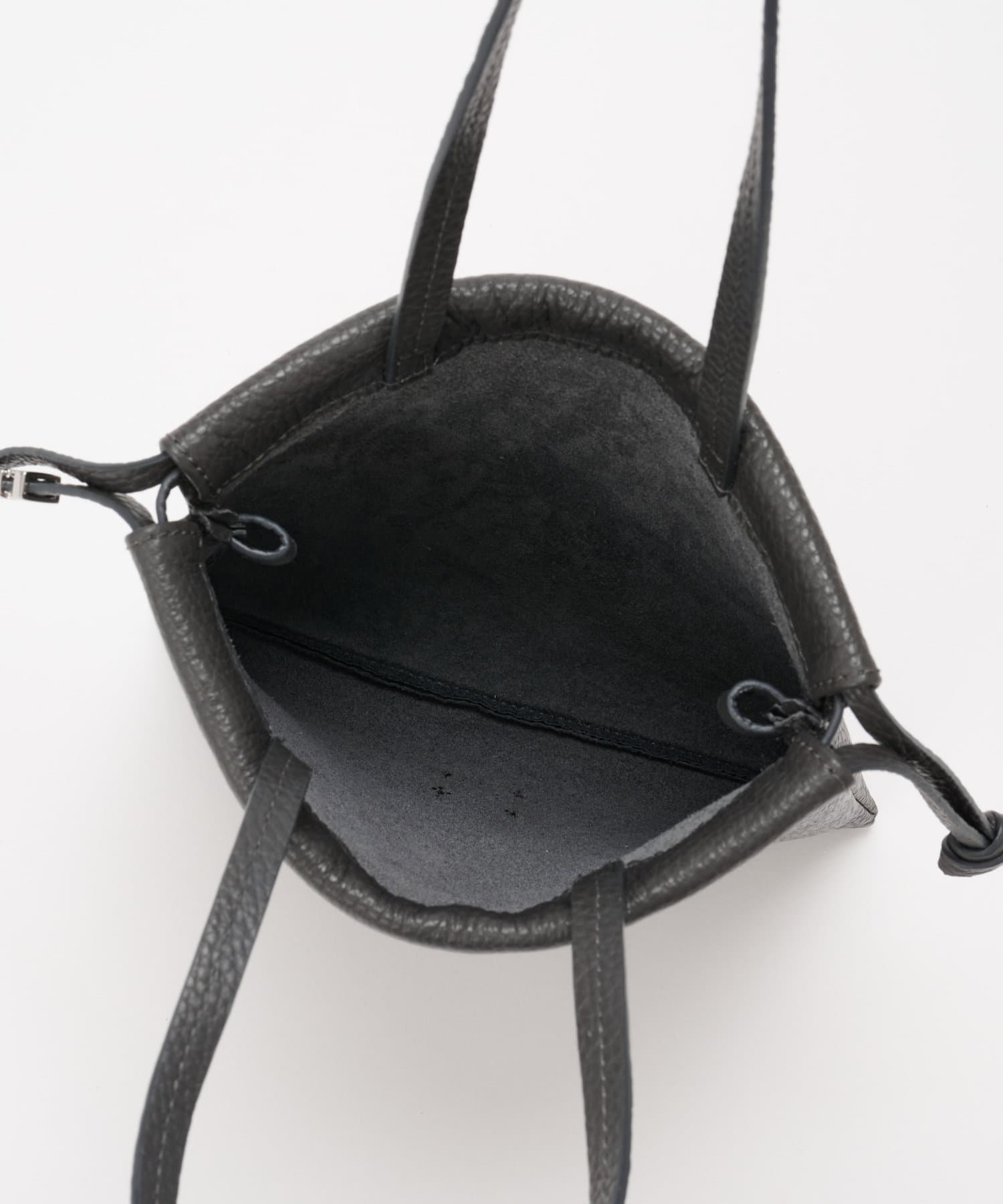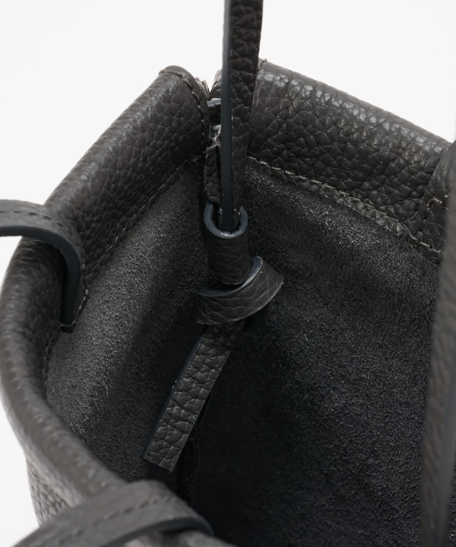 優しい風合いが特徴のシボレザーを使用した一枚革仕立てで、メタルも最小限にすることで洗練されたミニマムなデザインに仕上がりました。スタイリングの邪魔をしない華奢なハンドルと、取り外しが可能なショルダーストラップ付きで、2WAYでお使いいただけます。