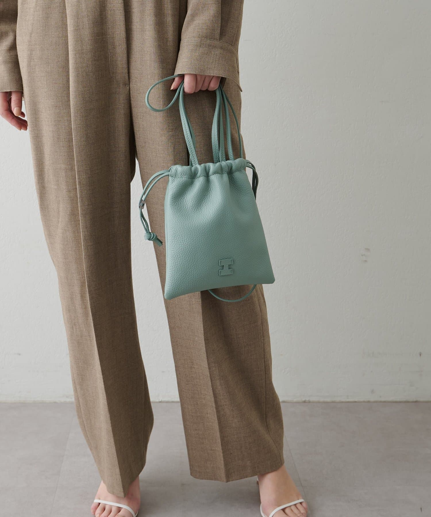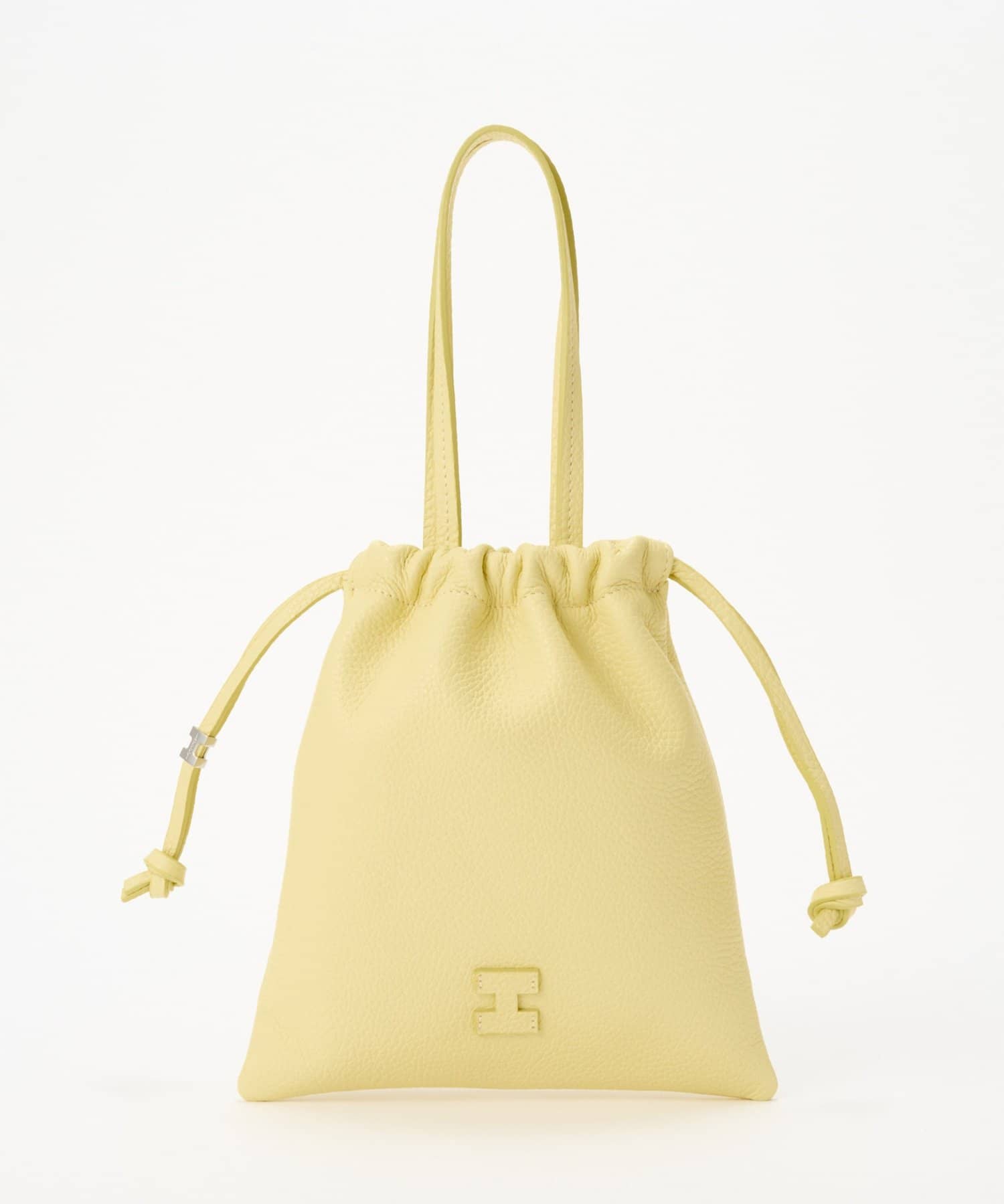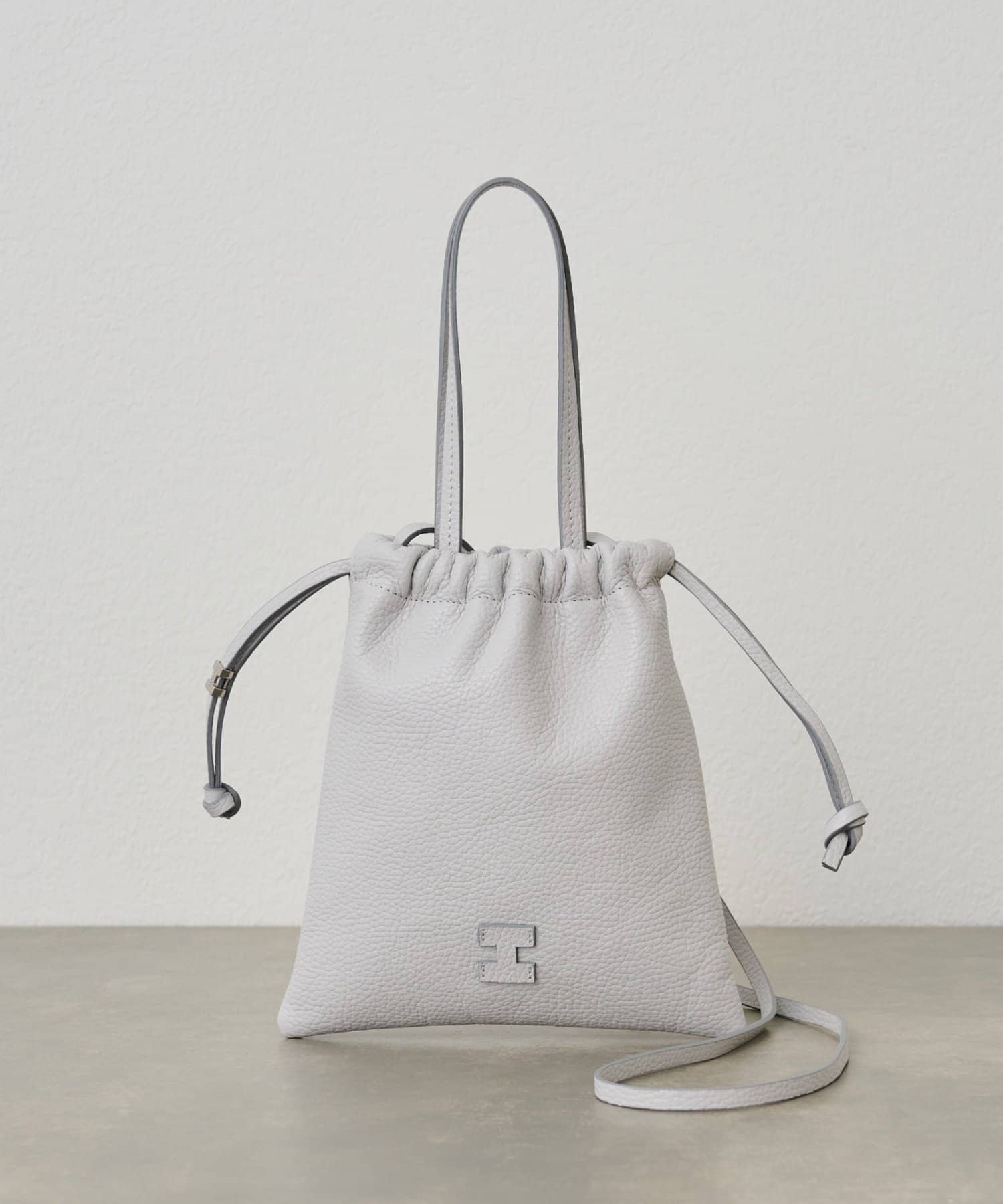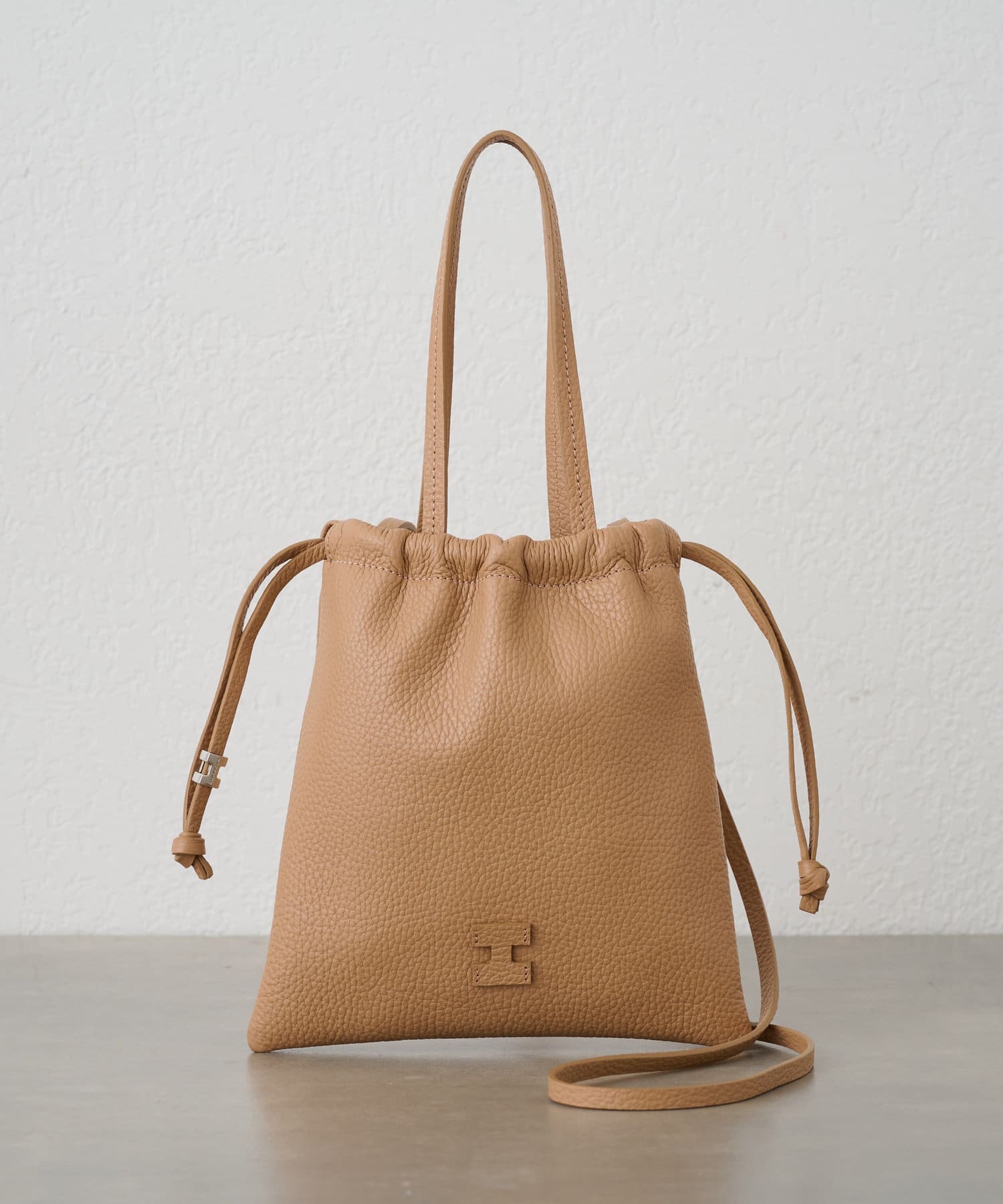 フロントに施された「I」のレザーパーツとコードに施したロゴメタルがワンポイントの2WAY巾着トート”GRANELLO(グラネッロ)”。
