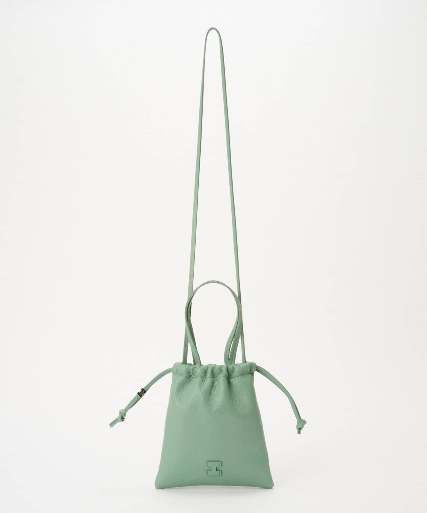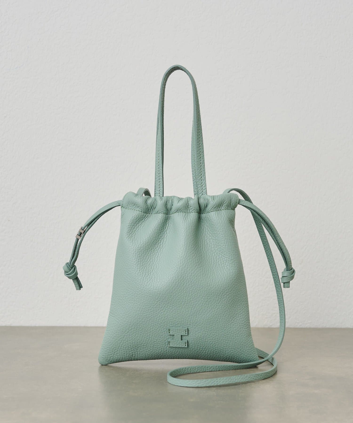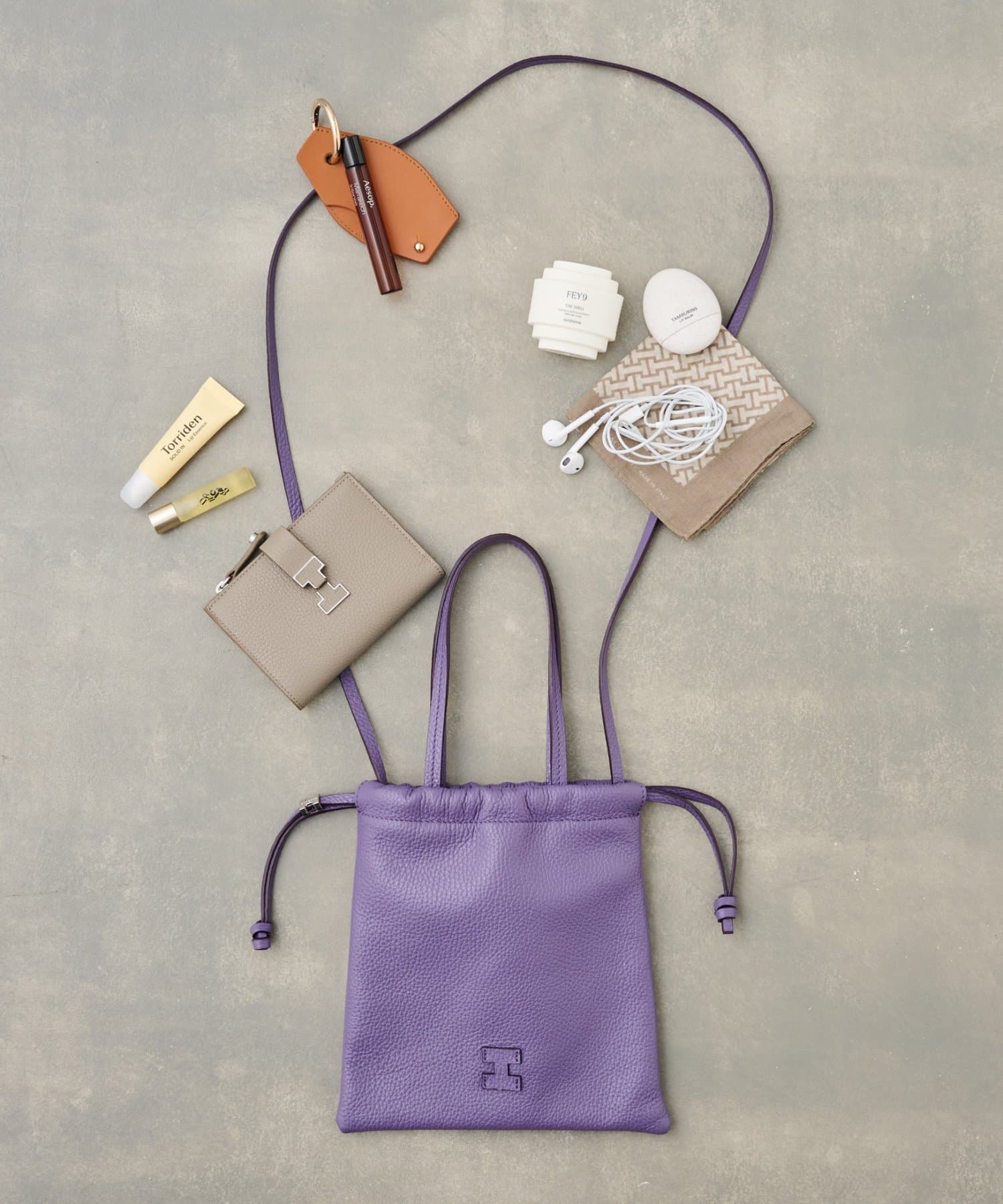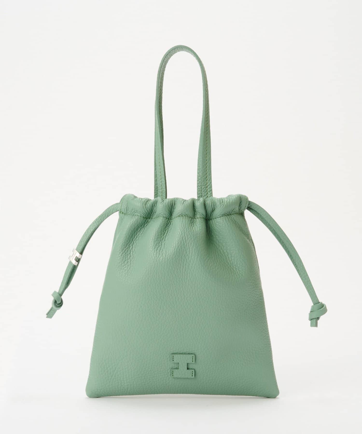 フロントに施された「I」のレザーパーツとコードに施したロゴメタルがワンポイントの2WAY巾着トート”GRANELLO(グラネッロ)”。