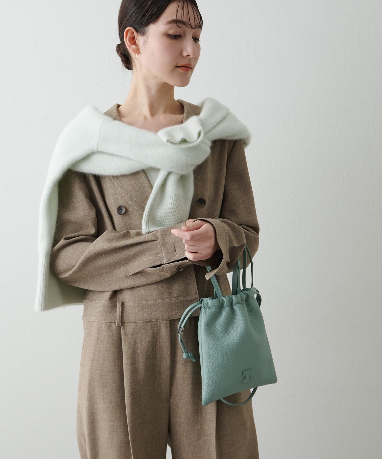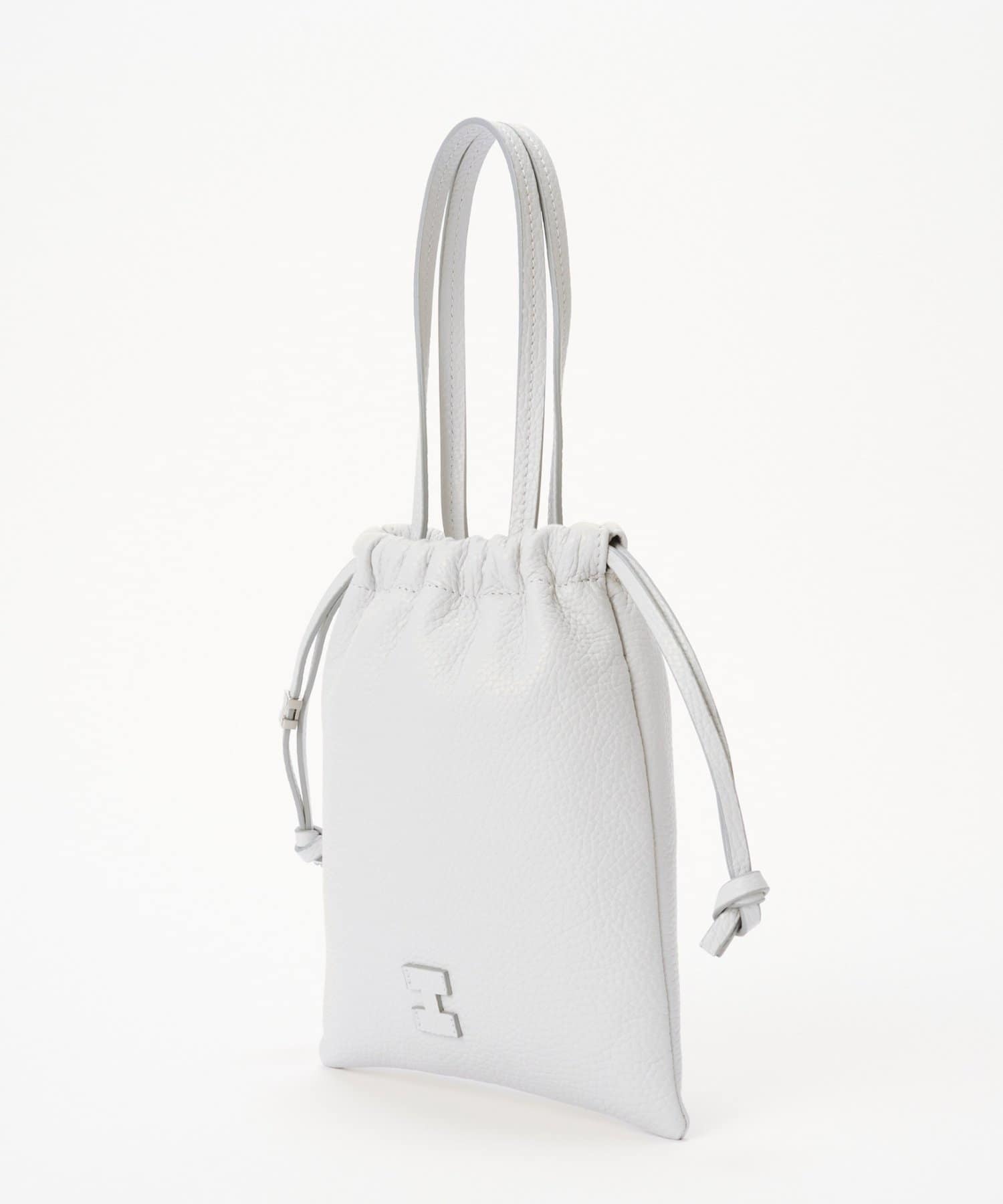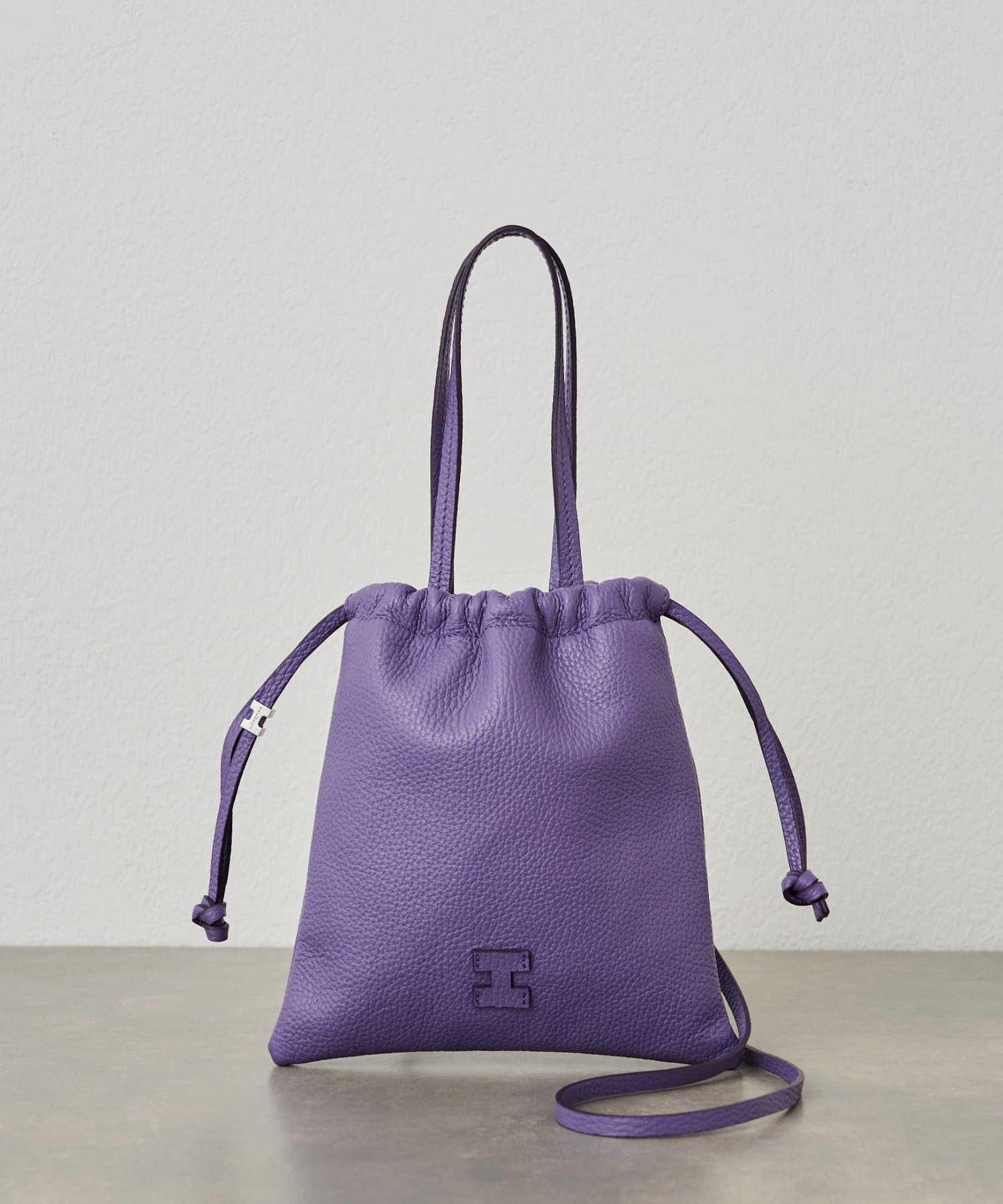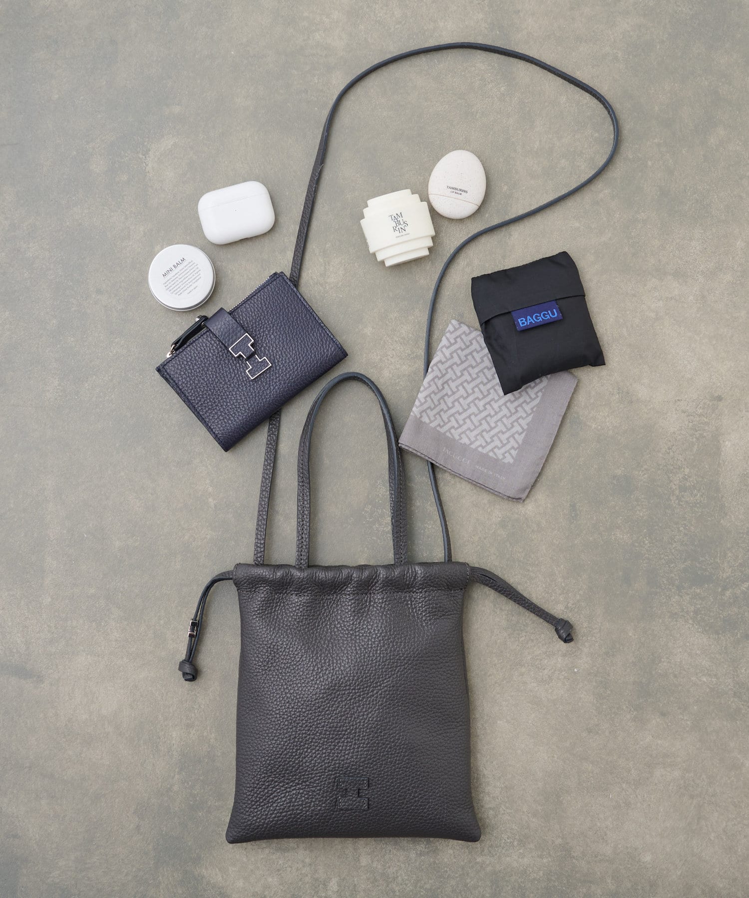 フロントに施された「I」のレザーパーツとコードに施したロゴメタルがワンポイントの2WAY巾着トート”GRANELLO(グラネッロ)”。