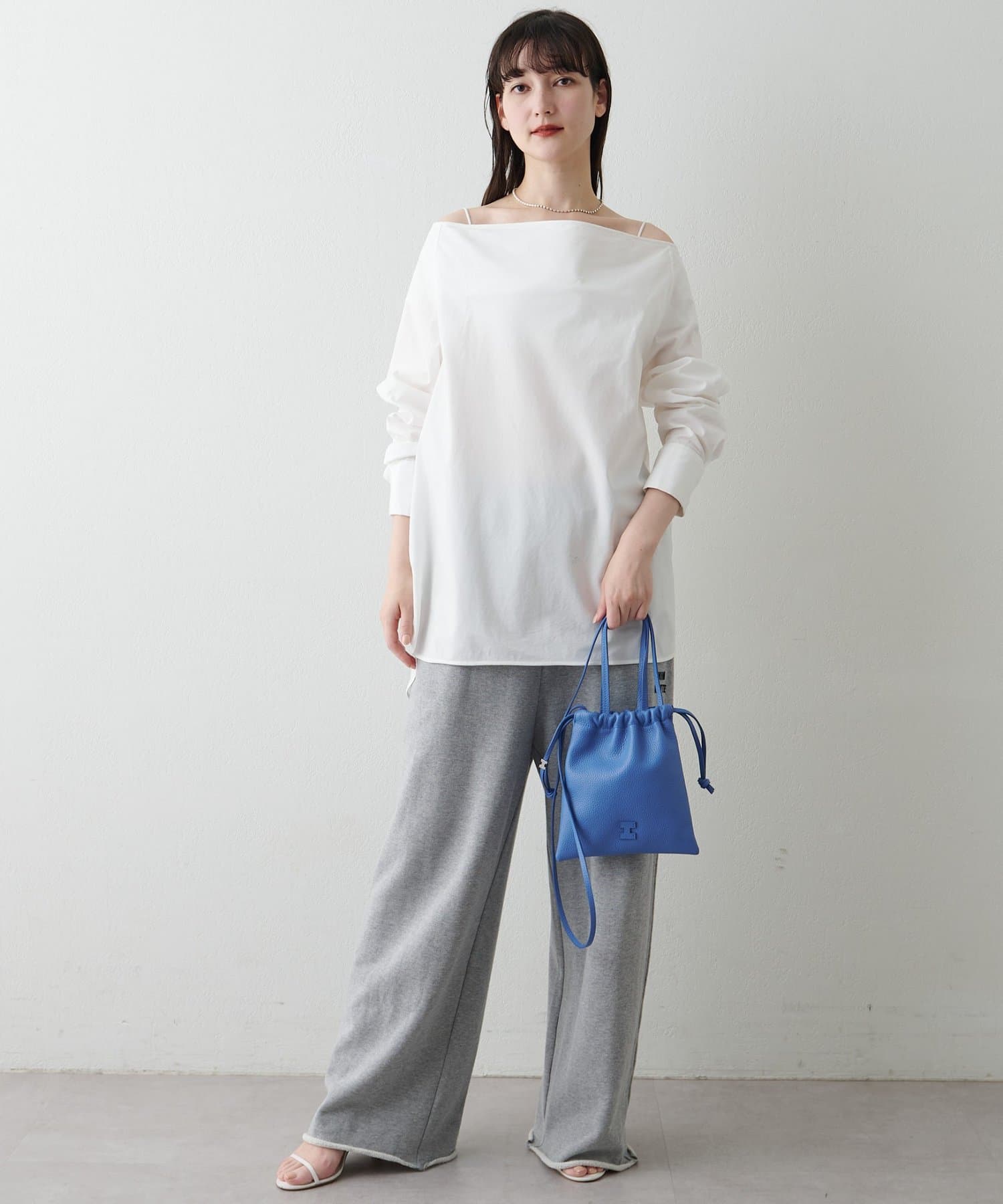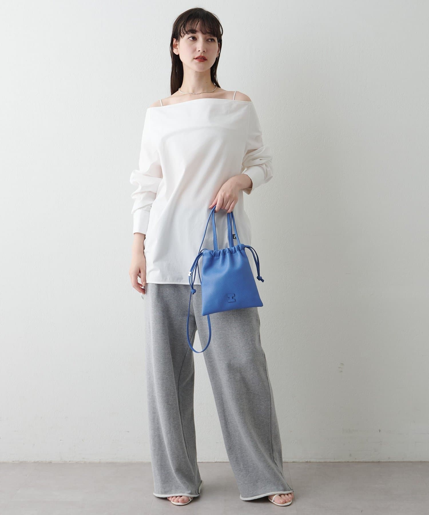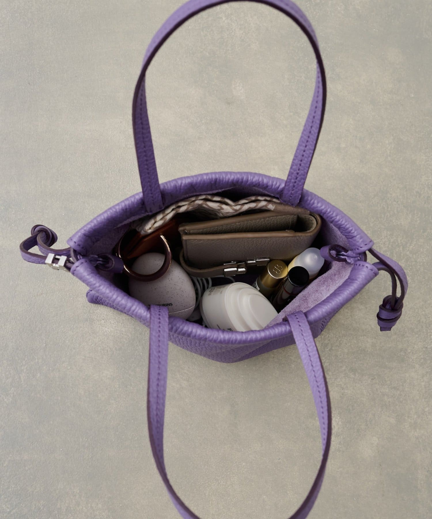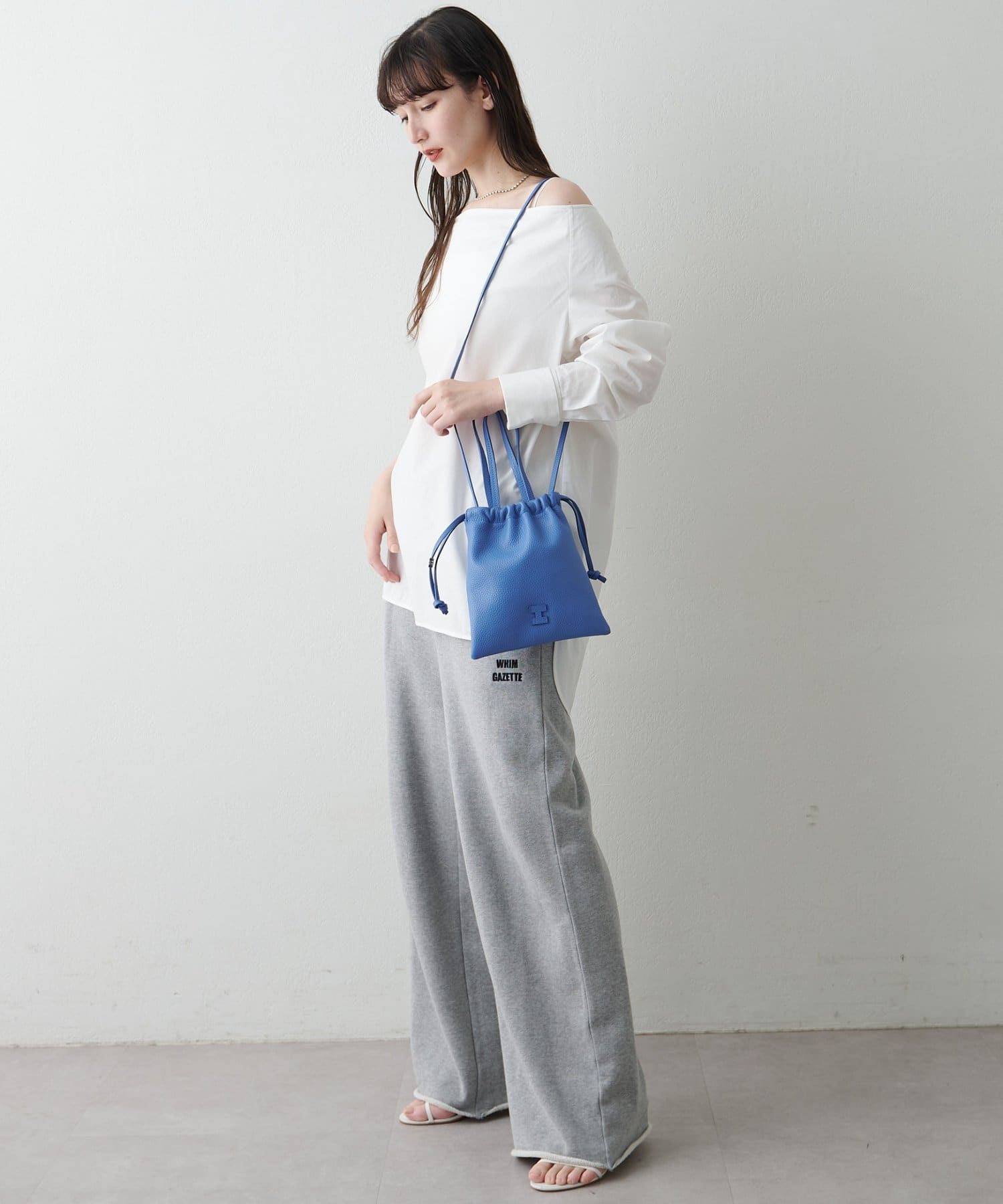 フロントに施された「I」のレザーパーツとコードに施したロゴメタルがワンポイントの2WAY巾着トート”GRANELLO(グラネッロ)”。