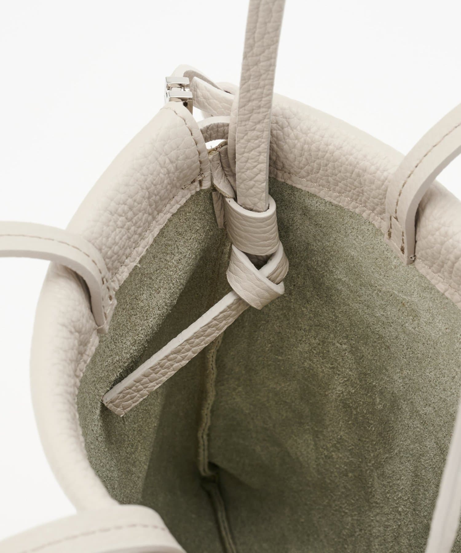 優しい風合いが特徴のシボレザーを使用した一枚革仕立てで、メタルも最小限にすることで洗練されたミニマムなデザインに仕上がりました。スタイリングの邪魔をしない華奢なハンドルと、取り外しが可能なショルダーストラップ付きで、2WAYでお使いいただけます。