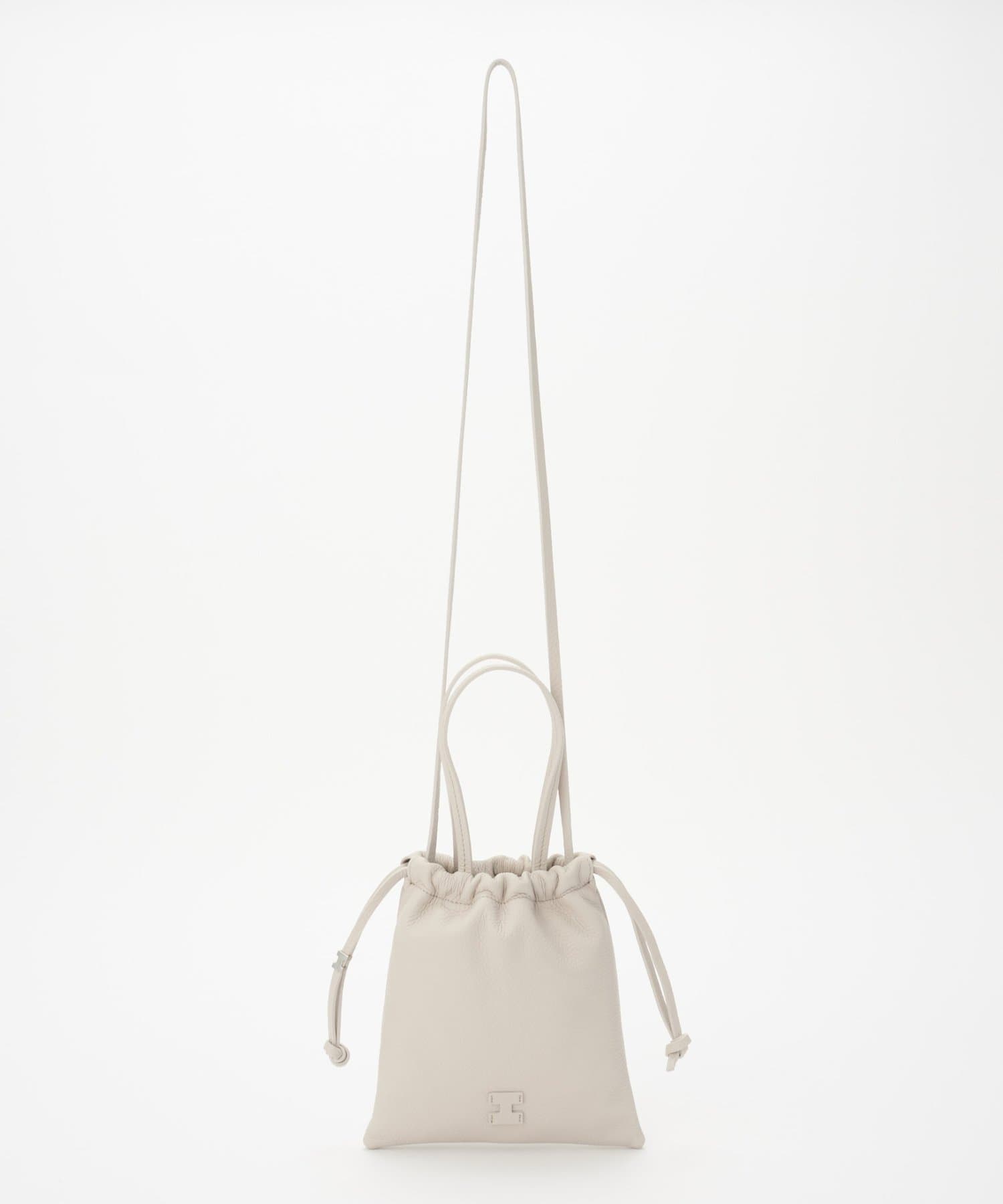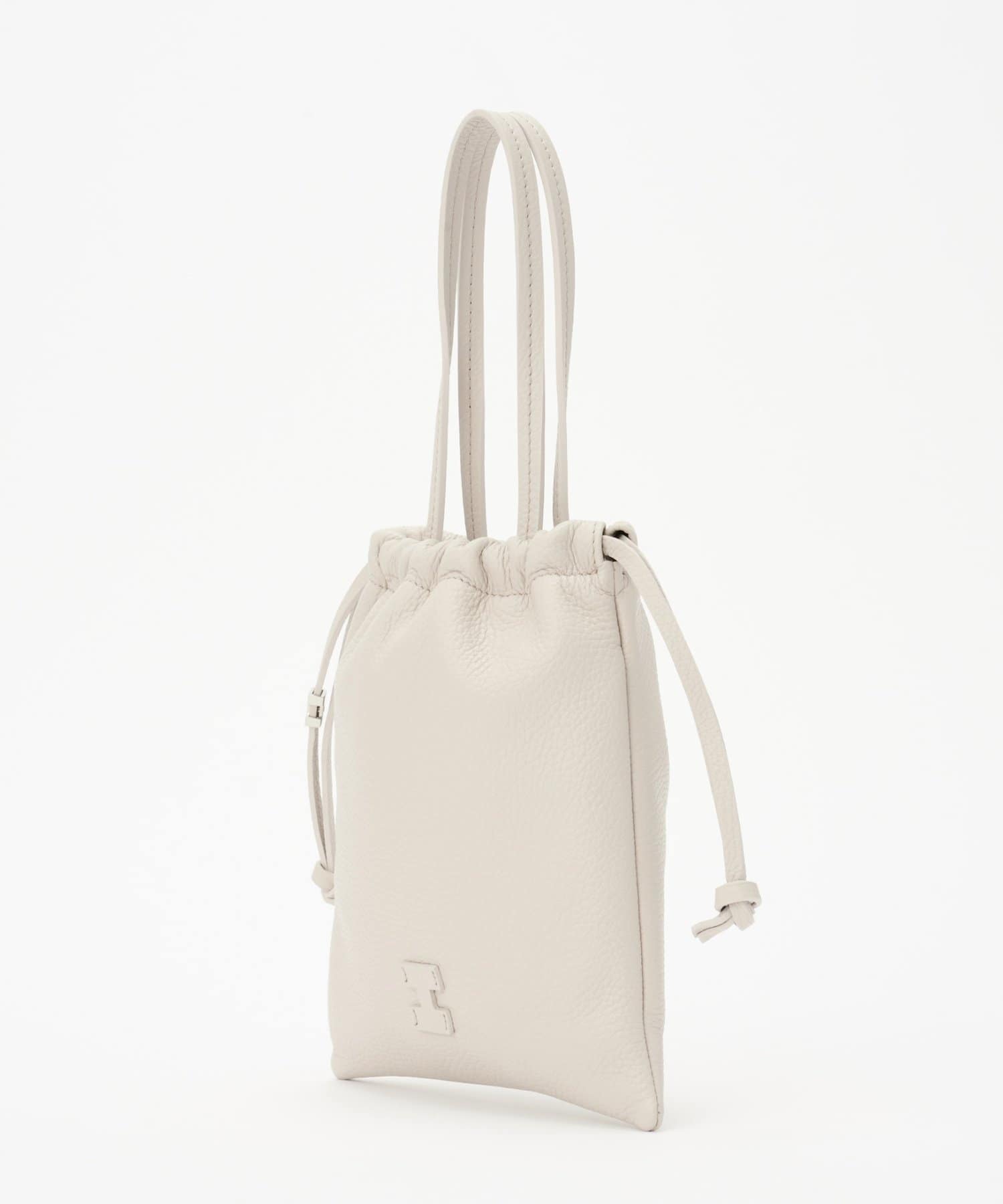 フロントに施された「I」のレザーパーツとコードに施したロゴメタルがワンポイントの2WAY巾着トート”GRANELLO(グラネッロ)”。