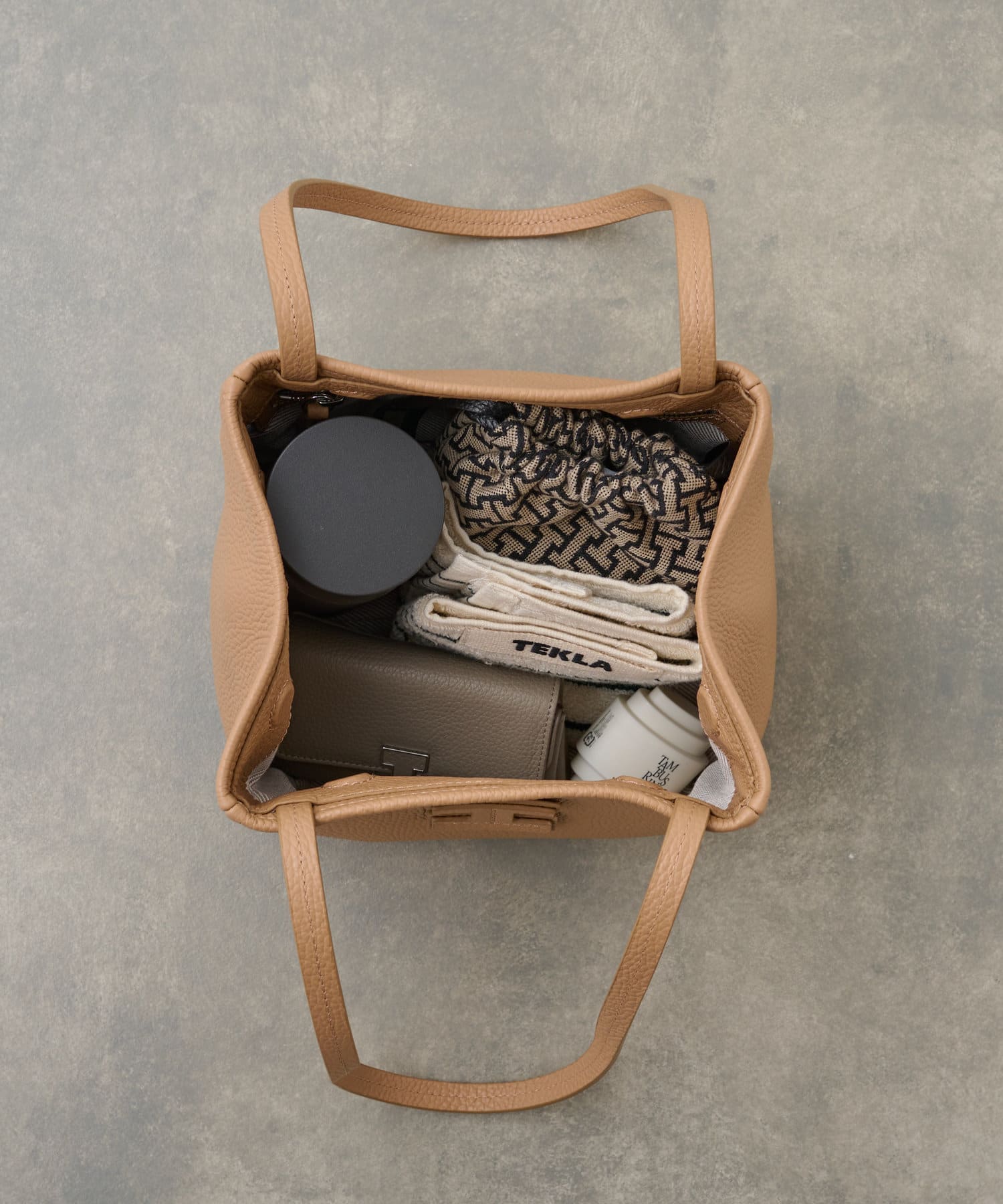 長めのハンドルデザインでラフに肩掛けも〇。間口が大きく開くので荷物が取り出しやすく、左右にマグネットを施すことで、お荷物を収納してもシルエットが崩れないのも嬉しいポイントです。広めのマチ幅で見た目以上の収納力が叶うのも人気の秘訣!