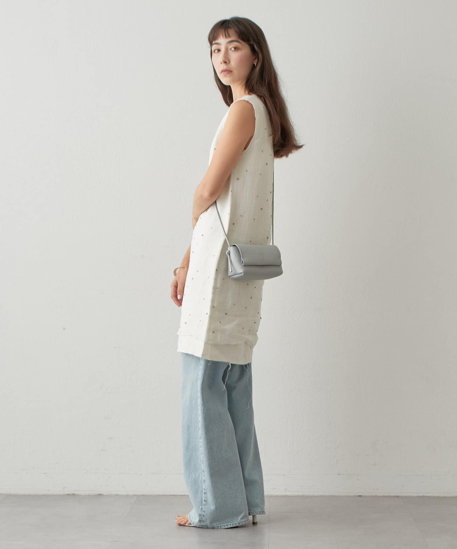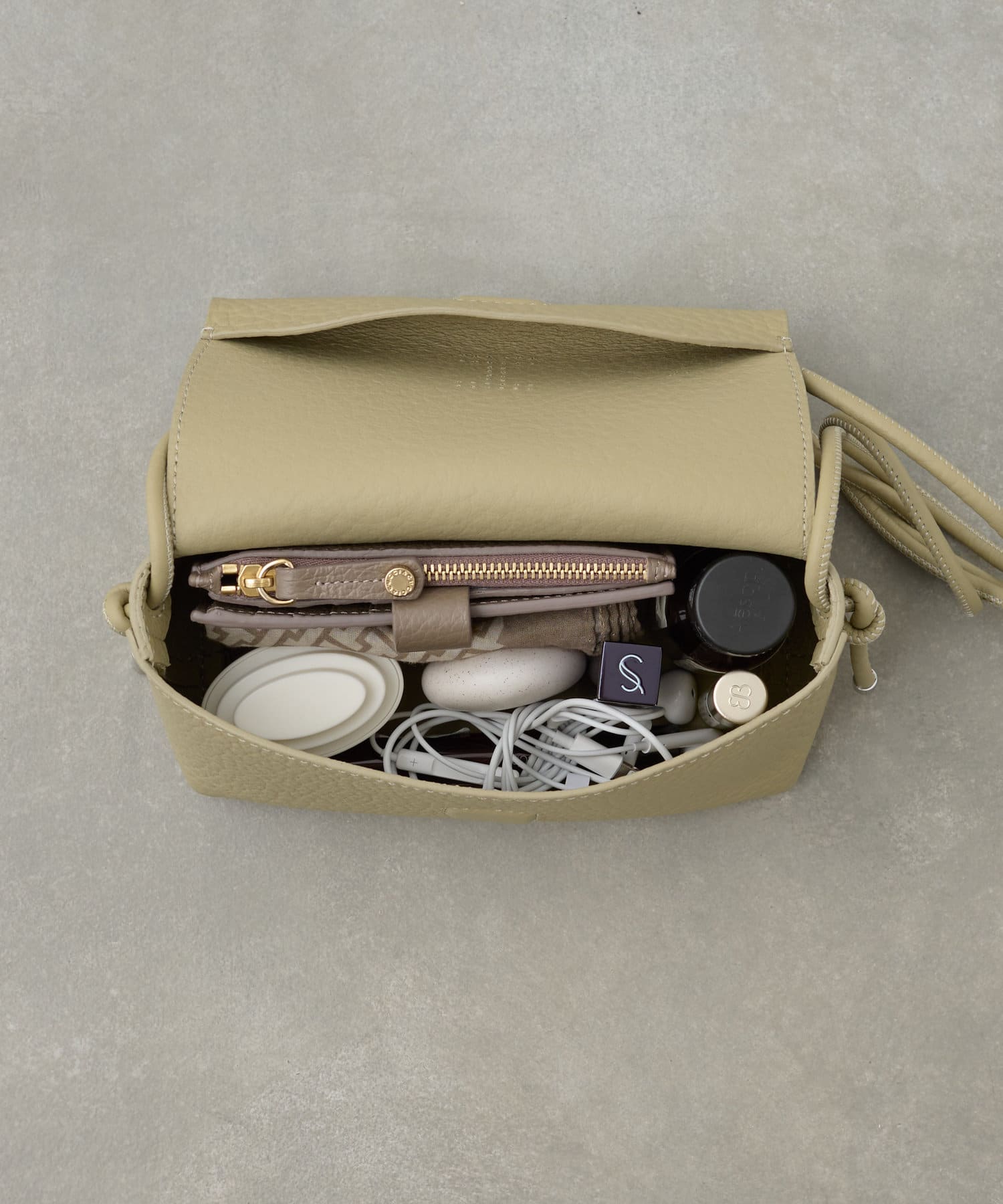 コンパクトながらも広めのマチ幅で、ミニウォレットやリップ、ワイヤレスイヤホン等が収まるサイズ感。ワンマイルバッグとしてはもちろん大きめバッグのサブとしても〇