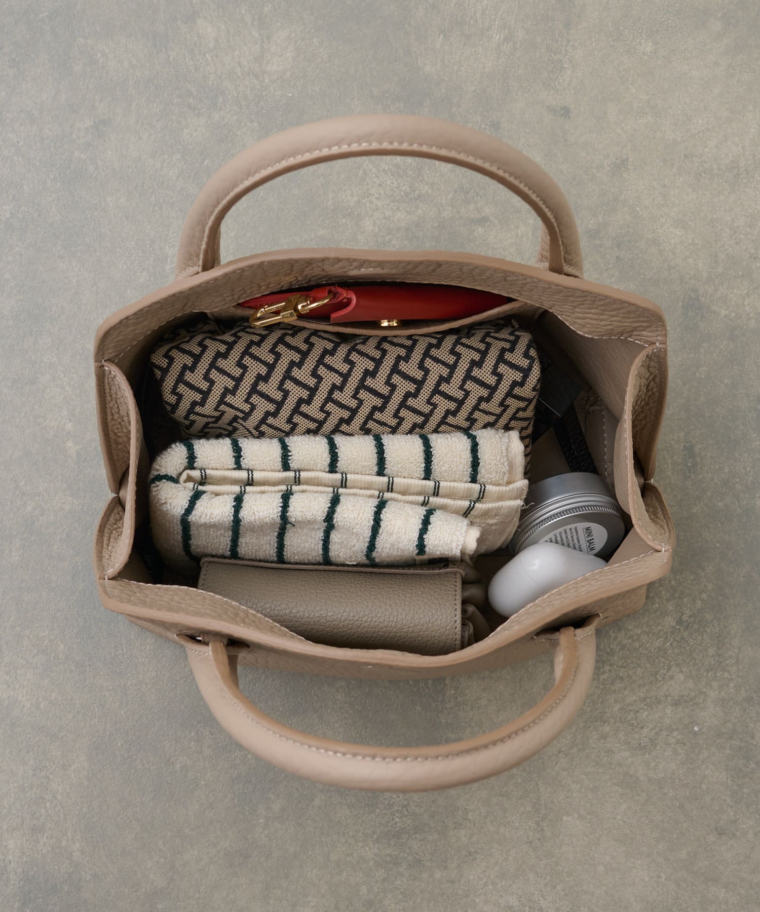 開口部がしっかりと開くので、バッグの中が見やすく出し入れもスムーズ。折りたたみマチもついているので、中身がこぼれにくく大切なお荷物も落ちにくくなっています。