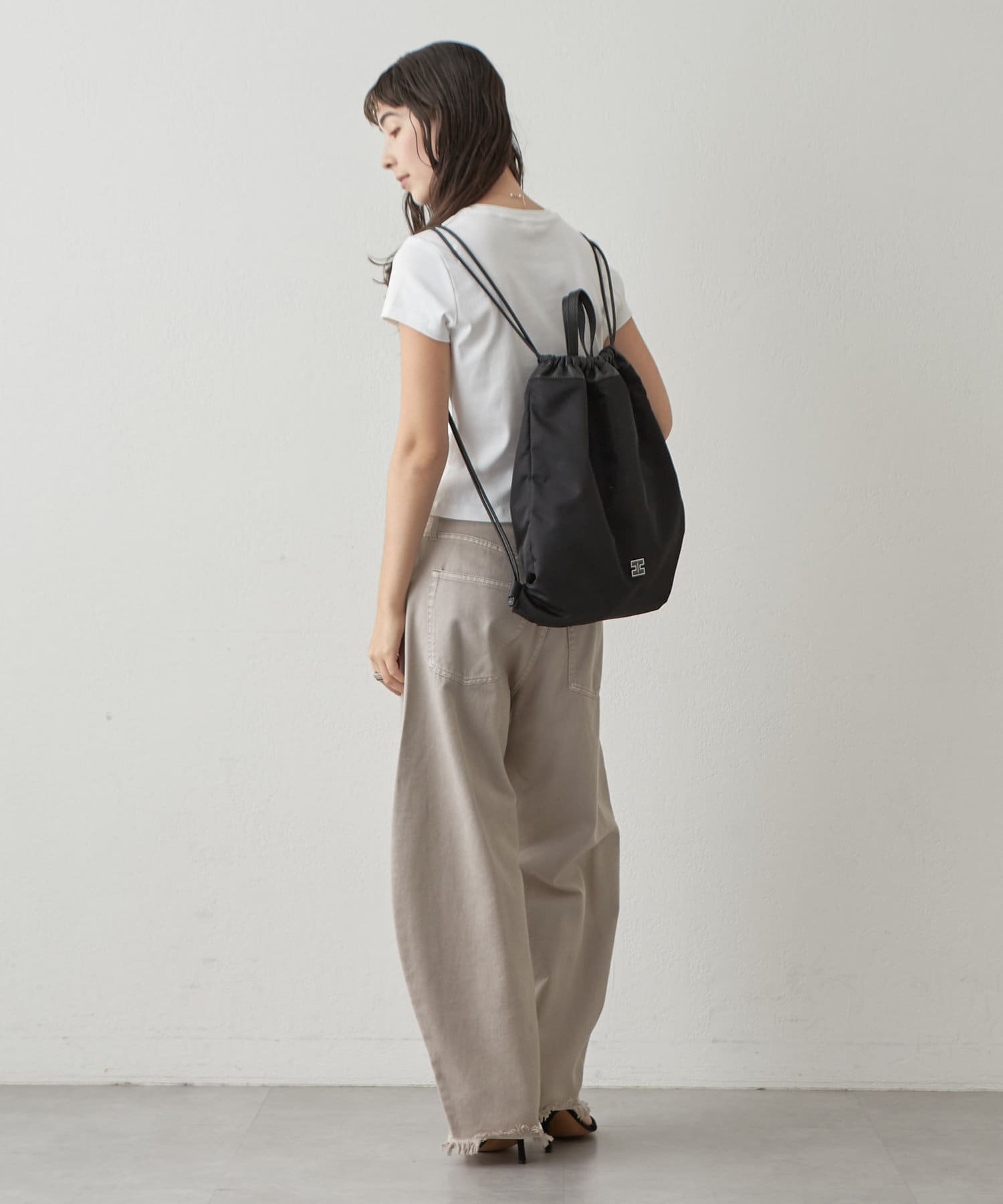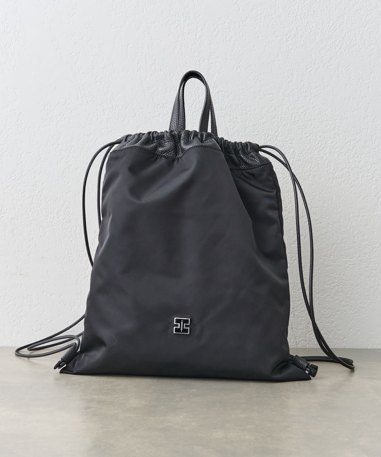 巾着部分にはシボレザーを組み合わせることで、カジュアルなデザインのナップサックを大人の抜け感のある印象に仕上げました。スタイリングを選ばずに合わせられる細身のストラップにはステッチを施し、細部にこだわりの詰まったイアクッチらしい逸品です。