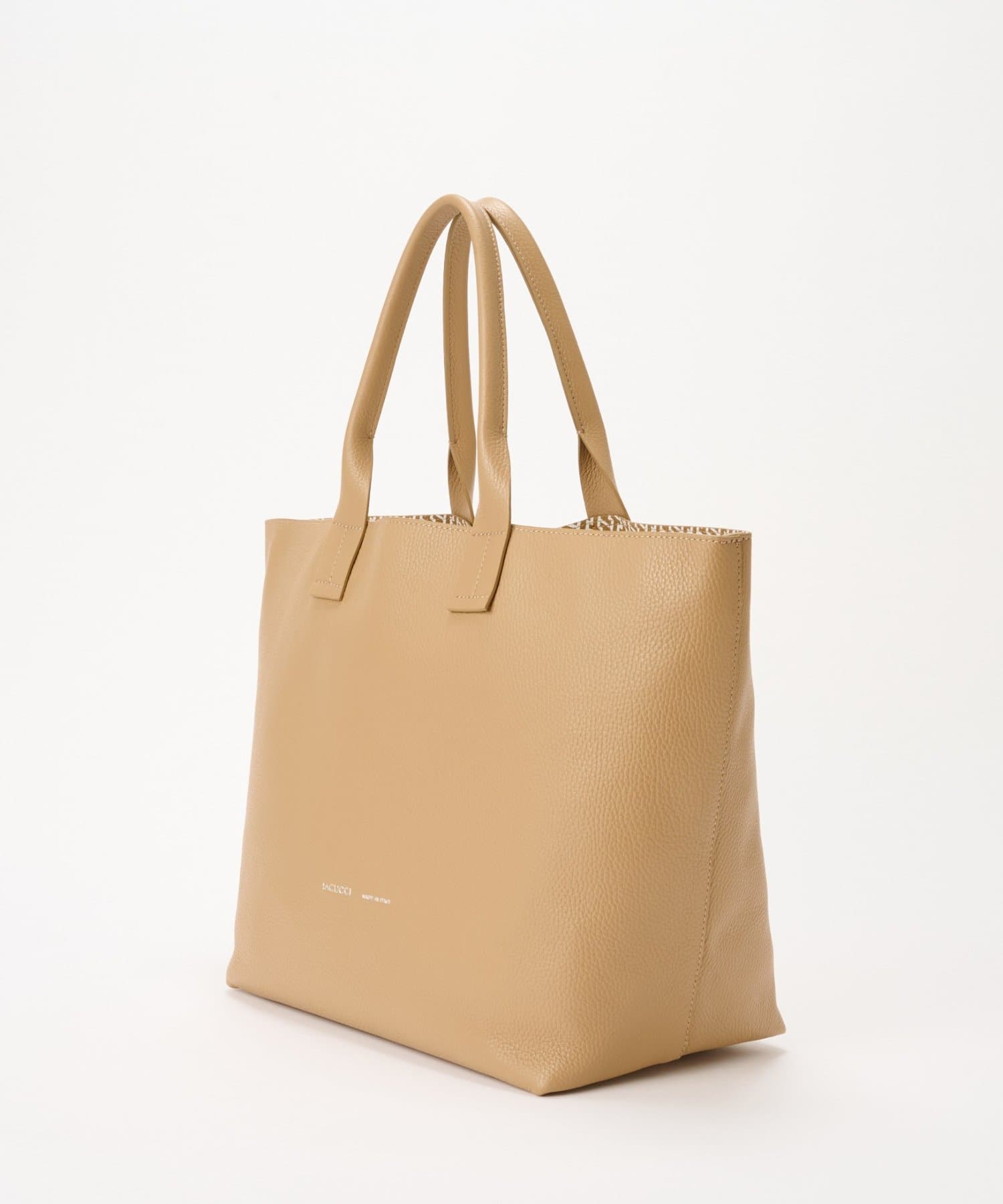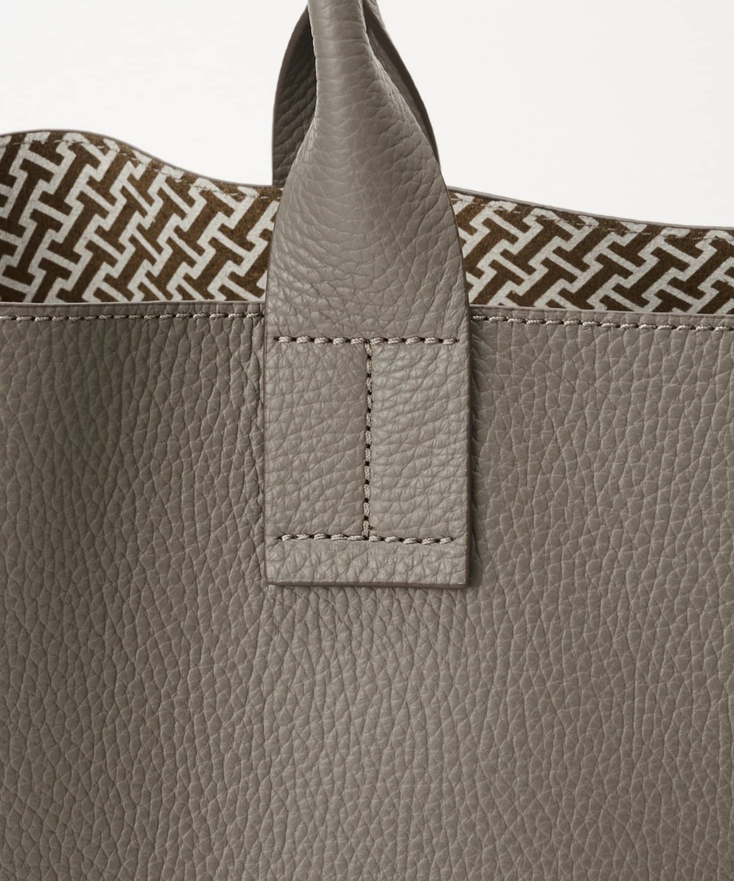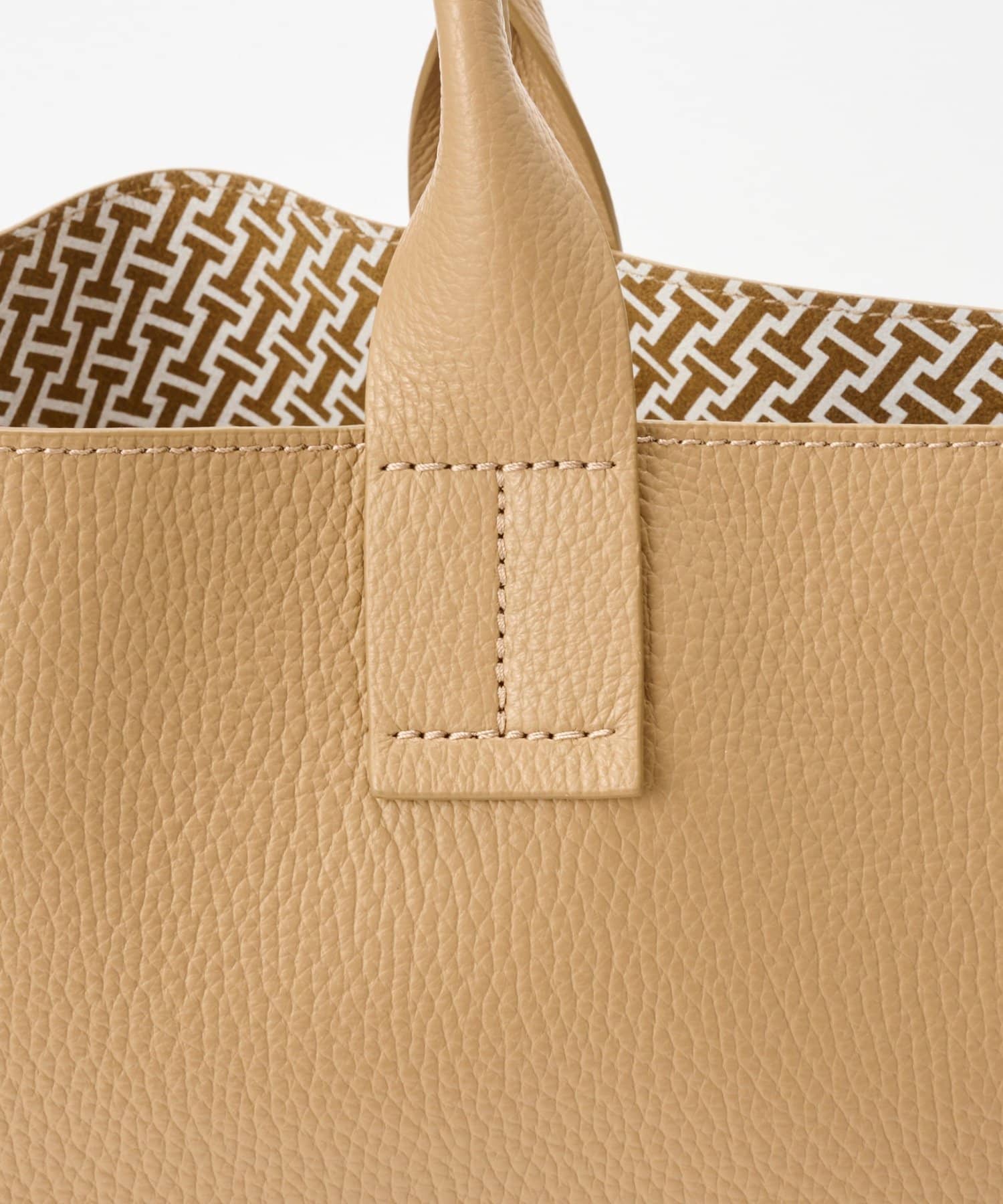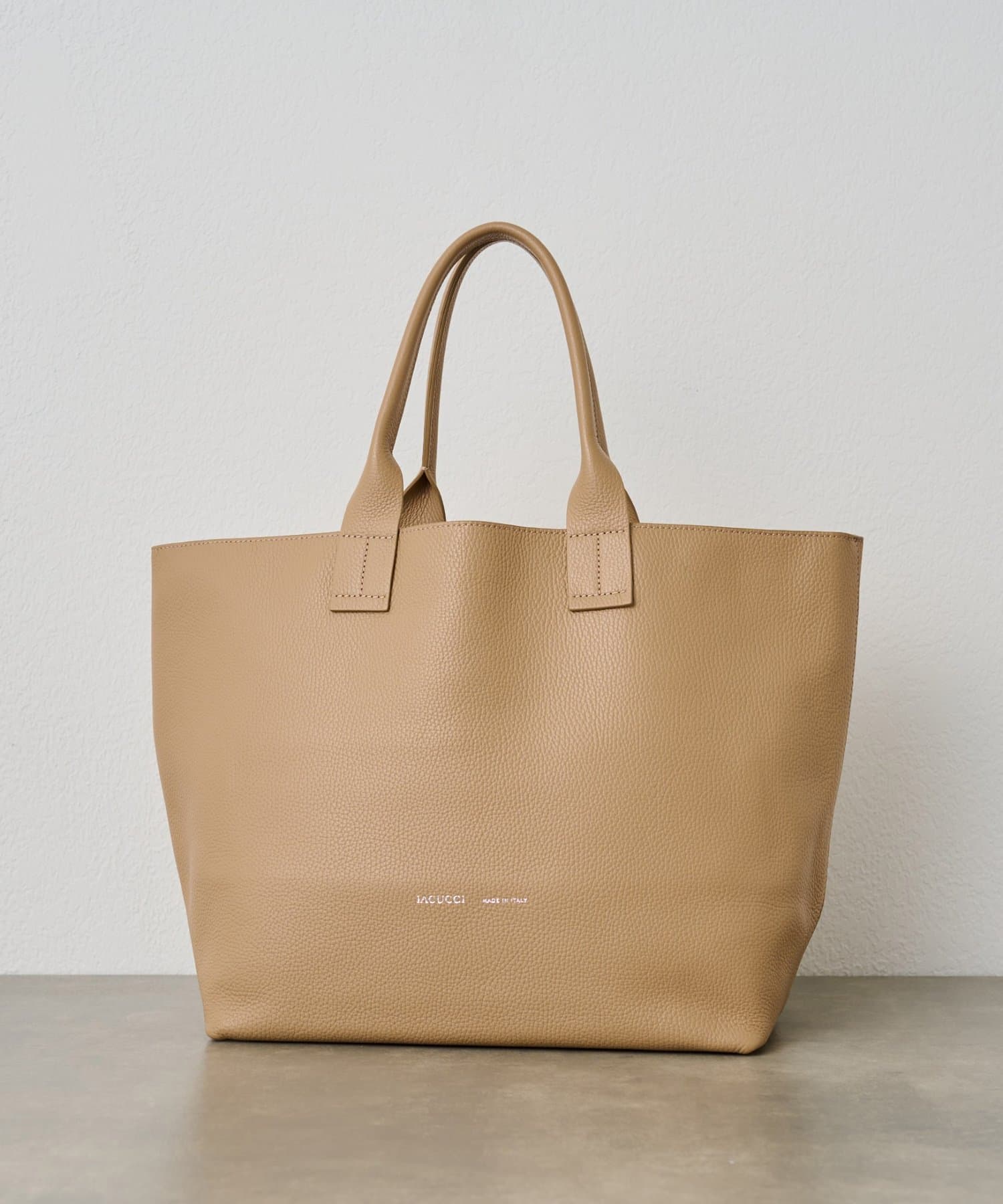 ラフに肩掛けができる長めのハンドルデザインで、大容量の収納が可能なビッグサイズが新登場!女性のわがままを叶えてくれるアイテムに仕上がりました。柔らかなシボレザーを一枚革で仕立てたレザートートで、ビッグサイズながらも大きさを感じずにスタイルに馴染むのも嬉しいポイント。