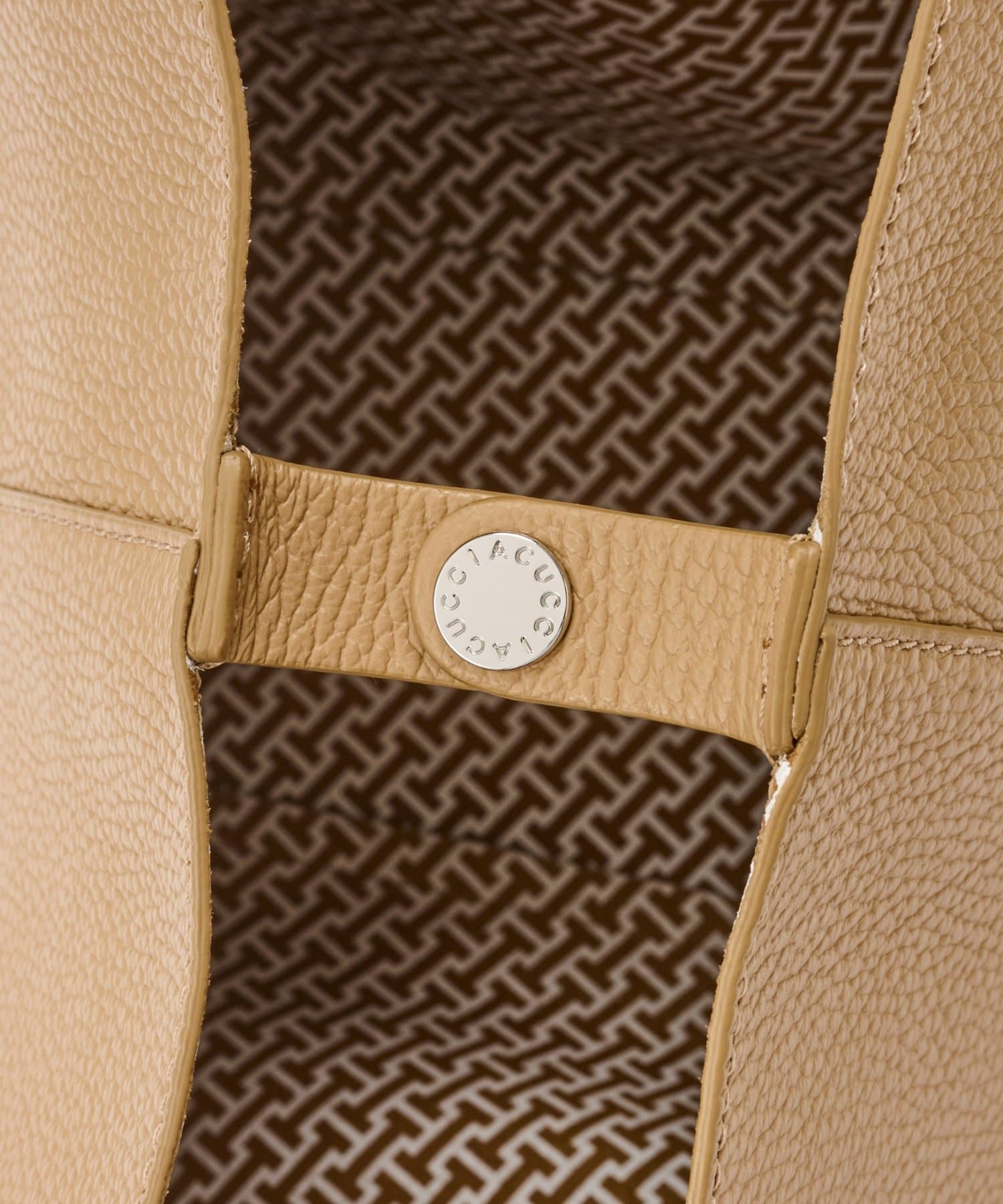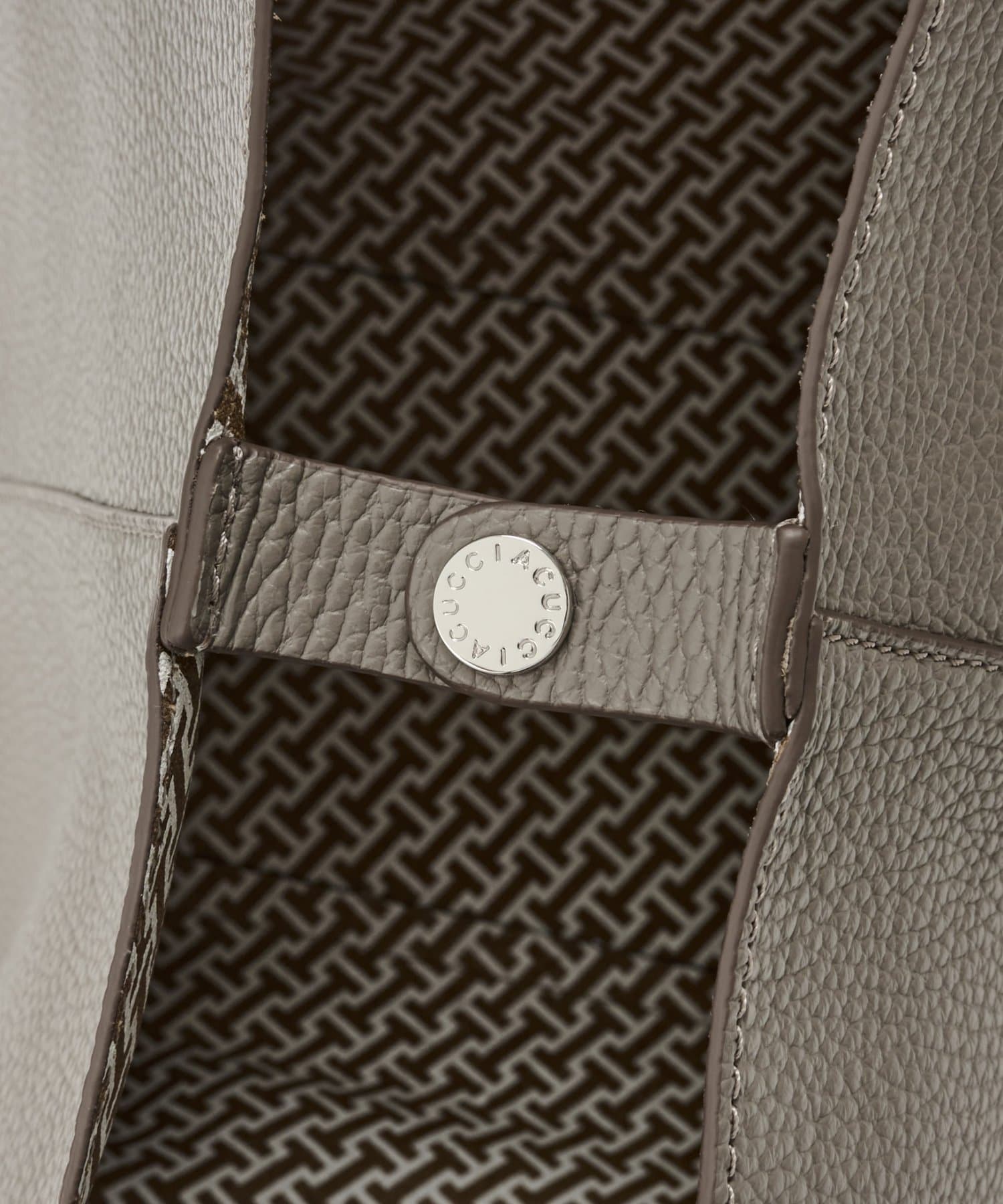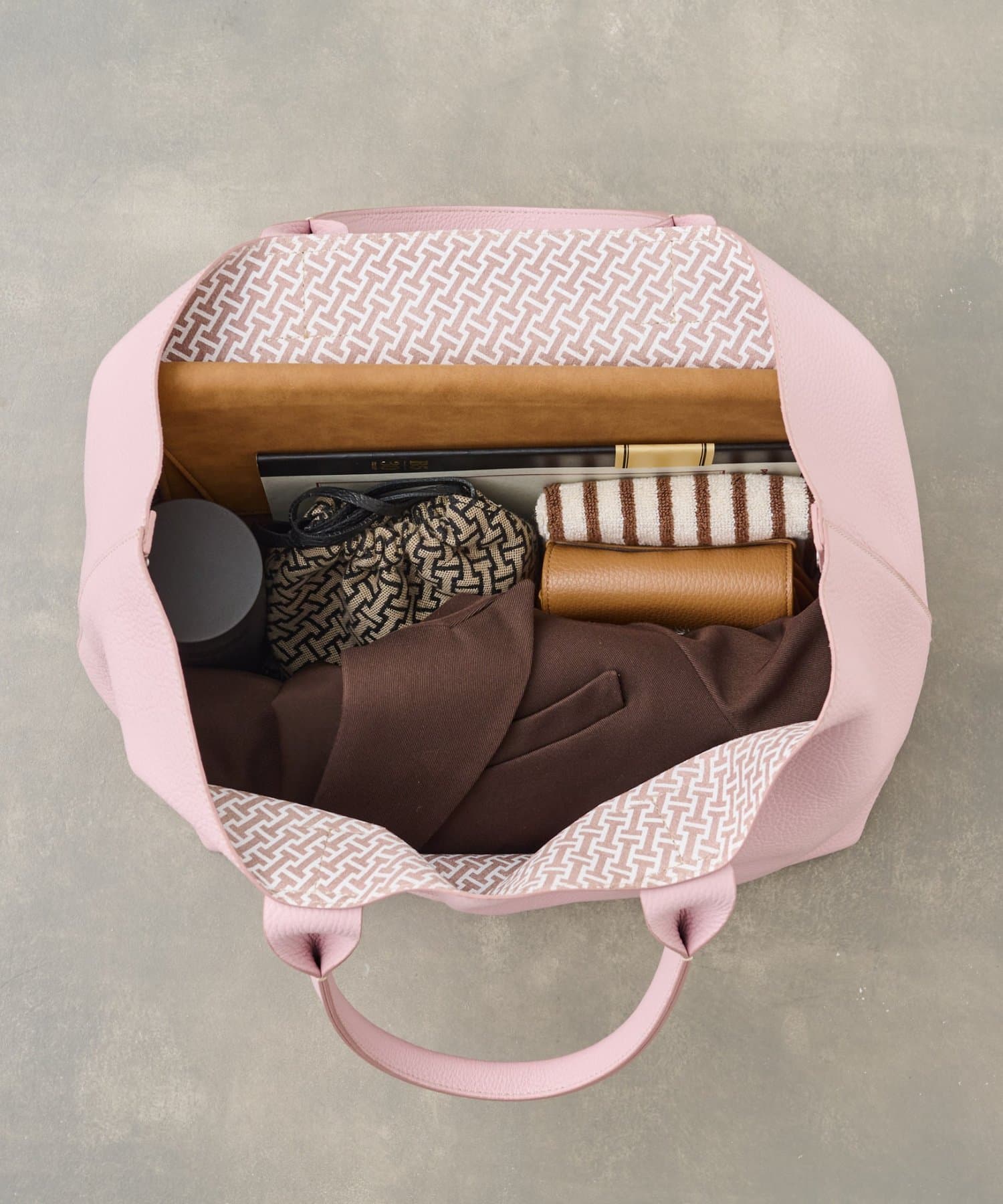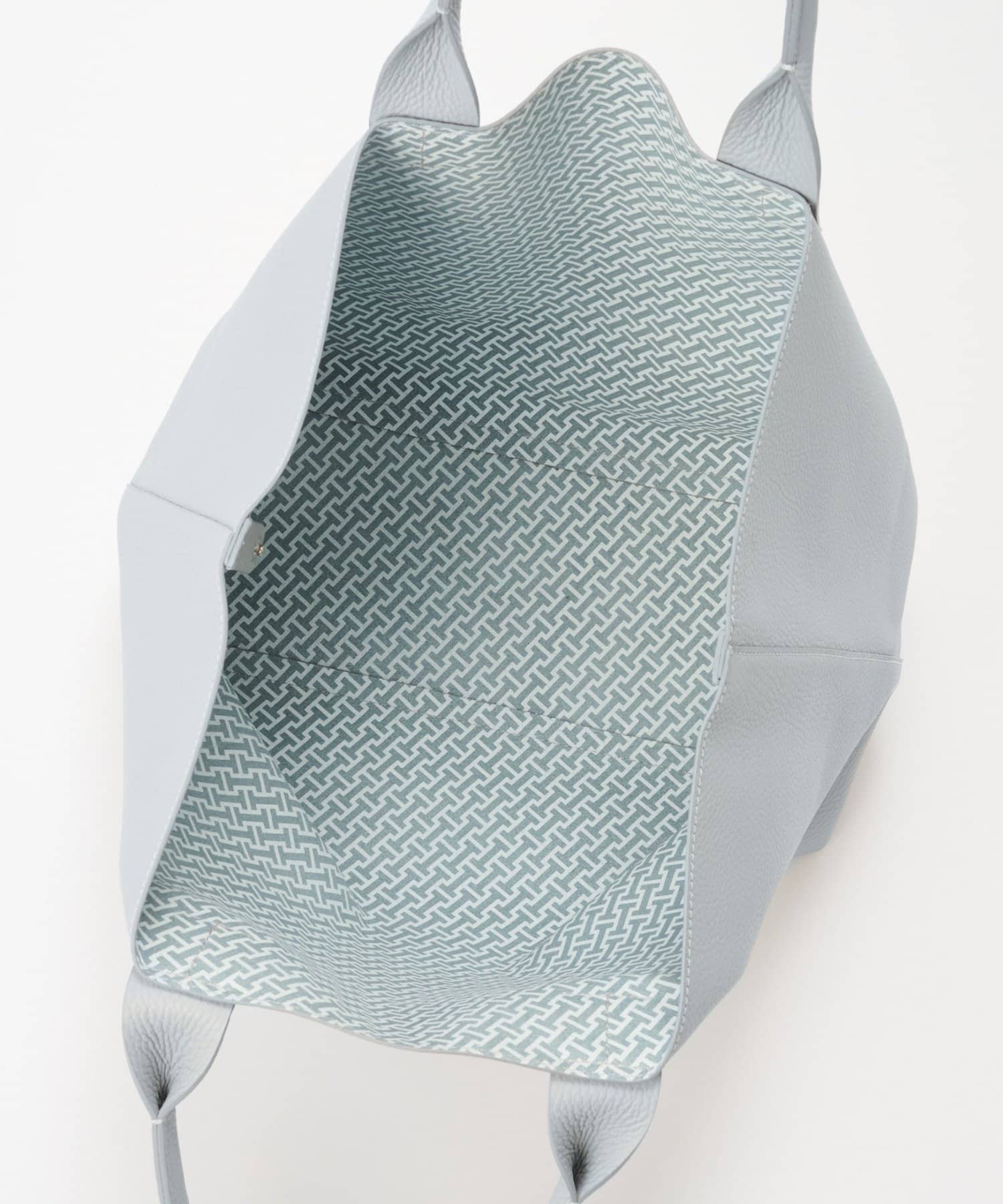 ラフに肩掛けができる長めのハンドルデザインで、大容量の収納が可能なビッグサイズが新登場!女性のわがままを叶えてくれるアイテムに仕上がりました。柔らかなシボレザーを一枚革で仕立てたレザートートで、ビッグサイズながらも大きさを感じずにスタイルに馴染むのも嬉しいポイント。