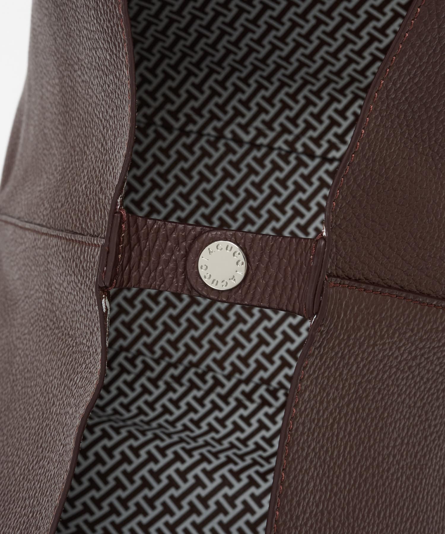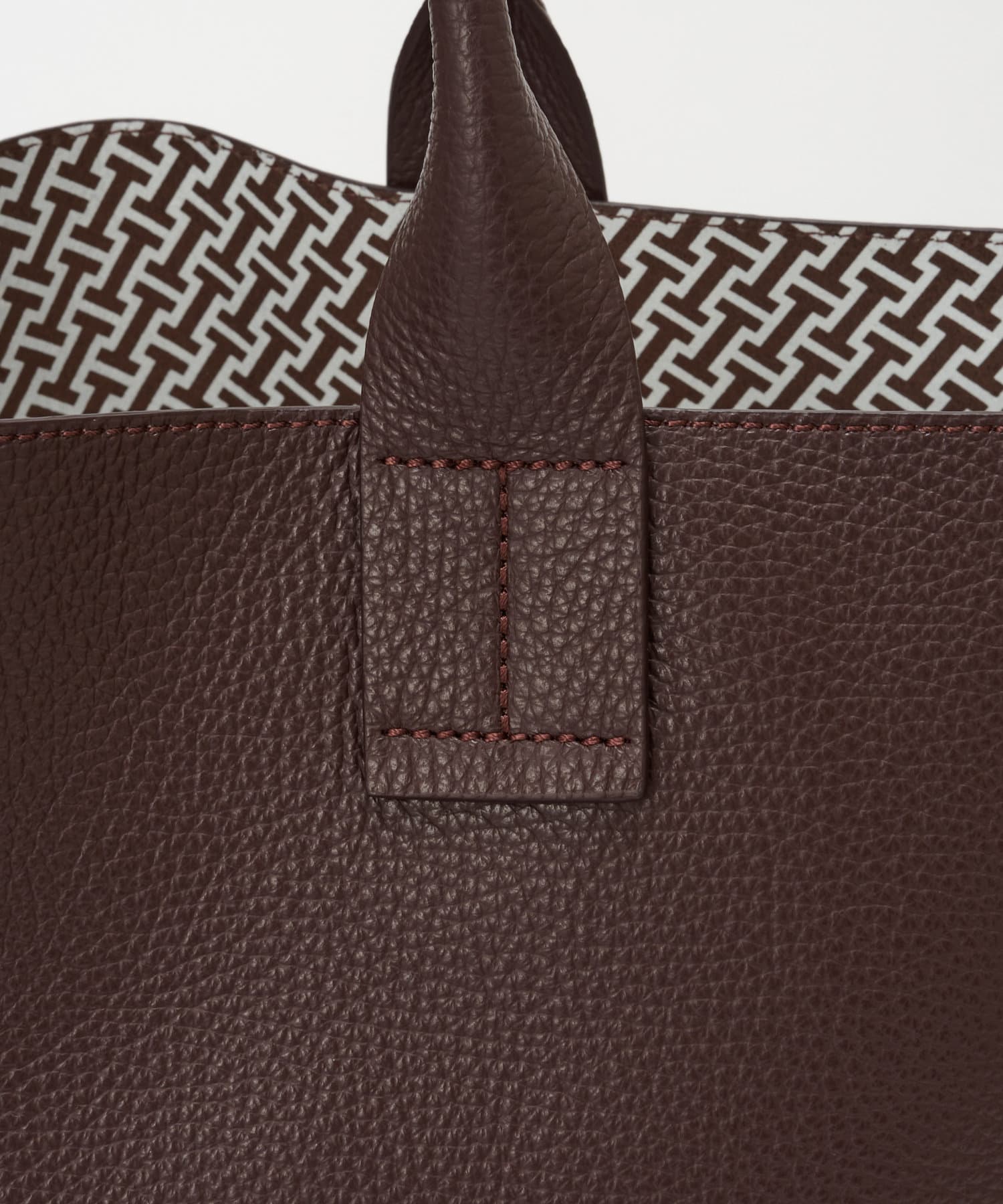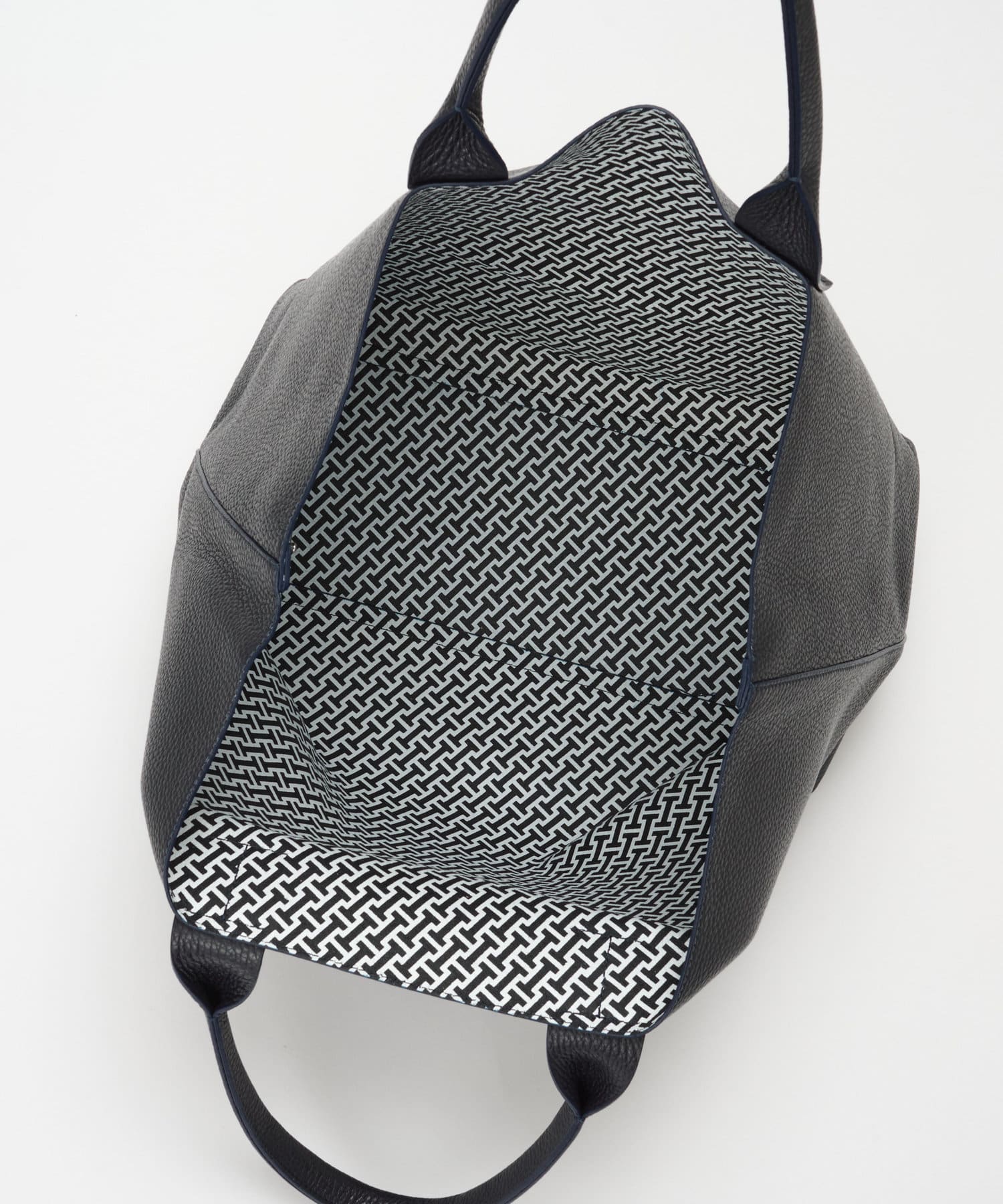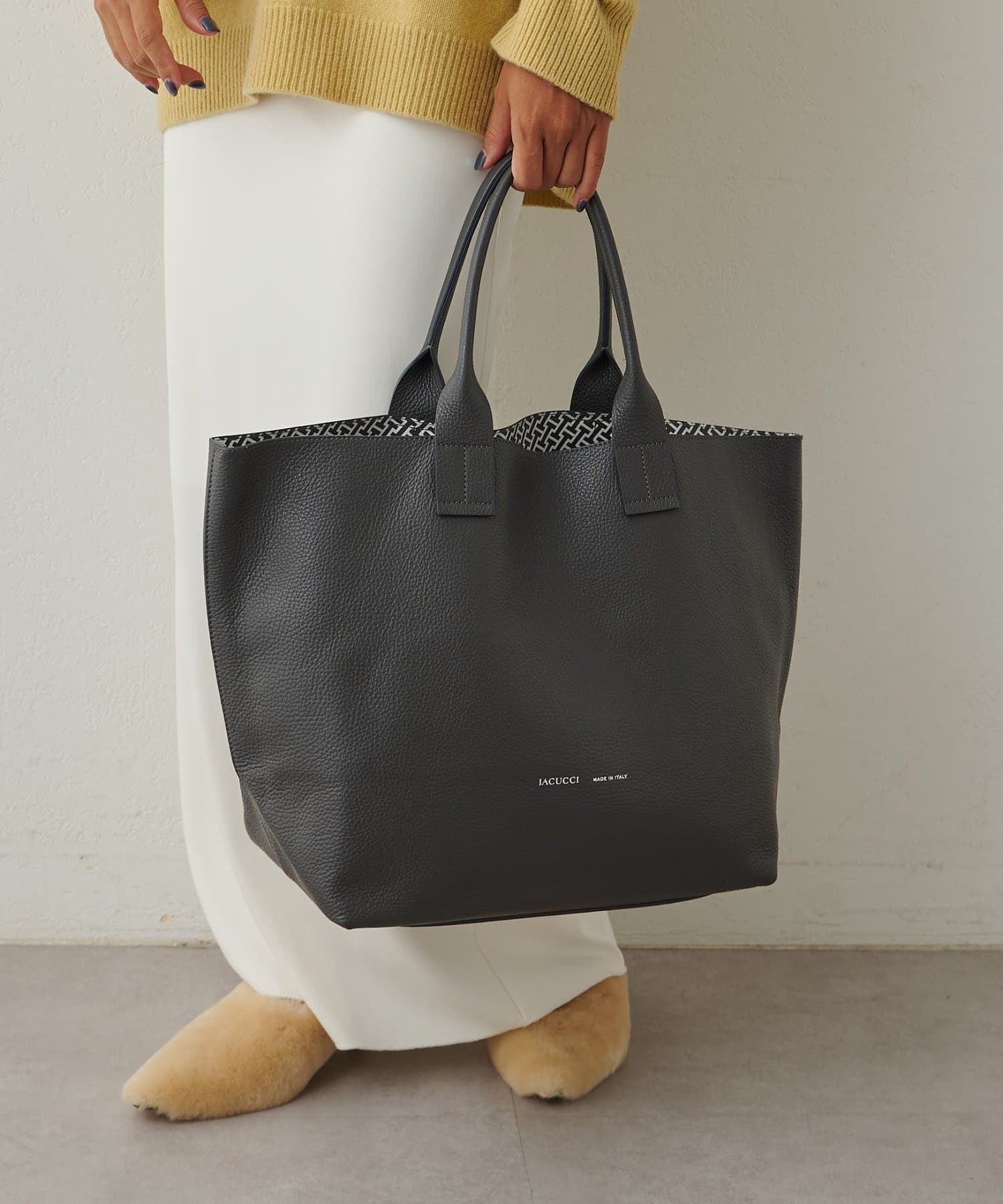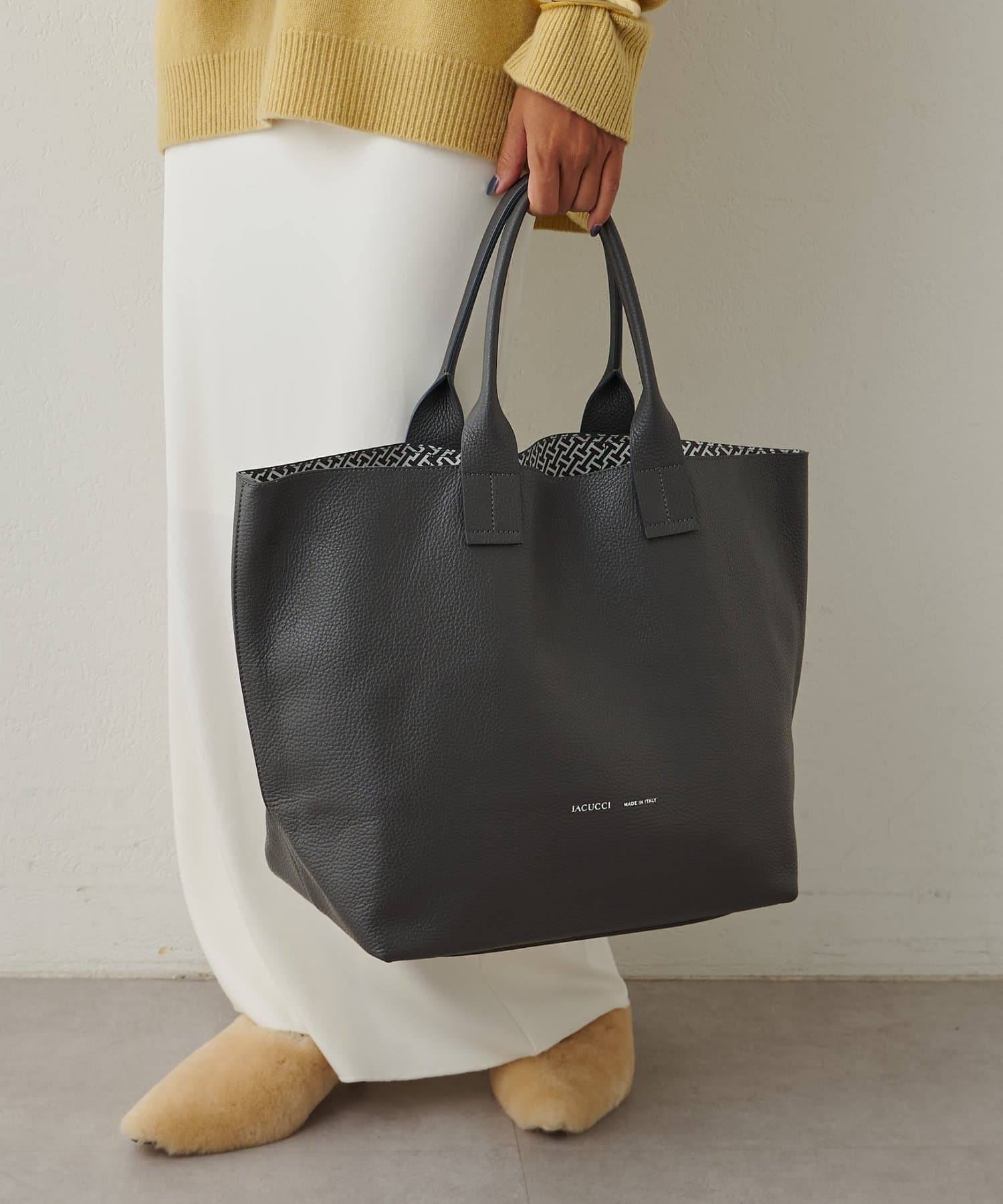 ラフに肩掛けができる長めのハンドルデザインで、大容量の収納が可能なビッグサイズが新登場!女性のわがままを叶えてくれるアイテムに仕上がりました。柔らかなシボレザーを一枚革で仕立てたレザートートで、ビッグサイズながらも大きさを感じずにスタイルに馴染むのも嬉しいポイント。
