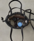 落ち着いたブラウンベースのカウヘアーに、ショルダー・ハンドル・巾着部分にはブラックのシボレザーをセレクト。組み合わせたメタルも最小限することで、洗練されたミニマムなデザインに仕上がりました。スタイリングの邪魔をしない華奢なハンドルと、取り外しが可能なショルダーストラップ付きで、2WAYでお使いいただけます。
