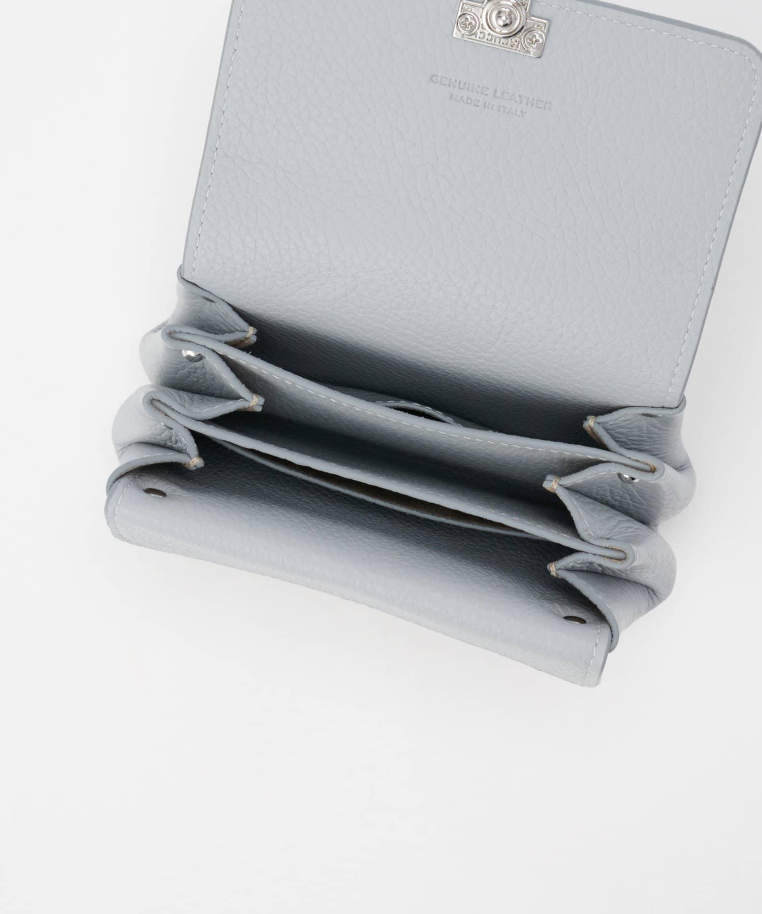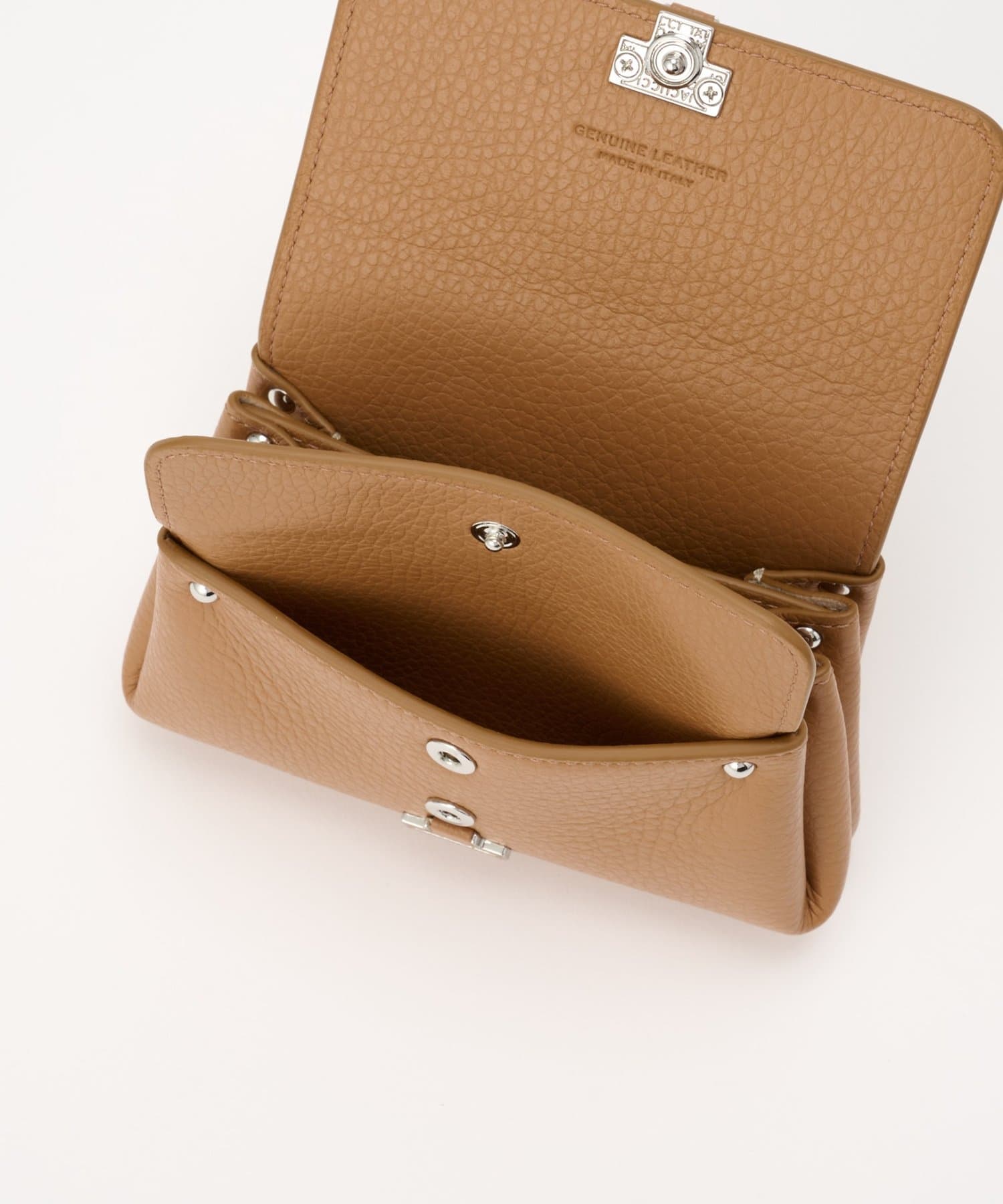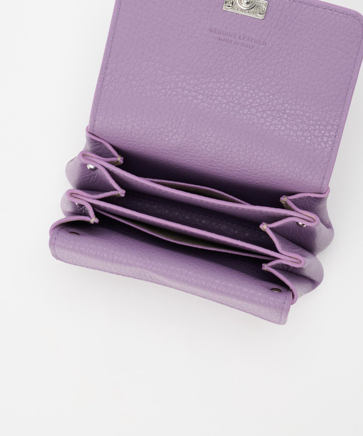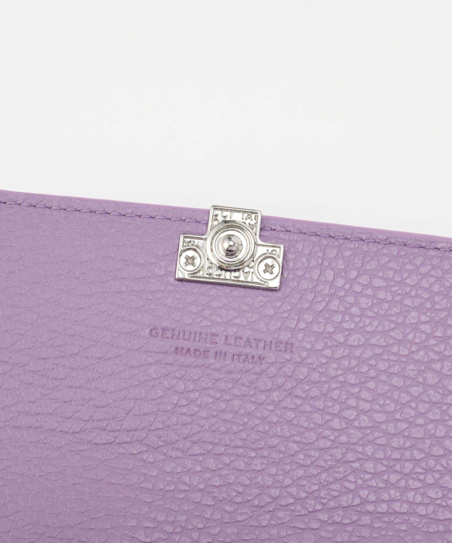 中は3層に分かれていてカードの仕分けがしやすく、開口部は大きく開き中身が見やすいのも人気のポイント。お札は折りたたんで収納でき、コインはボタン付きポケットに。マチが広めのふっくらしたデザインで、リップやアクセサリー、鍵などを入れることもでき使い方はさまざま!幅広いシーンでマルチに活躍してくれるアイテムです。
