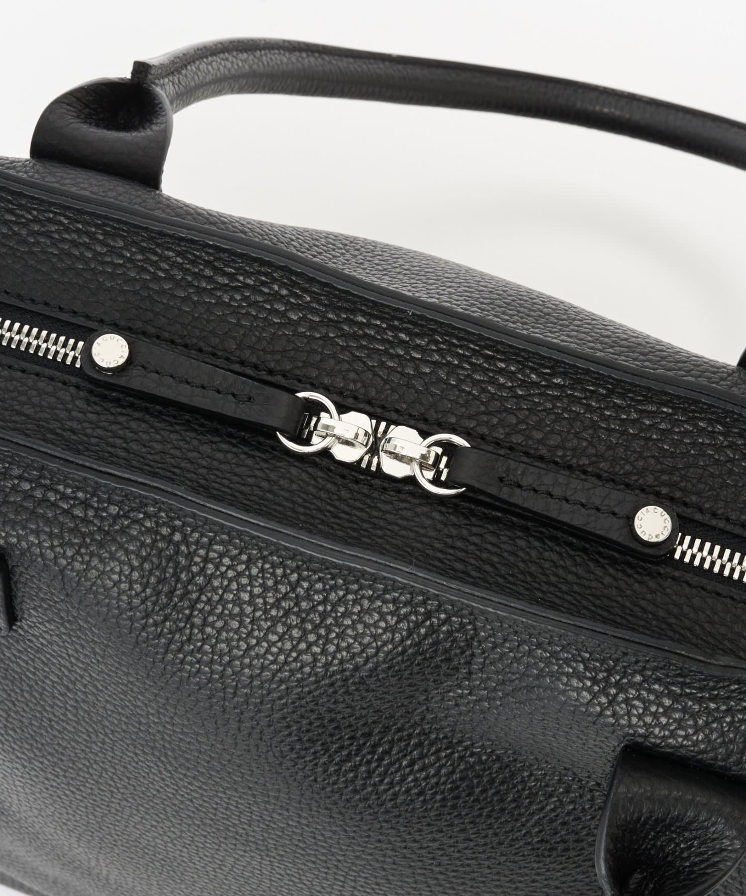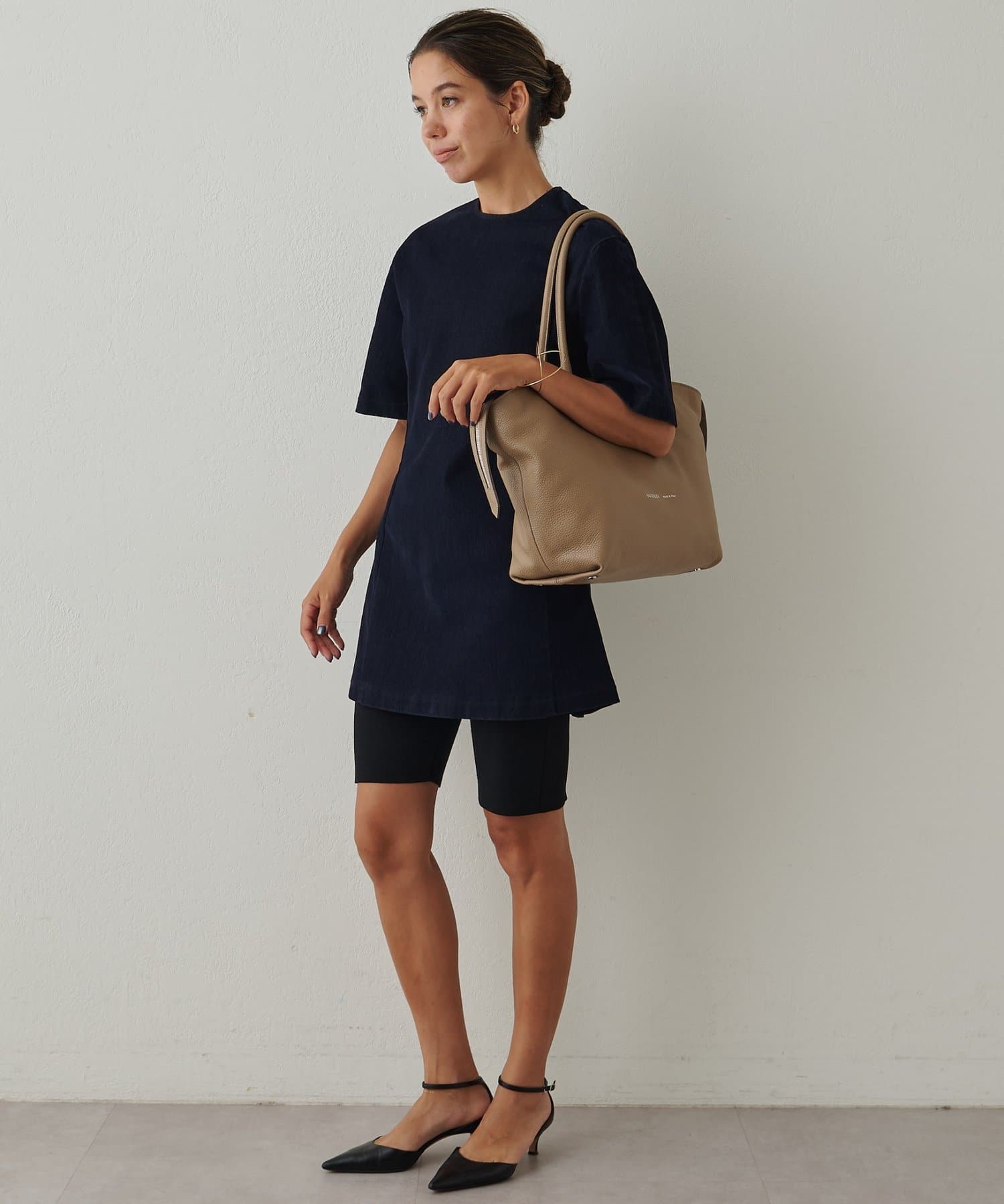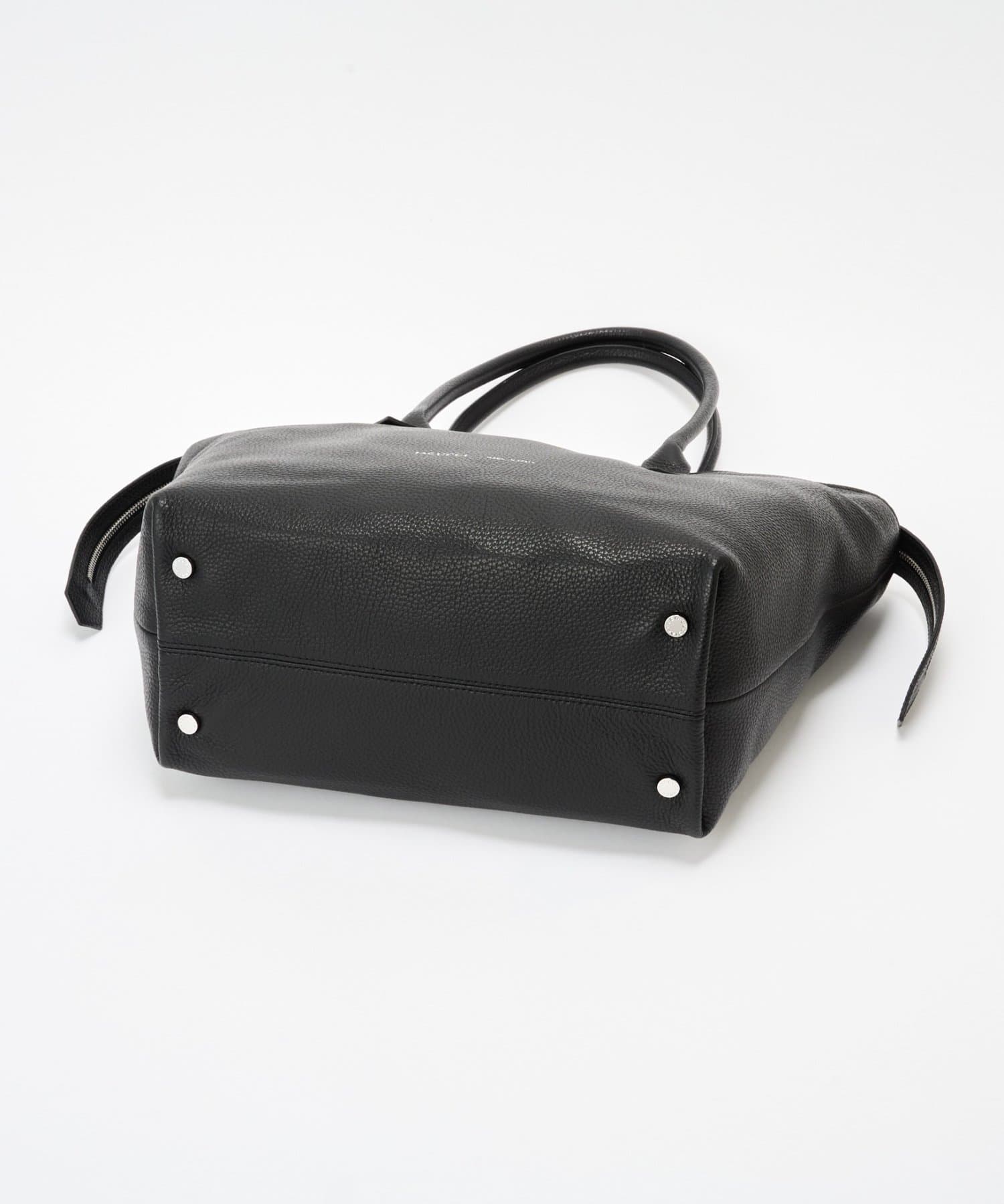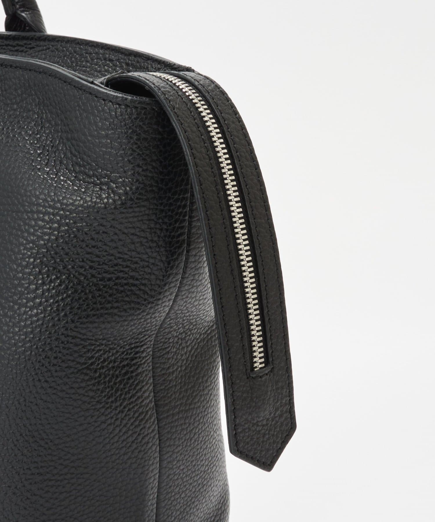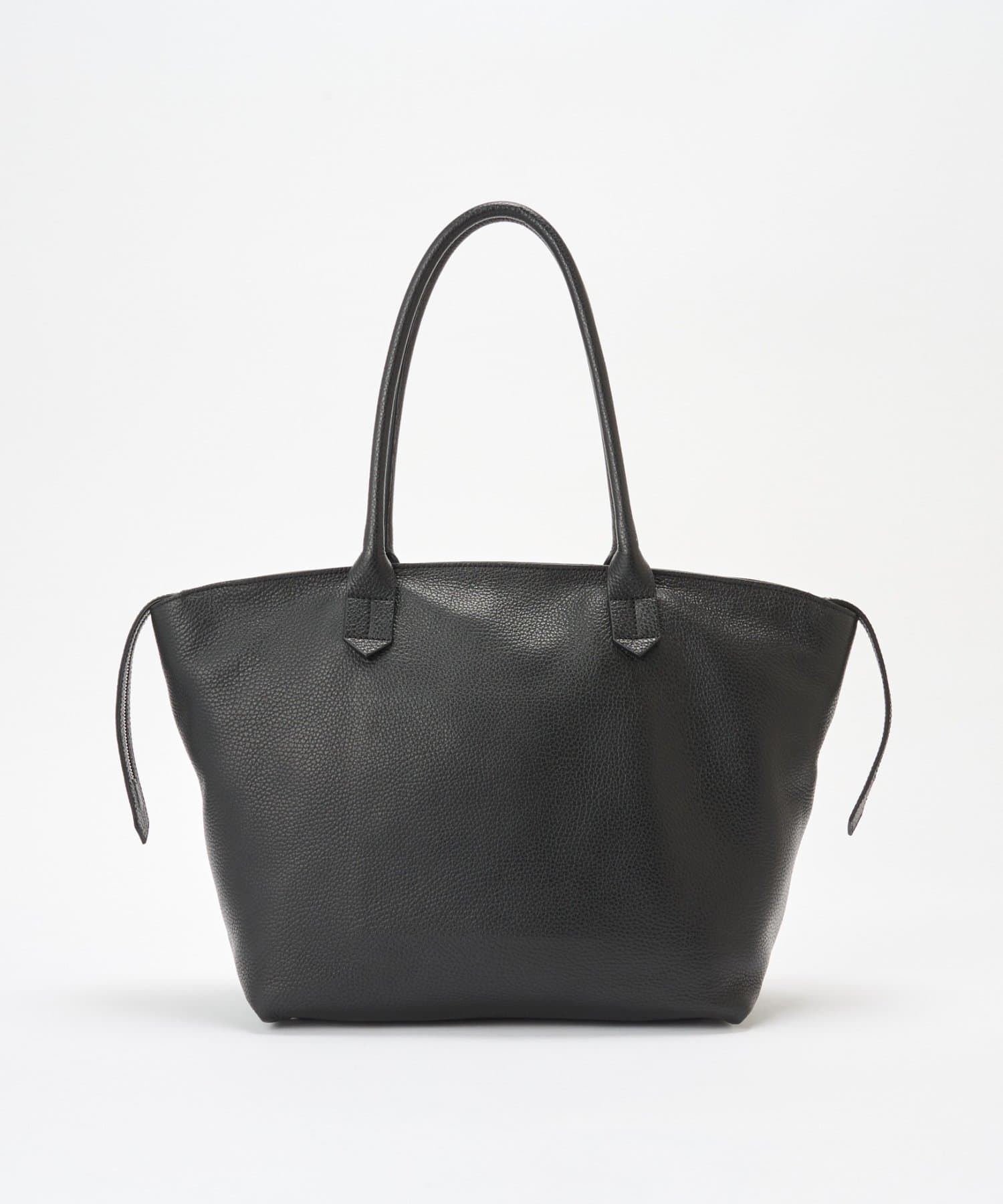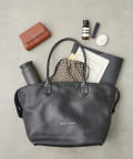 無駄をそぎ落したシンプルなレザートートで、スタイルやシーン問わず活躍すること間違いなしのアイテム。デザインはもちろん、内側にはオープンポケットとファスナー付きポケットを配置し、外での利用にも安心な底鋲付きと機能性も〇。開口部はファスナータイプで、テープを少し長めのデザインに仕上げたことで、ガバッと開きお荷物の出し入れもしやすい仕様に。
