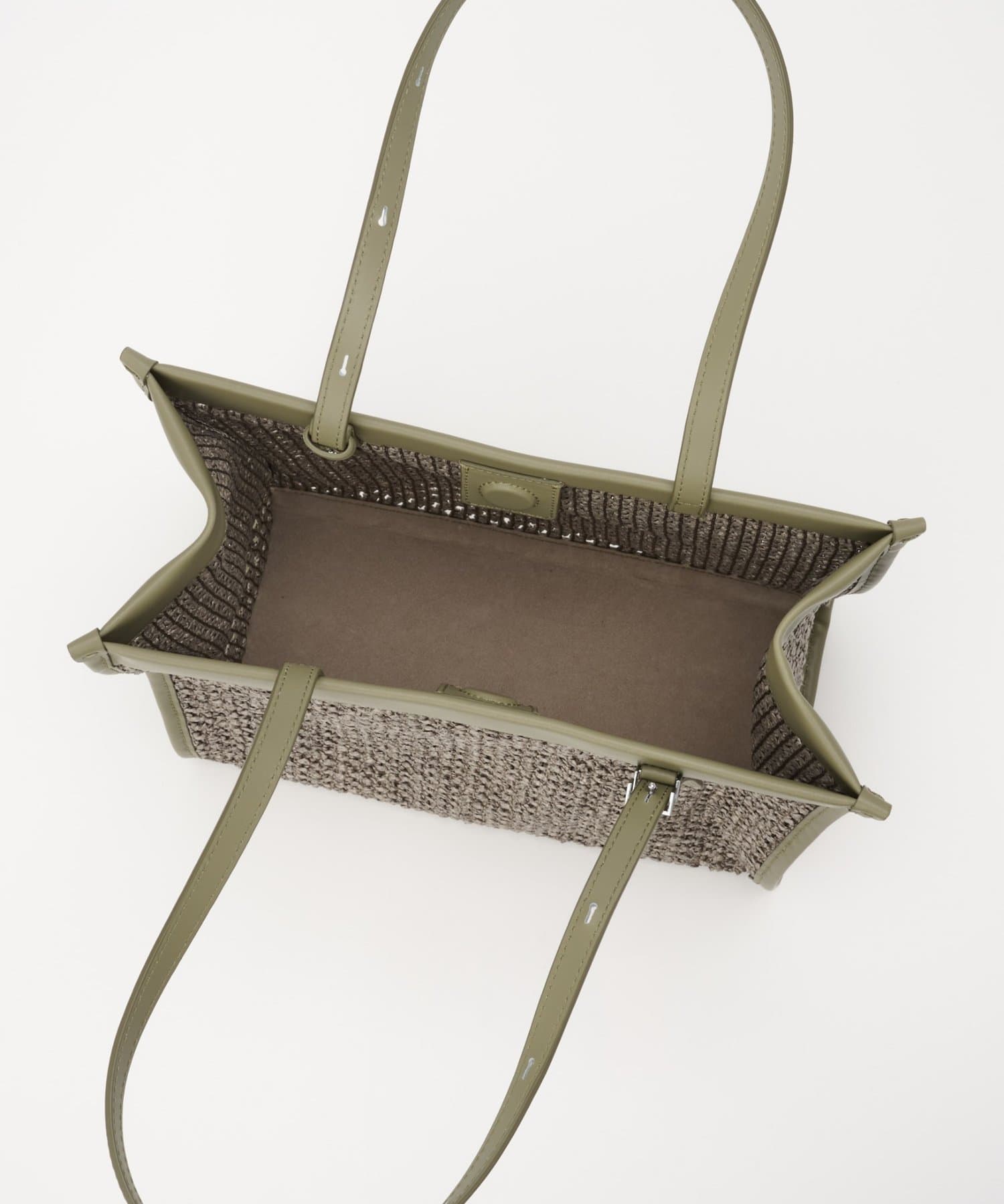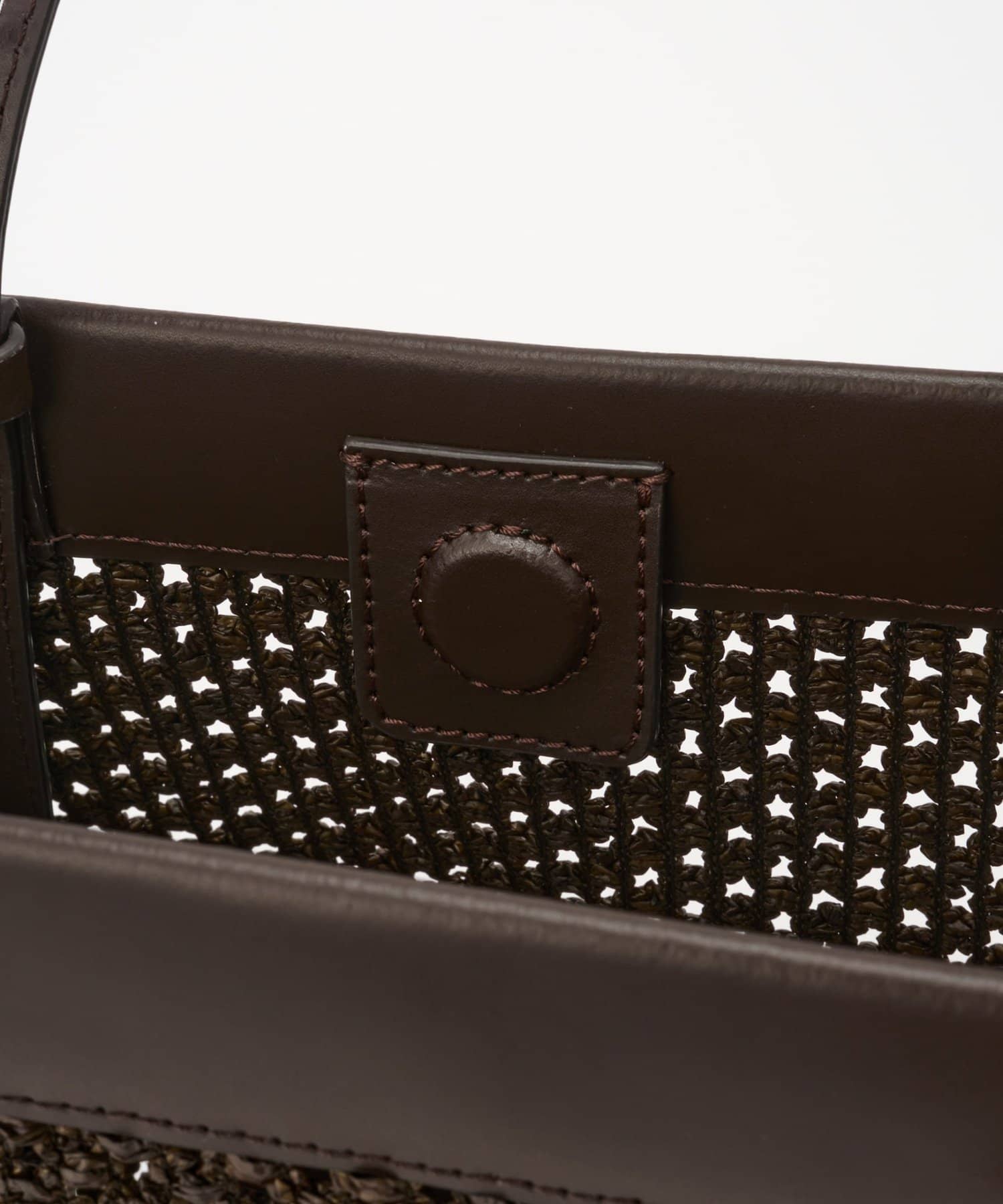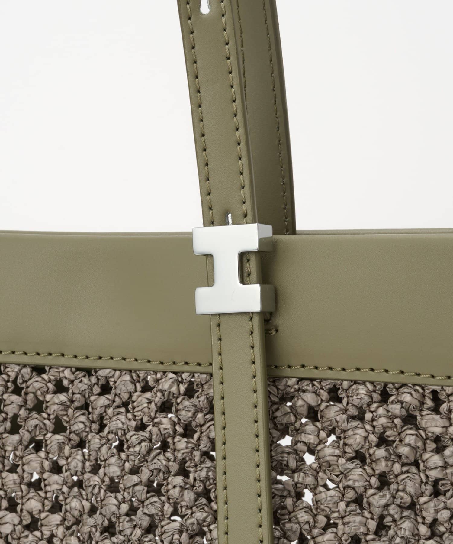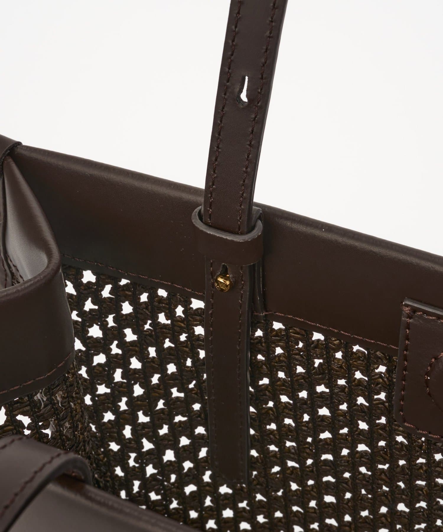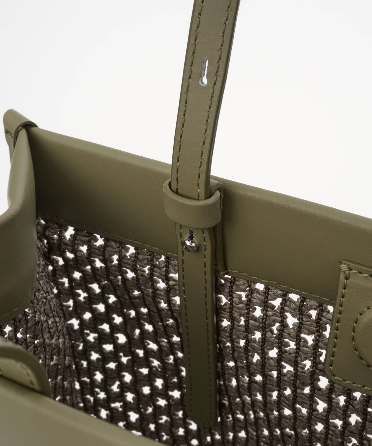 立体的に編まれたストロー調素材に、艶感のあるスムースレザーを合わせることで、大人の女性にぴったりなミニマルなカゴバッグに仕上がりました。日常使いしやすいよう、ハンドルや底、サイドはスムースレザーをセレクトするなど、シンプルなデザインの中にも細やかな配慮の詰まった逸品です。