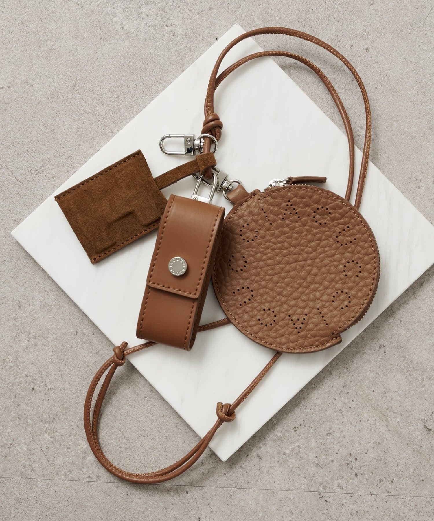「ショルダーストラップ・キーケース・リップケース・ポーチ」にそれぞれ異なるレザーをセレクトとすることで、同じカラーでもトーンが絶妙に違うのもポイント!イアクッチの代表する4種類のレザーを楽しめる特別感たっぷりのアイテムに仕上がりました。