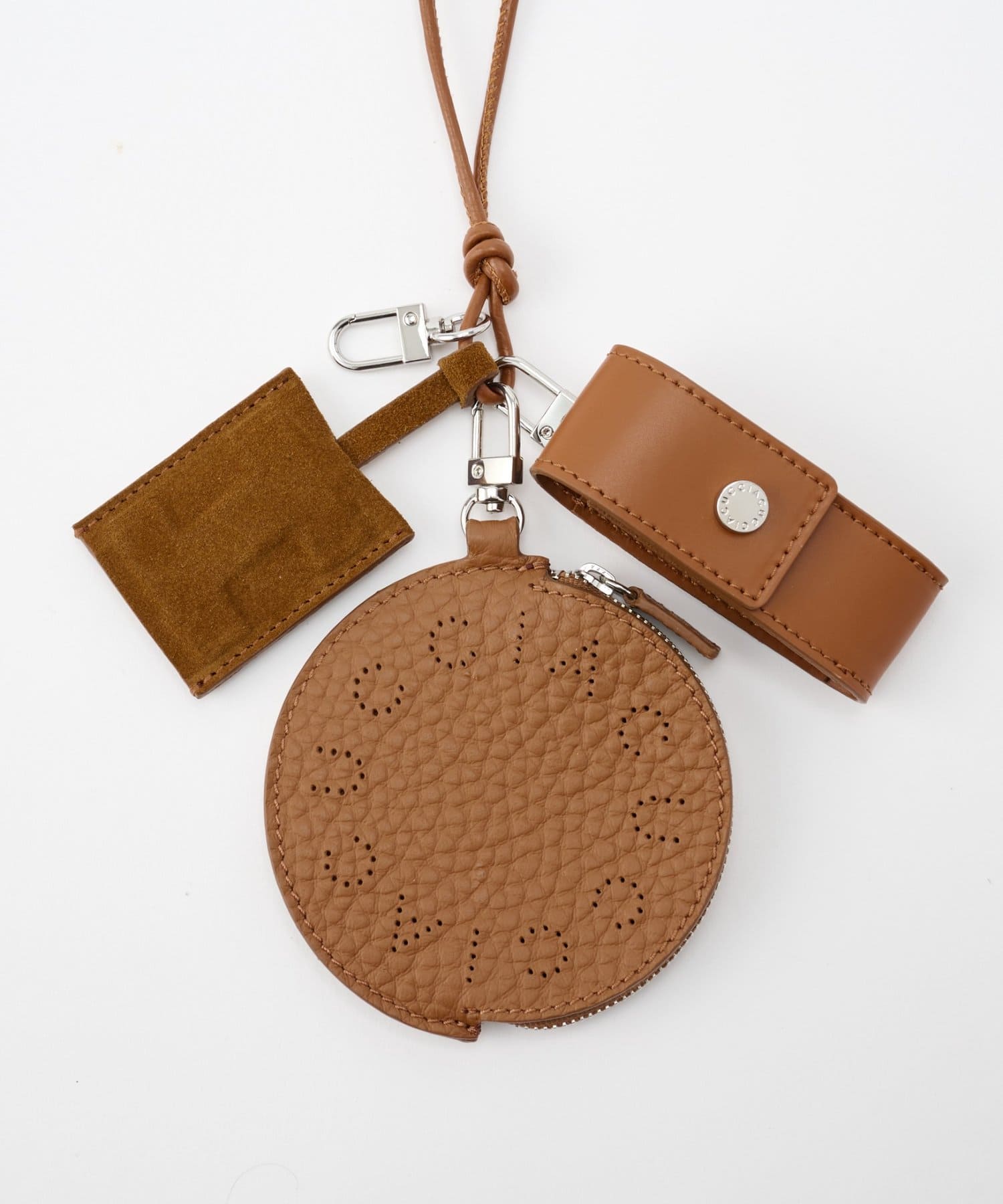 1箇所あいている金具部分にはスマートフォンをつけることも可能!また、キーケース以外は取り外しができ、その日の気分やシーンに合わせてのセレクトや、お手持ちのバッグに付け替えてチャームとして使うのもおすすめです。