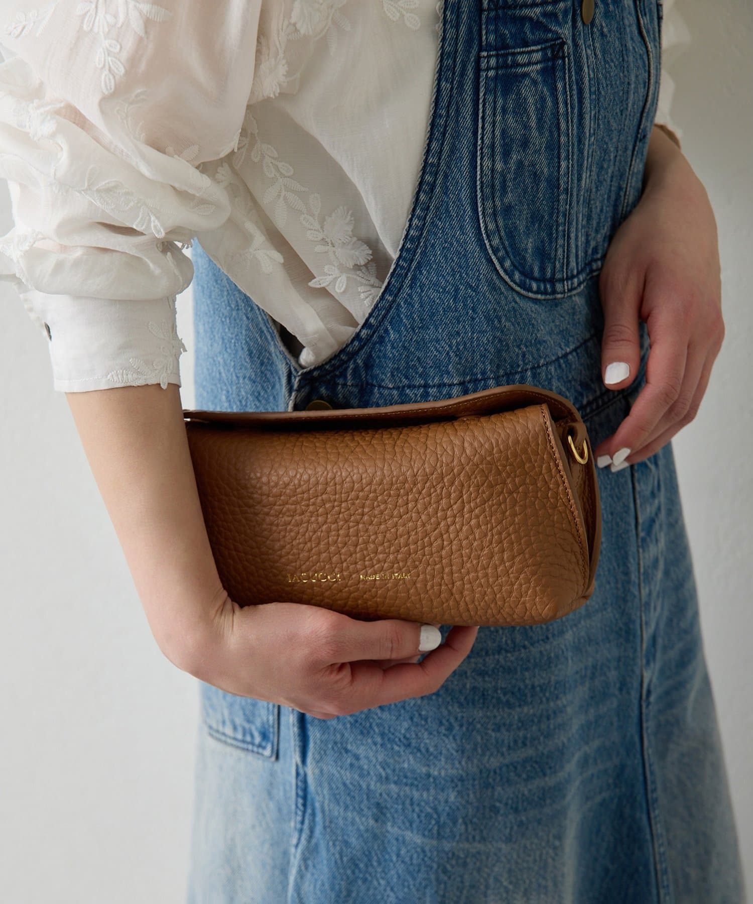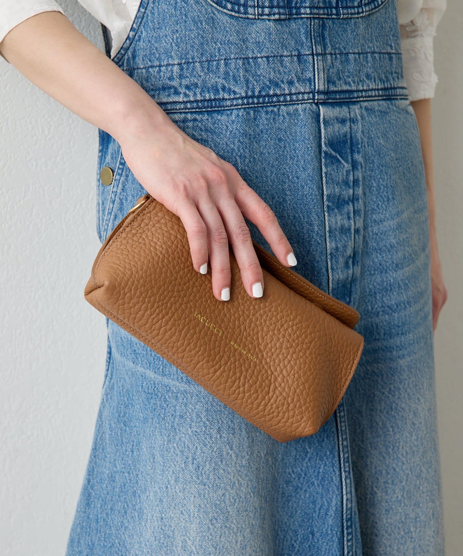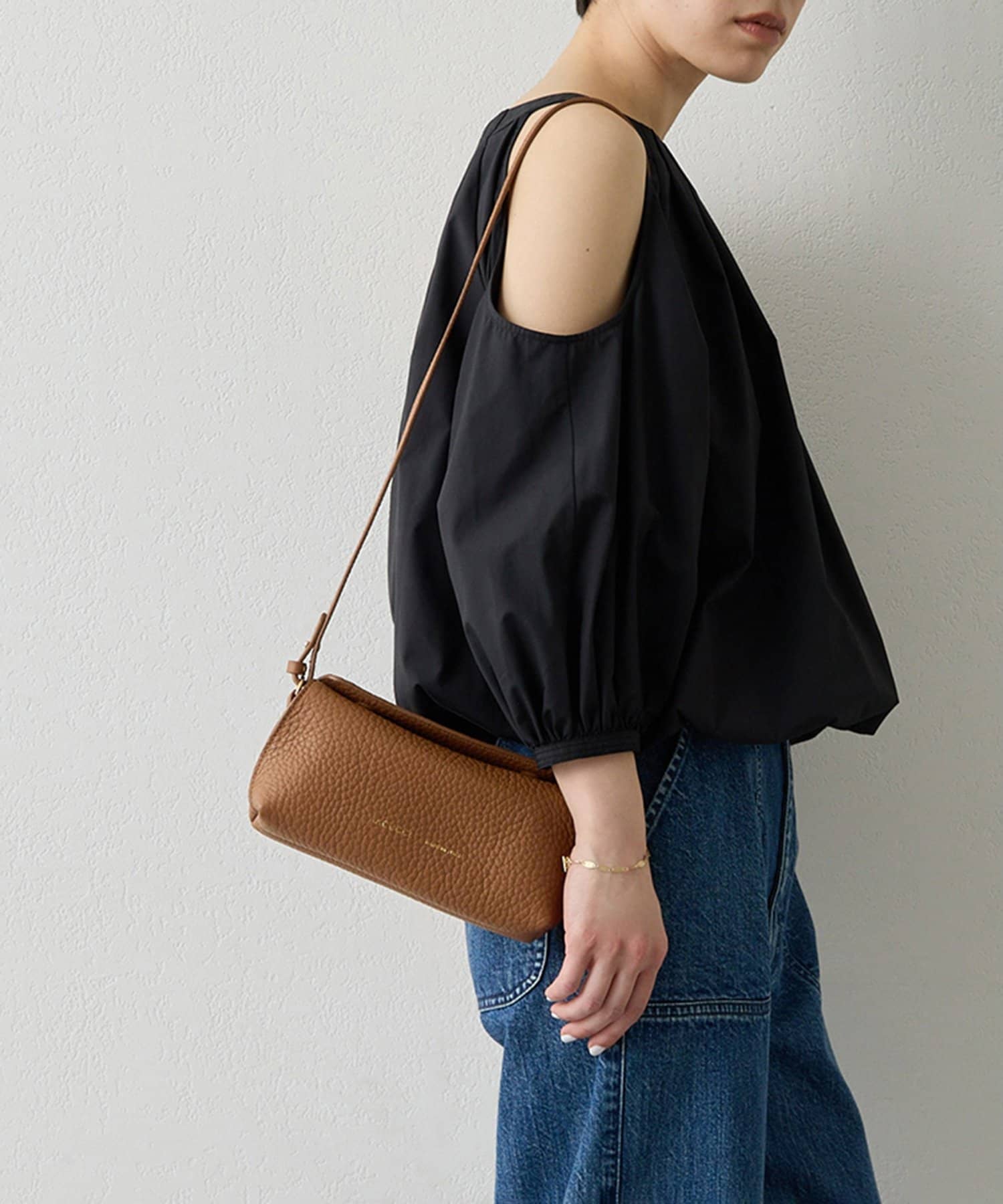 コンパクトながらもマチ幅もあり、ミニウォレットやリップ、ワイヤレスイヤホン等が収まるサイズ感。ワンマイルバッグとしてはもちろん大きめバッグと2つ持ちも〇。あえてお荷物を少なめにくたっと持つことで、こなれた雰囲気に。大人の余裕がプラスされたワンランク上のスタイリングを楽しめます。