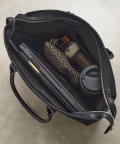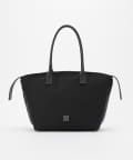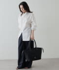 デザインのみならず、内側にはオープンポケットとファスナーポケットを配置し使い勝手も〇。開口部はファスナータイプで、テープを少し長めのデザインに仕上げたことで、ガバッと開きお荷物の出し入れもしやすい仕様に。PCやA4サイズの書類も楽々収納ができるサイズで、通勤バッグとしてもおすすめ!肩掛けが叶う、長めのハンドルデザインも嬉しいポイントです。
