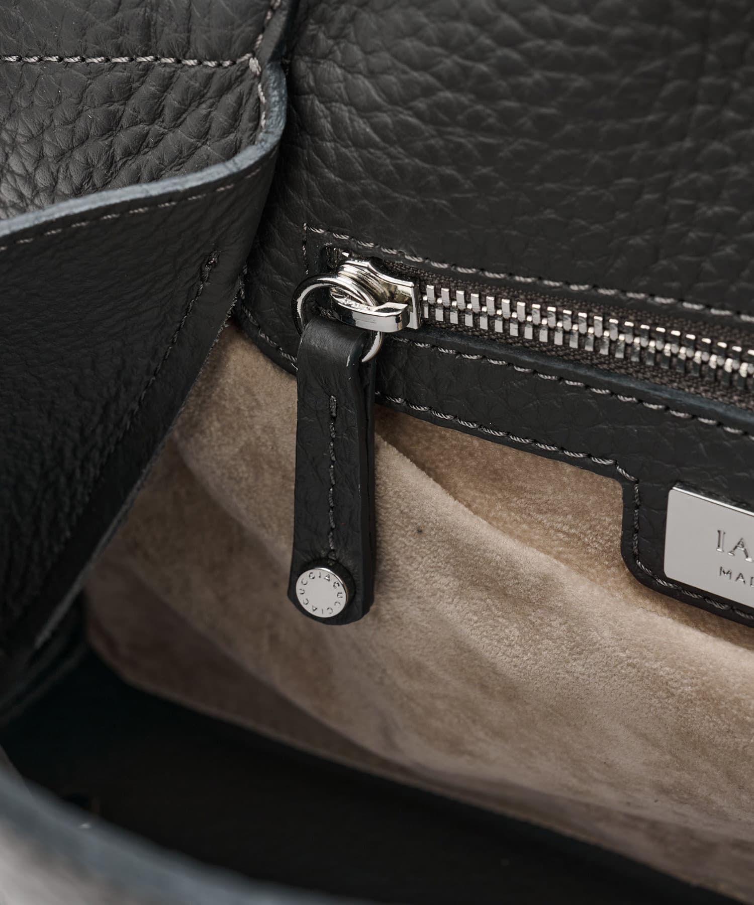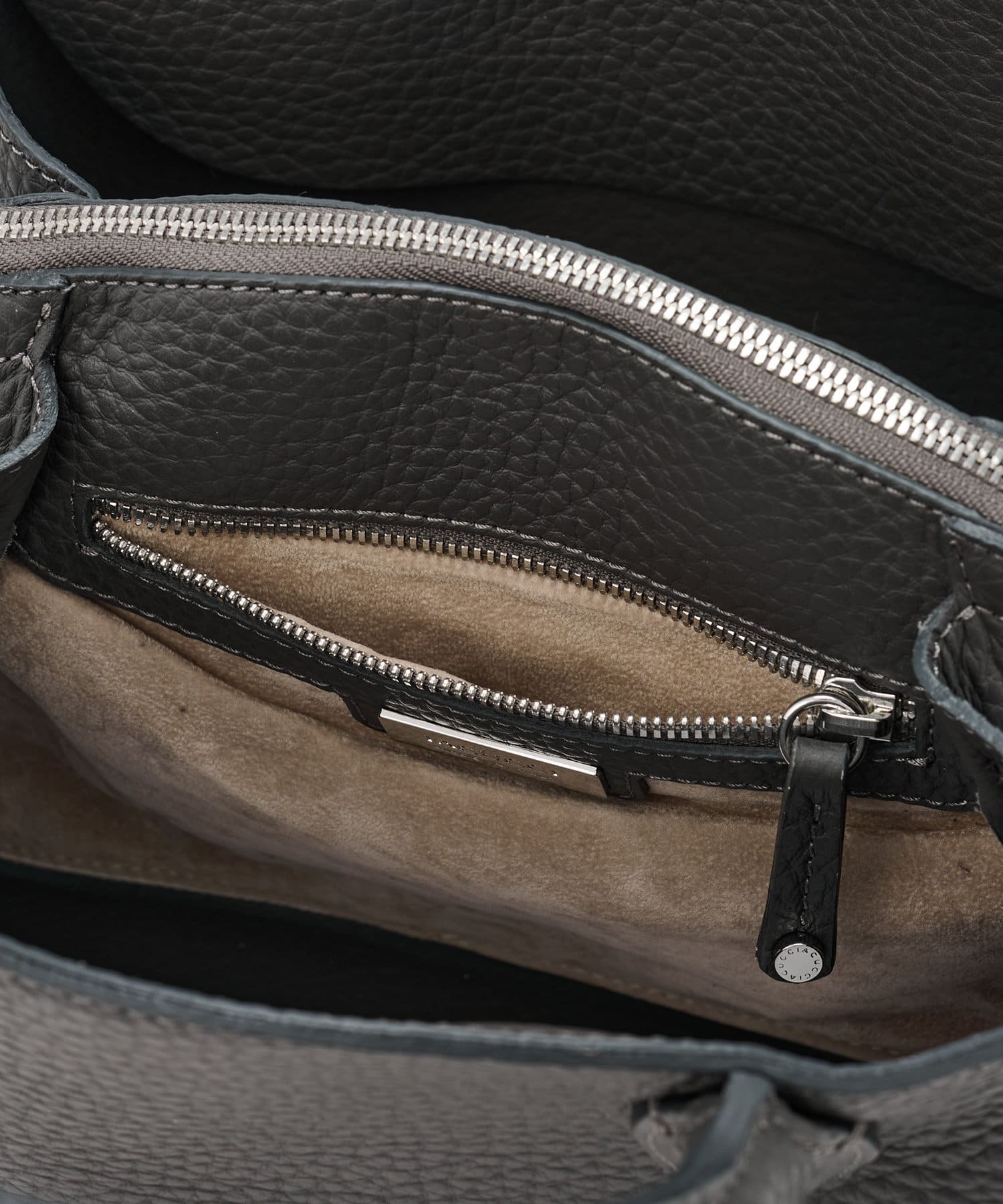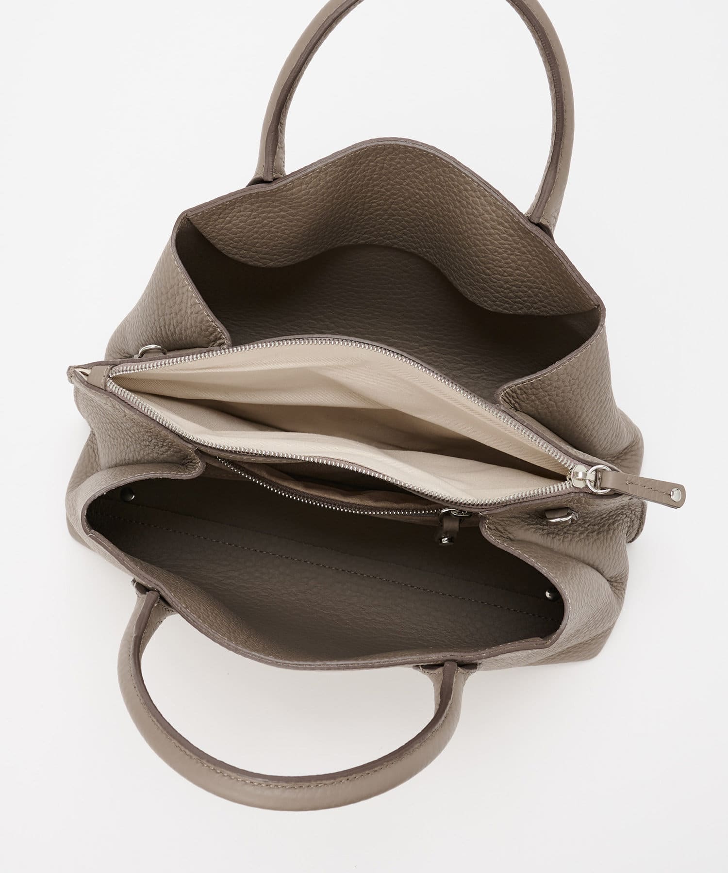バッグの中は3層に分かれていて整理整頓しやすいデザイン。ファスナー付きのポケットには長財布も収納可能なので貴重品も安心してお持ちいただけます。