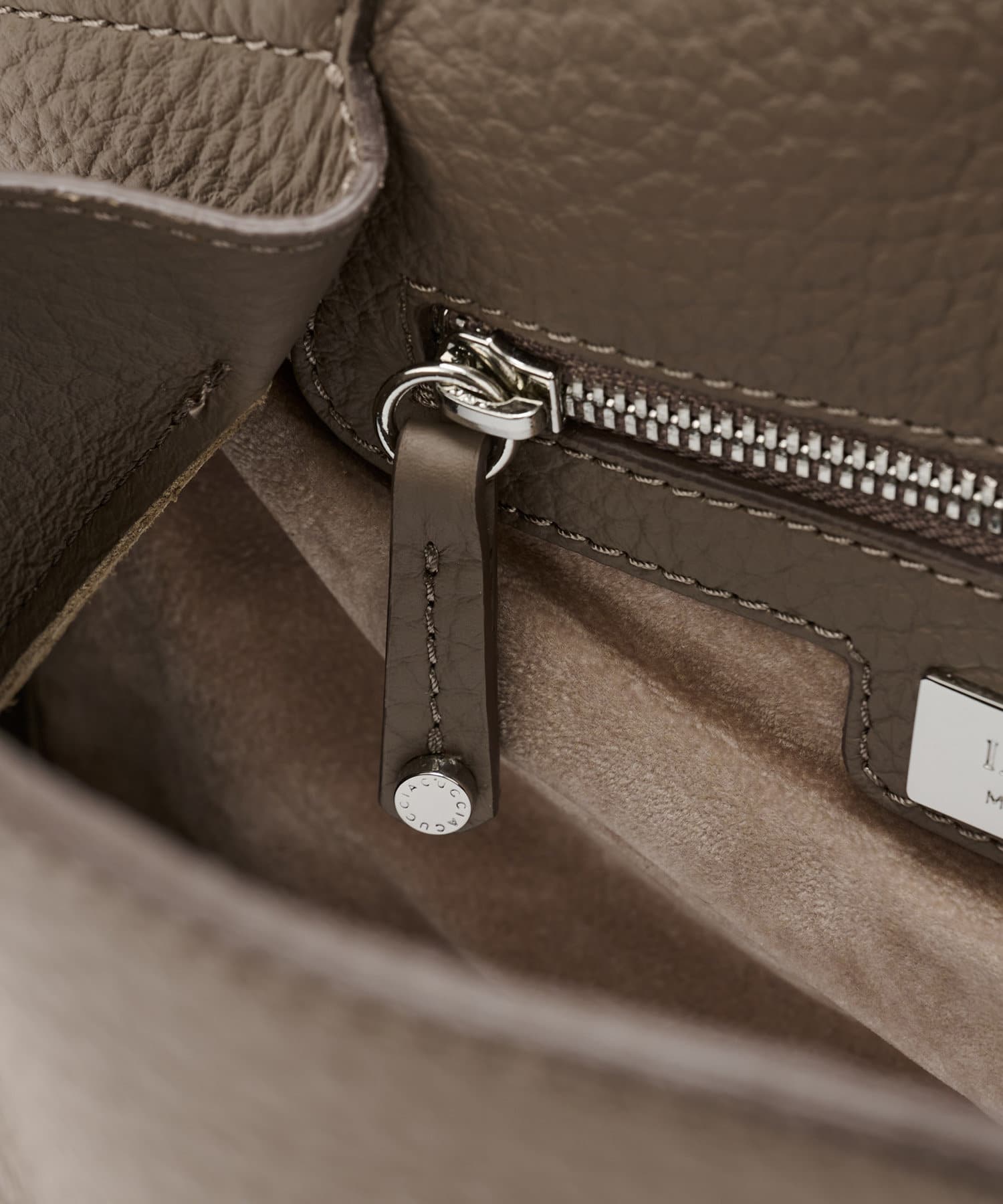 また、ショルダーベルト付きの2WAY仕様なので気分に合わせてスタイリングに変化をつけられるのもポイント!"I"のロゴメタルがアクセントになるように、ベルトを付けたままトートバッグとしてお持ちいただくのもおすすめです。