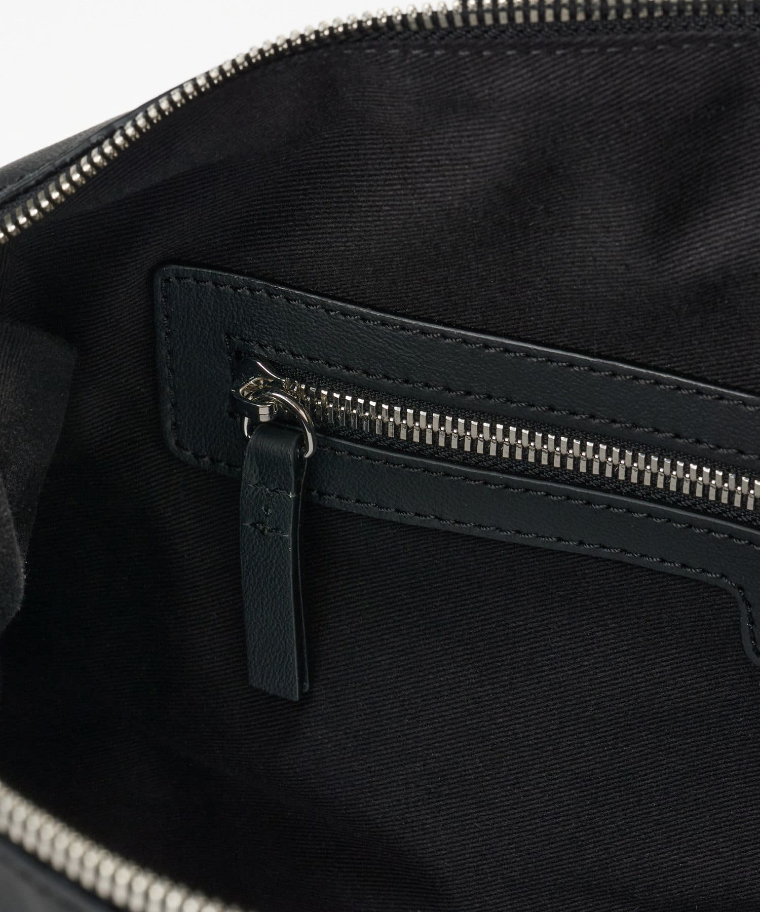バッグの背面に箔押しで施したブランドロゴや、ショルダーベルト、引手にもステッチで「I」を散りばめ、シンプルなデザインの中にも遊び心あるアイテムに仕上げました。一カ所のみステッチデザインが引き立つよう、明るいステッチカラーをセレクトしているのもポイント!