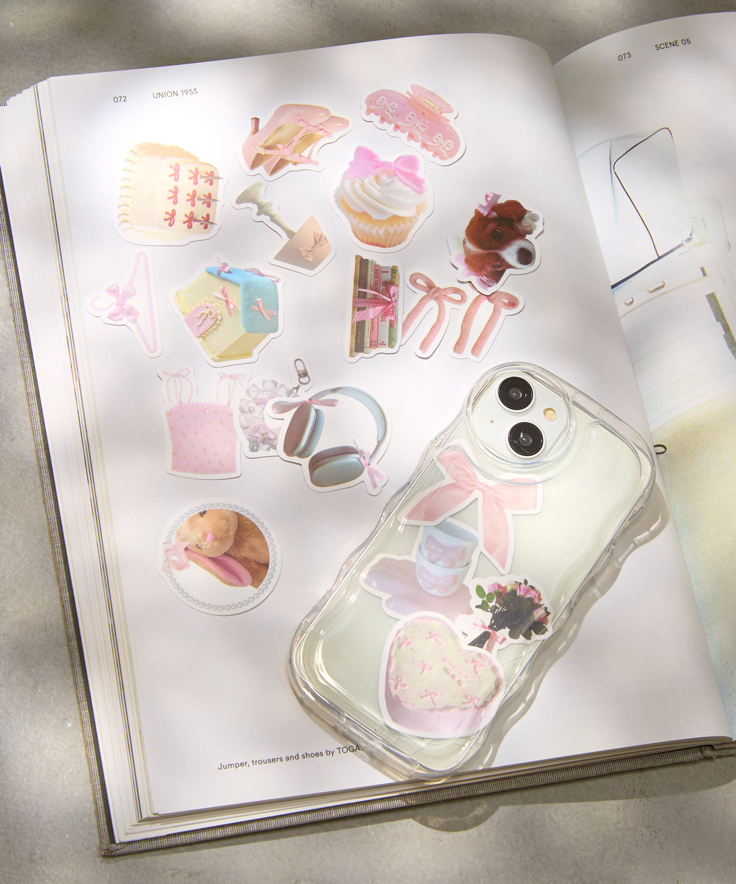 ステッカーを挟みたくて透明のスマホケースを探してたところ見つけたので買いました!レンズのところがまるくてかわいい☁️一緒に買ったリボンのステッカーとも相性抜群でお気に入りです🎀
