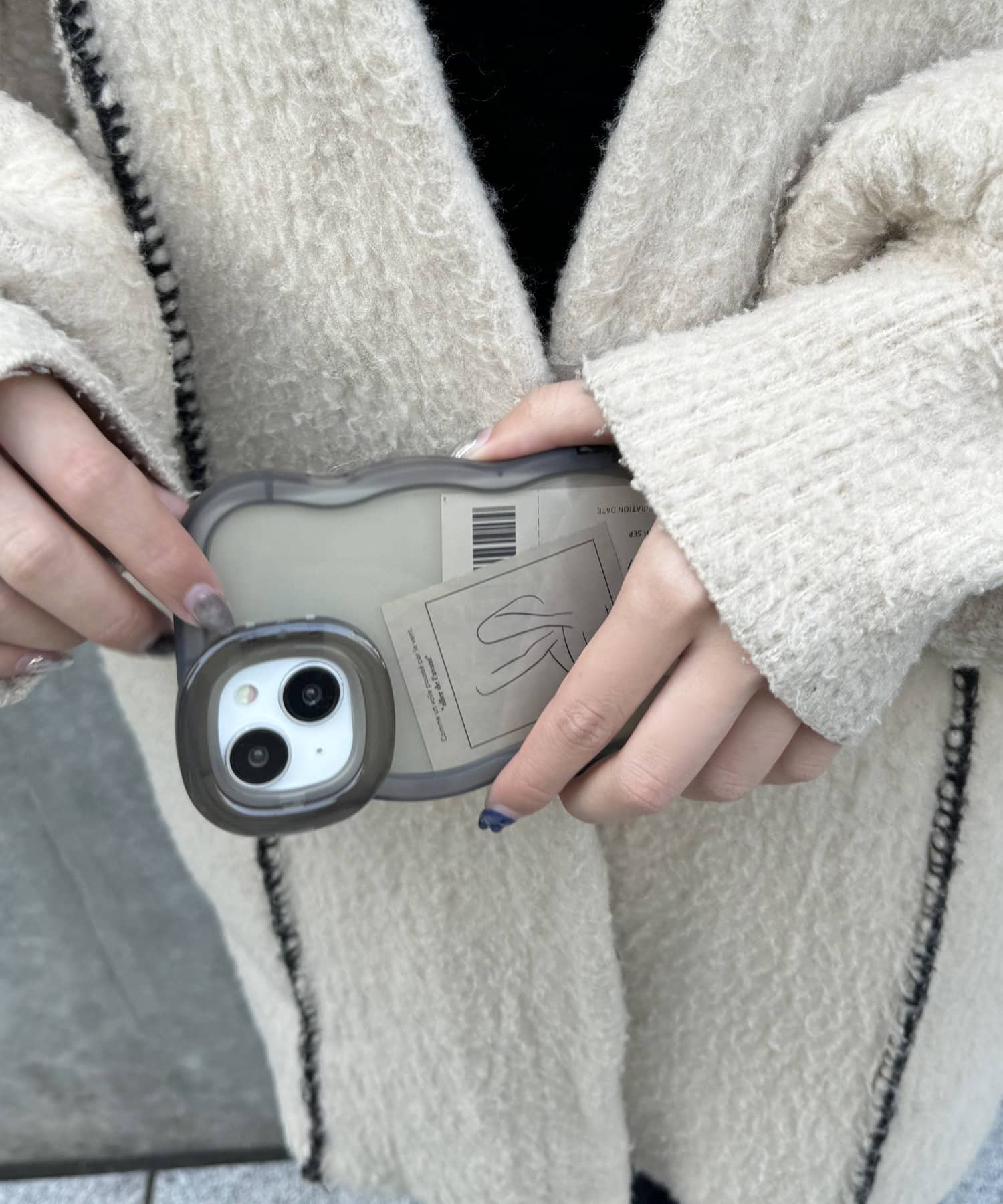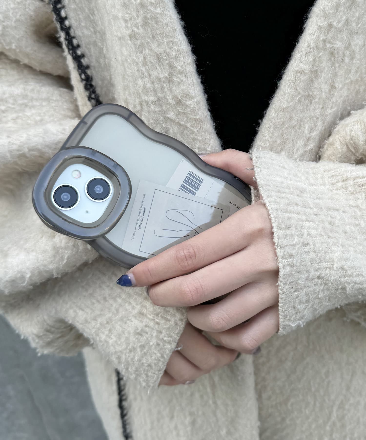 立てられるウェーブスマホケース(iPhone13/14)