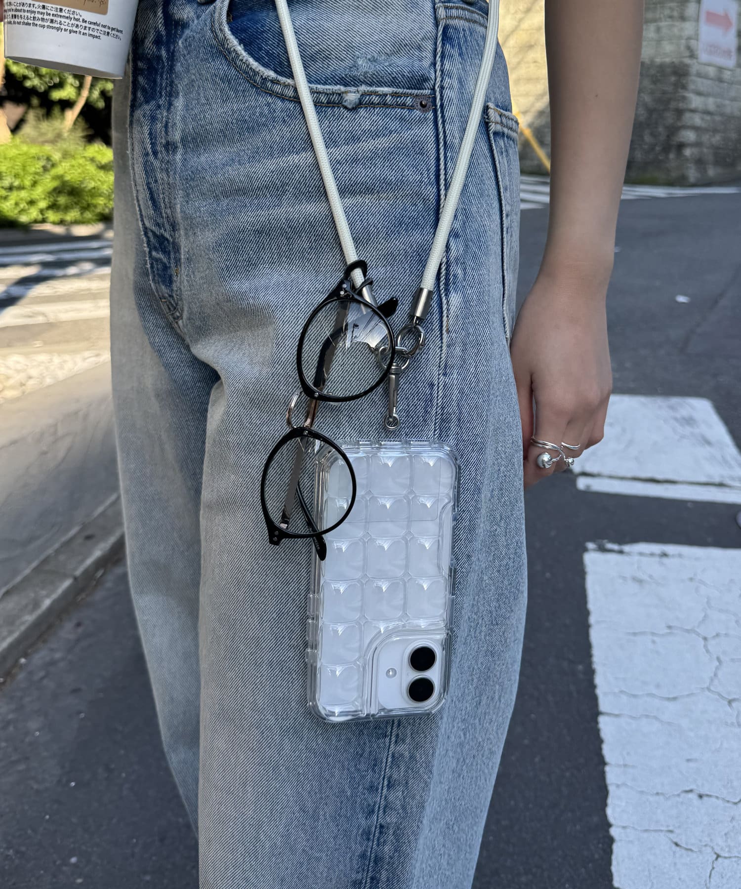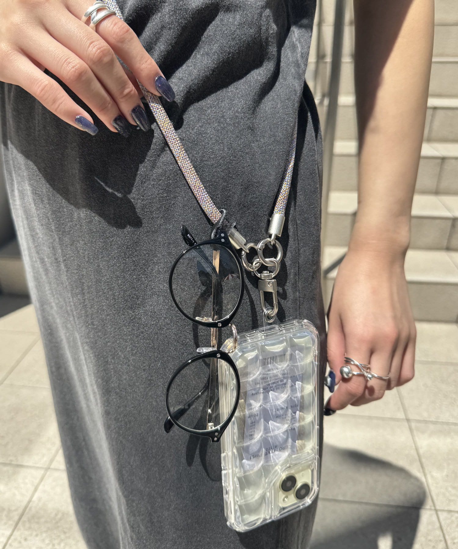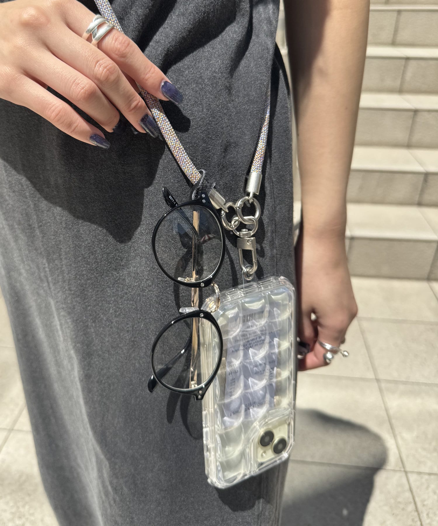 スマホだけでなく、ポーチやめがねなどを付けても便利♪