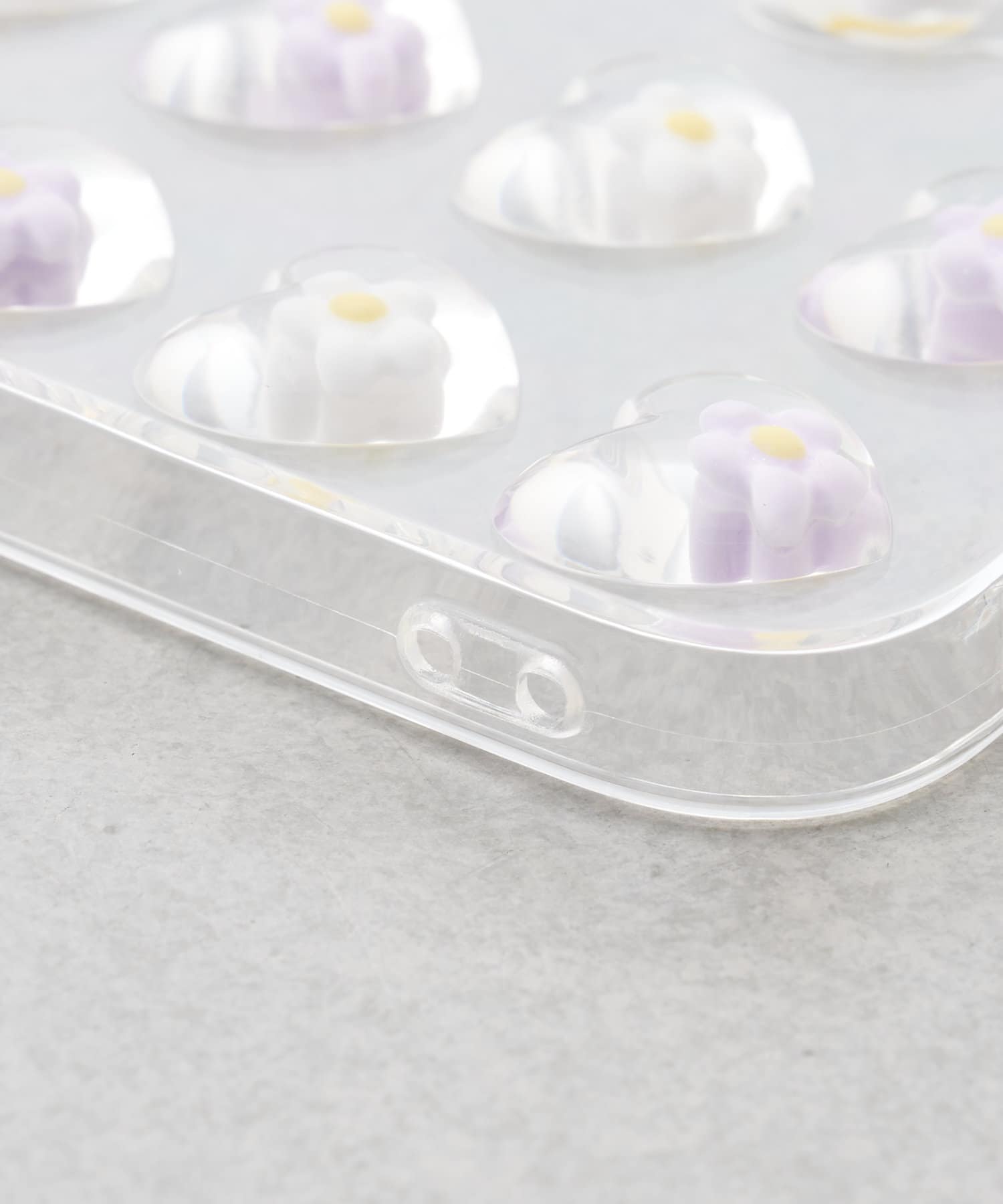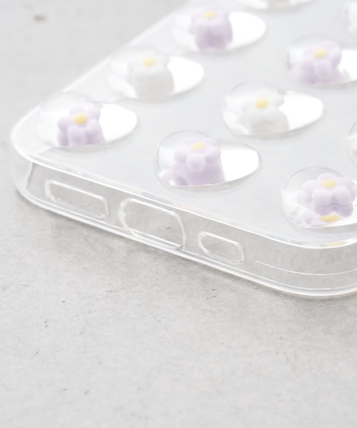 クリアケースの透け感がお花をより際立ててくれる、持っているだけで気分の上がるアイテムです