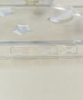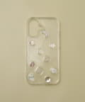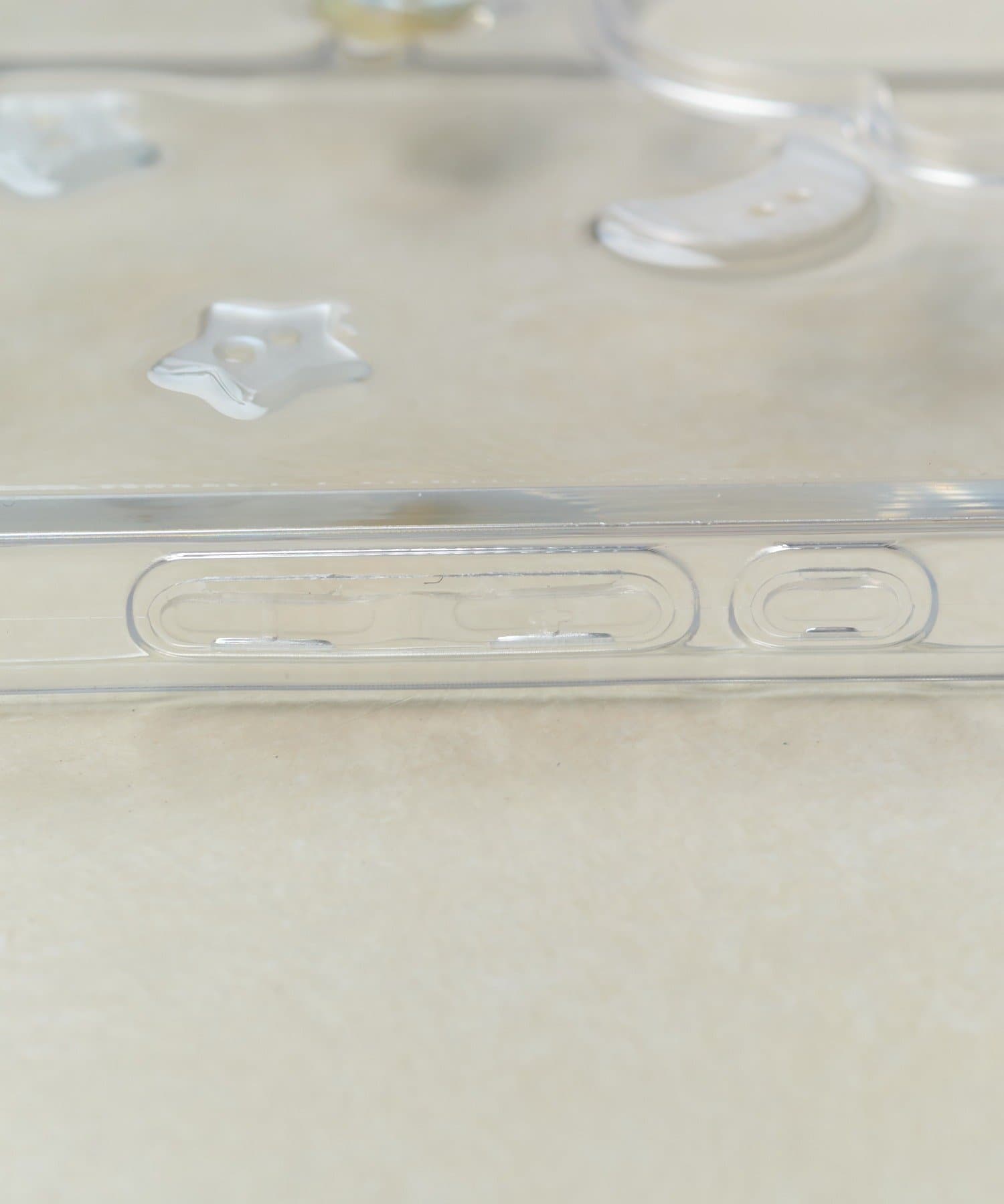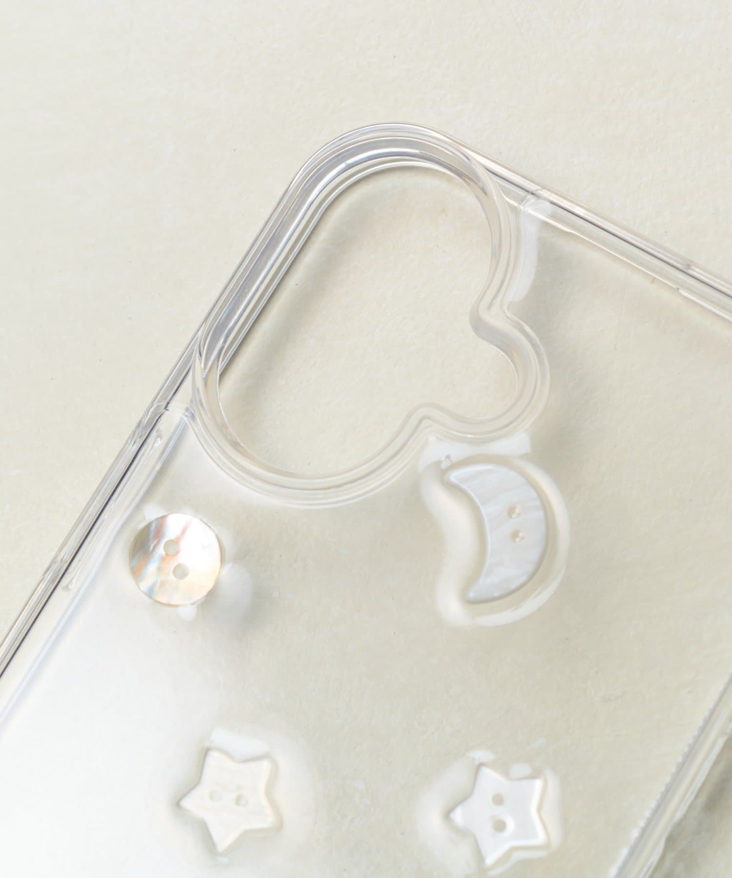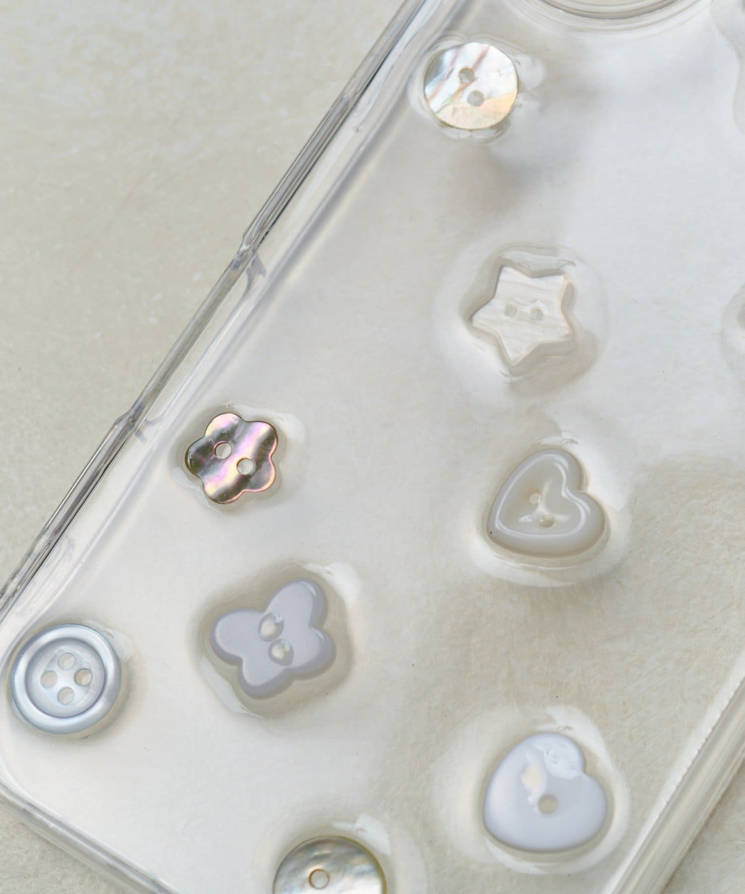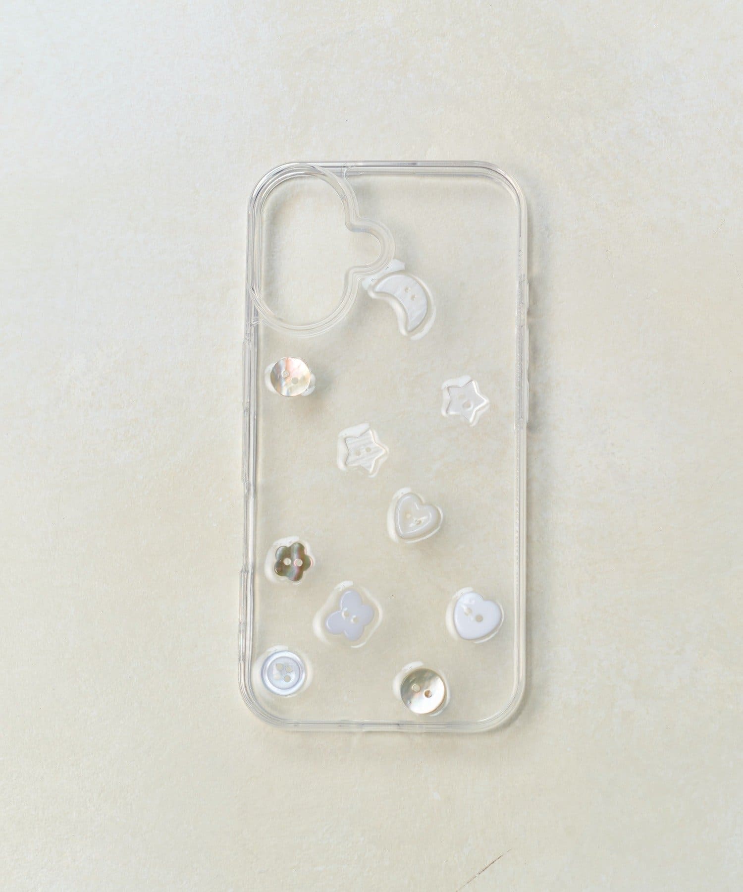 クリアケースの上に、月、星、ハート、お花といった様々な形のボタンをランダムにあしらいました。