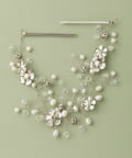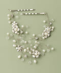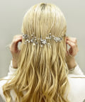 シルバーのフラワーと散りばめられたパールが顔回りと後ろ姿を華やかに彩るヘッドアクセ。