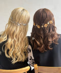 髪に沿わせて付けピンで留めるだけで簡単に華やかヘアに仕上がります。